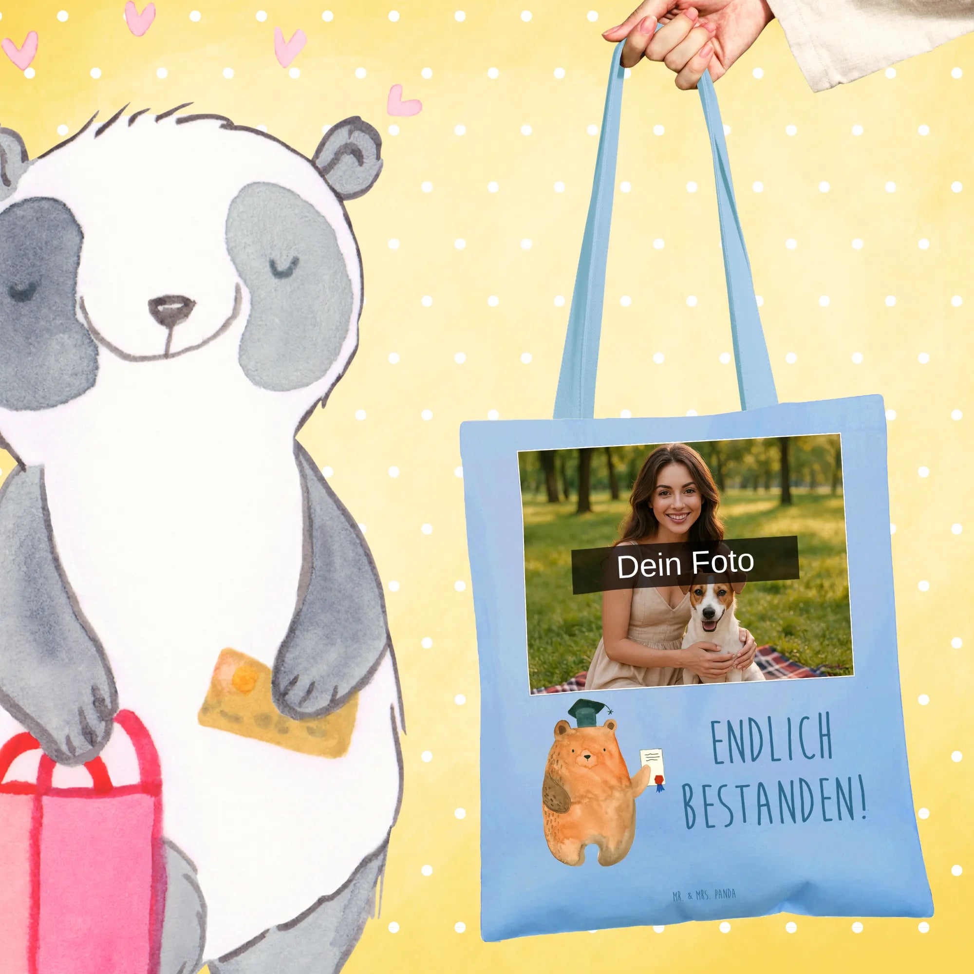 🐼 Gestalte deine Tragetasche mit deinen Fotos für ein einzigartiges Geschenk.