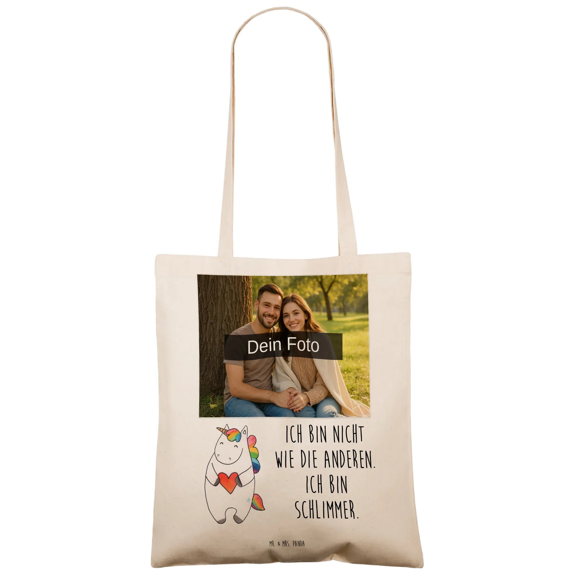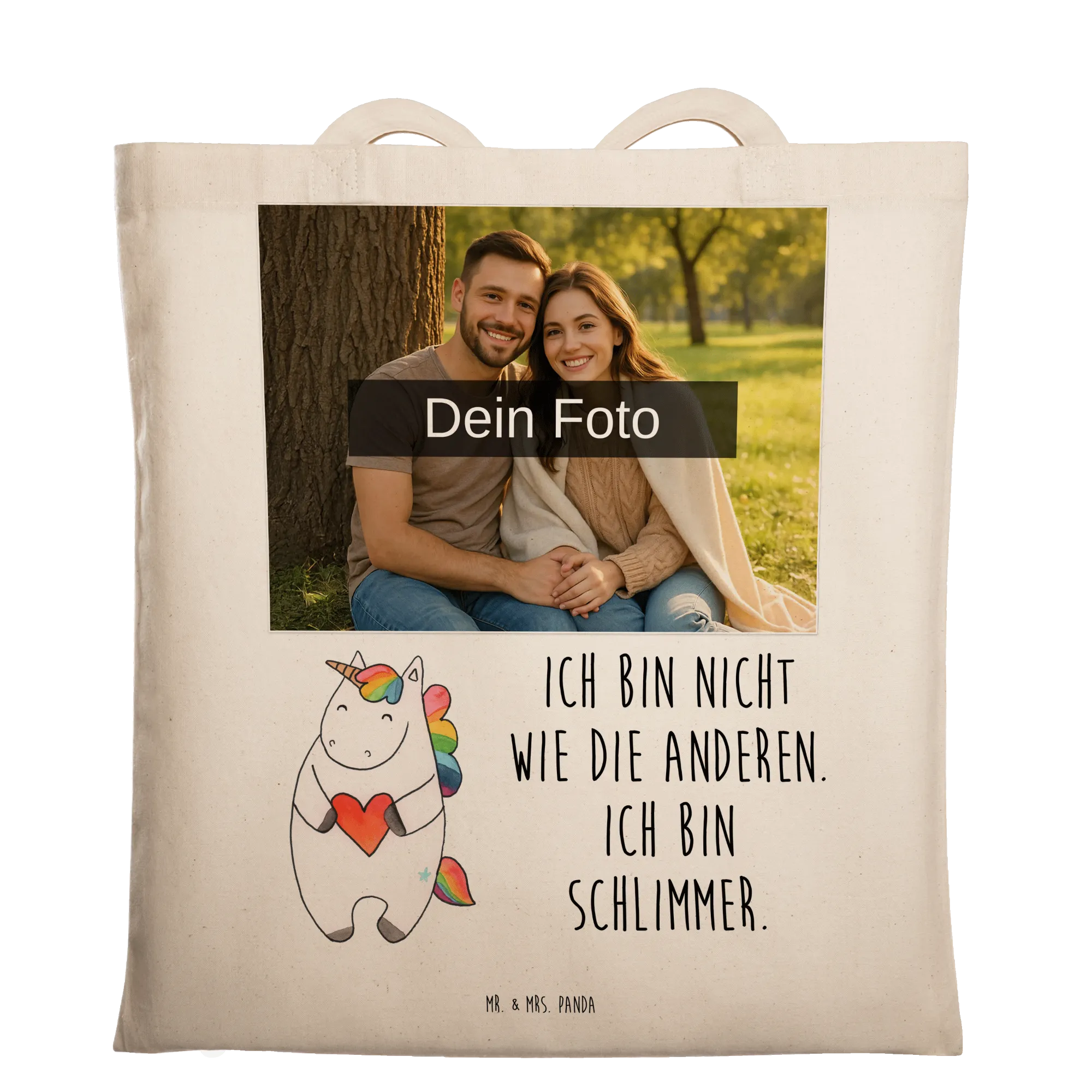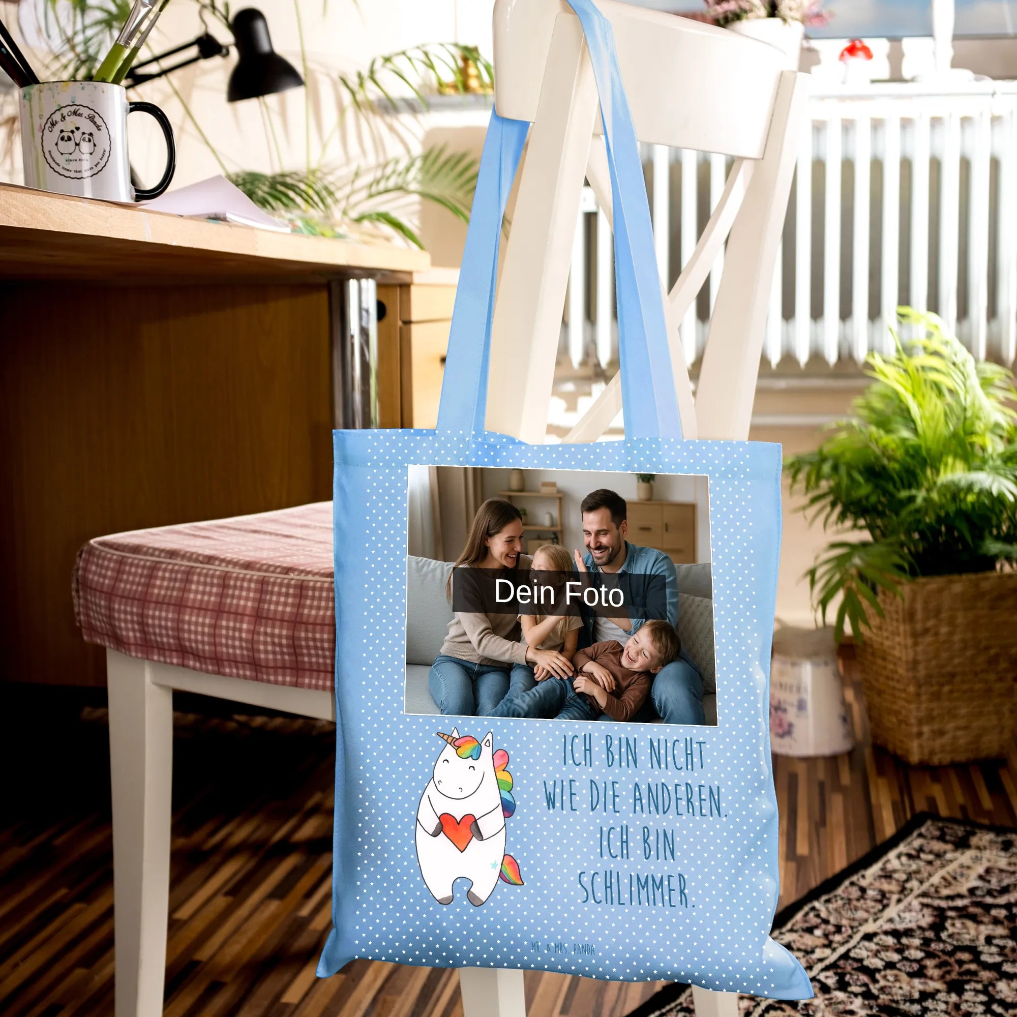 Personalisierte Foto Tragetasche Einhorn Herz - Sky Blue