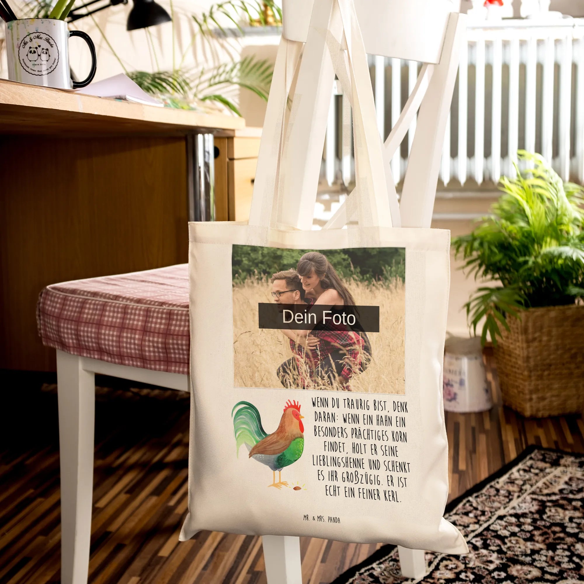 🐼 Kreiere unvergessliche Geschenke mit deinen schönsten Fotos auf der Tragetasche.