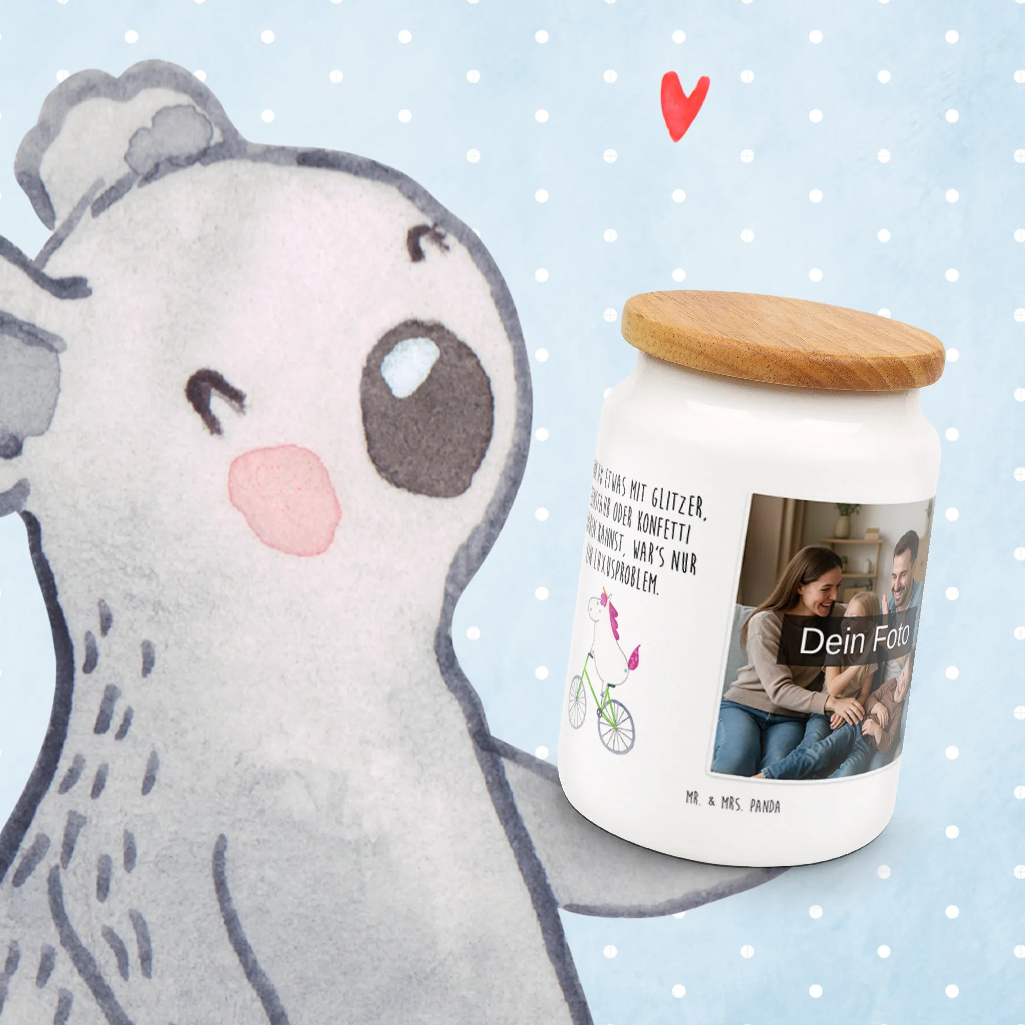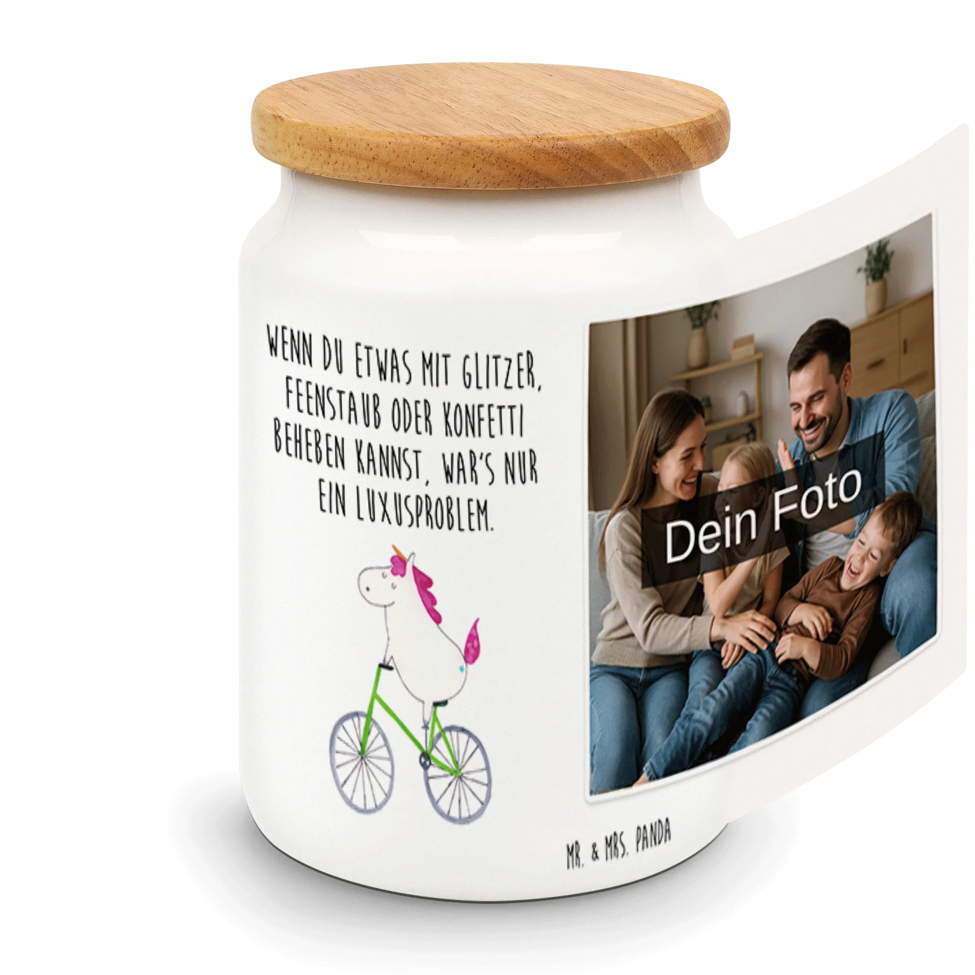 Personalisierte Foto Vorratsdose Einhorn Radfahrer – Mr. & Mrs. Panda