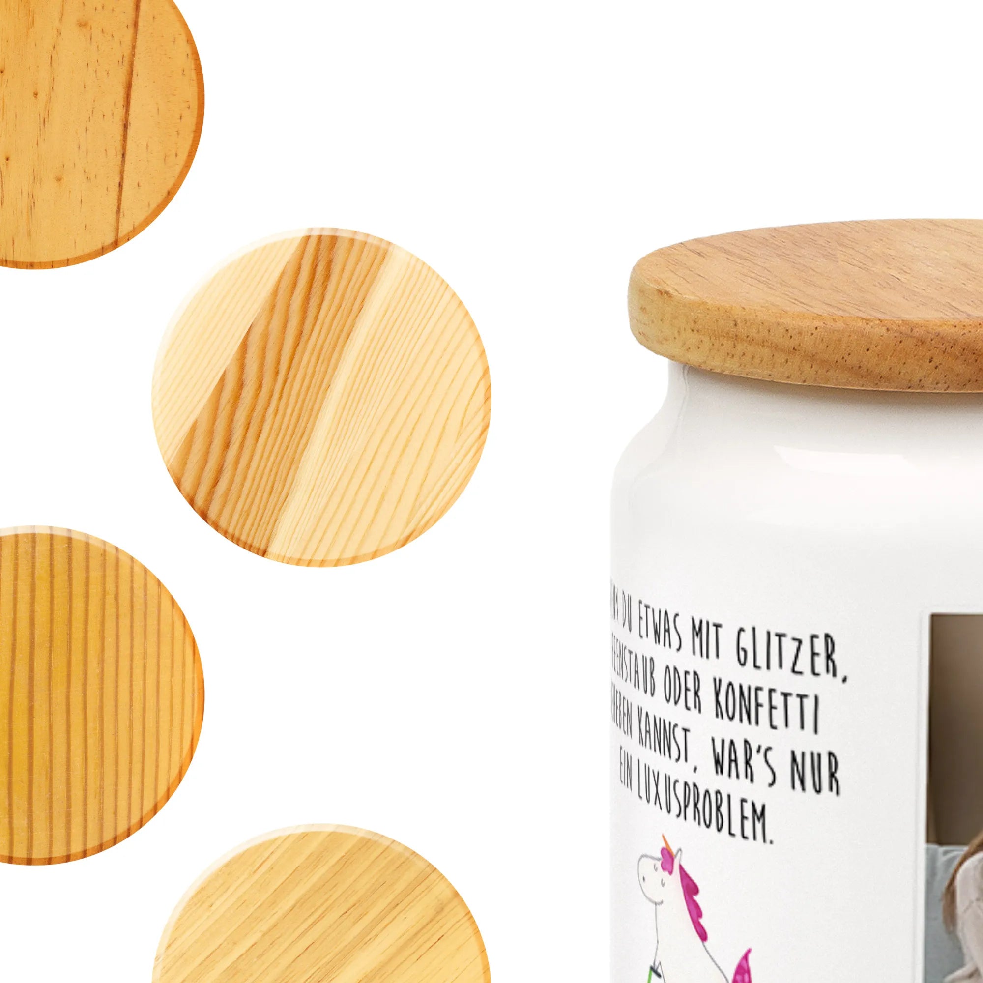 Tauche in die Welt der individuellen Gestaltung mit unserer personalisierten Foto Vorratsdose von Mr. & Mrs. Panda ein. Diese personalisierte Vorratsdose begeistert durch ihre wunderschön bedruckten Motive und inspirierenden Sprüche, die jedem Tag ein Lächeln verleihen. Fertige deine eigene einzigartige Keramikdose an, indem du sie mit einem Foto deiner Wahl personalisierst und sicher stellst, dass dein Bild in bester Auflösung hochgeladen wird, um ein gestochen scharfes Ergebnis zu erzielen. Perfekt als personalisierte Keksdose, als stilvolle Aufbewahrungsmöglichkeit für Leckerlis oder als praktischer Vorratsbehälter mit einem massiven Holzdeckel und sicherer Kunststoffdichtung. In der Spülmaschine unkompliziert zu reinigen, ist diese personalisierte Dose ein langlebiger Begleiter in deiner Küche.