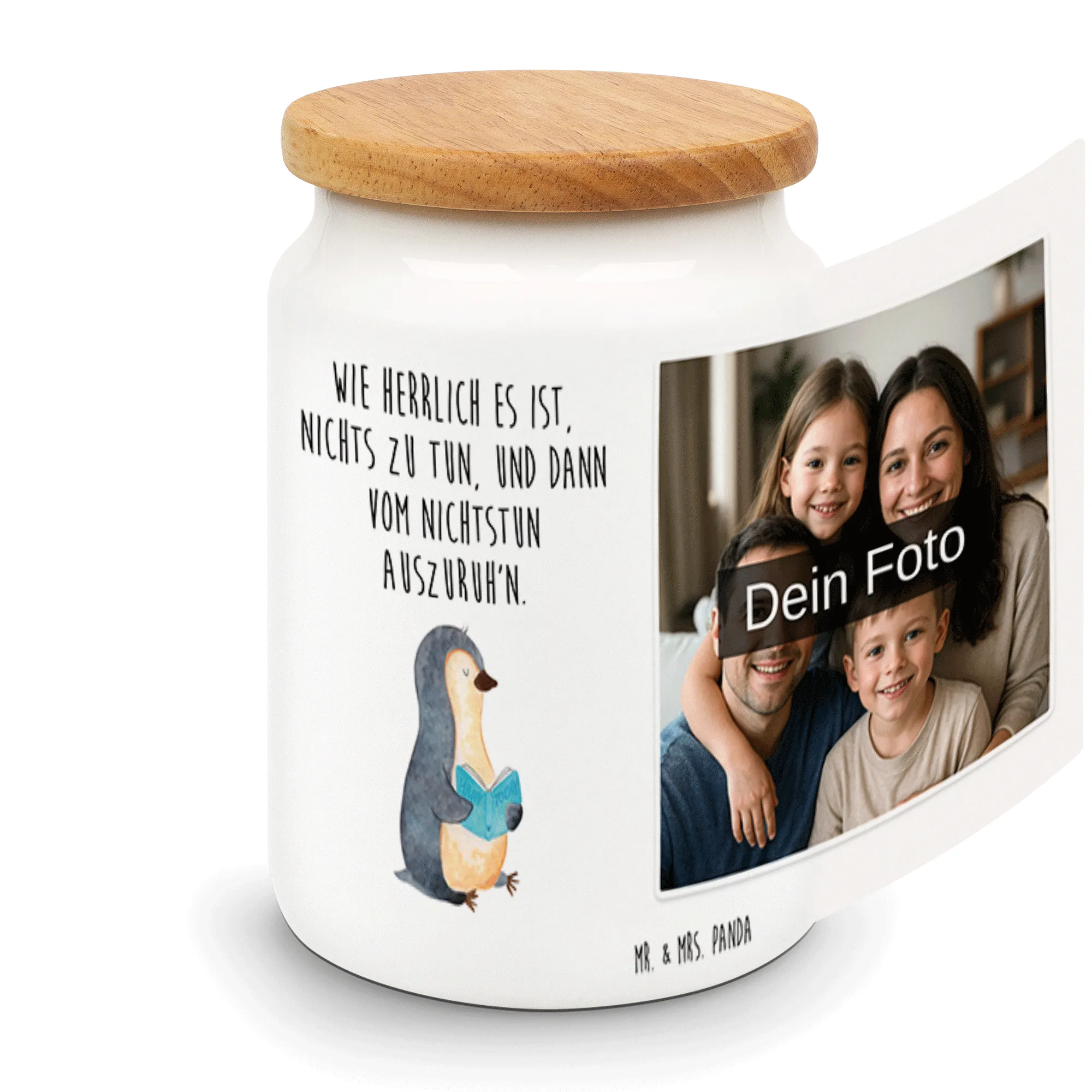 Personalisierte Foto Vorratsdose Pinguin Buch