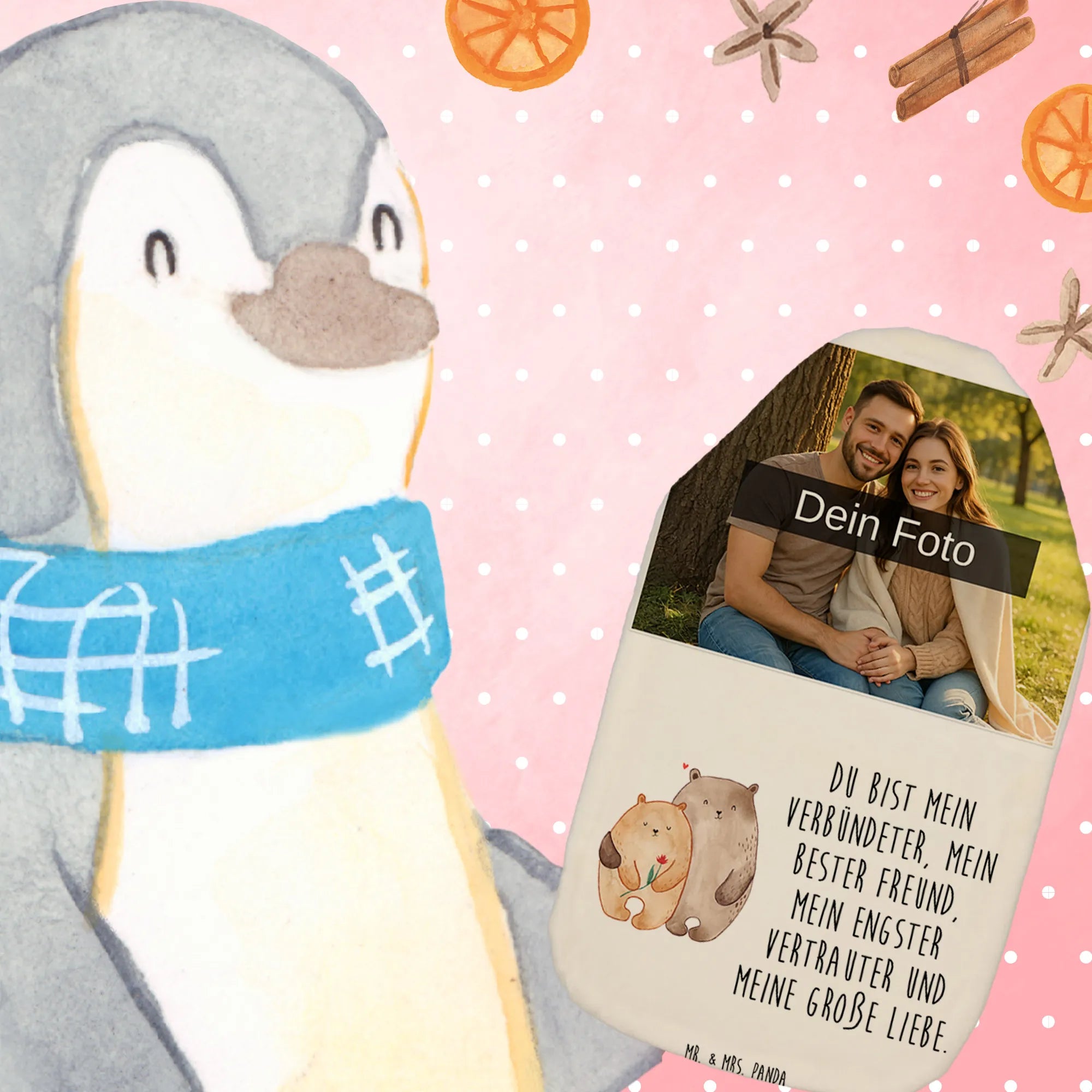 Die personalisierte Foto Wärmflasche Bären Liebe von Mr. & Mrs. Panda ist das perfekte Geschenk für all jene, die ihre Liebe auf ganz besondere Weise zeigen möchten. Mit sanften Brauntönen und dem süßen Bild von zwei ineinander verliebten Bären, die ein Herz bilden, strahlt sie Wärme und Zuneigung aus – genau das, was wir für unseren Partner, unsere Freundin oder unseren Freund brauchen. Wenn du auf der Suche nach einem einzigartigen Liebesgeschenk bist, sei es für den Jahrestag, den Hochzeitstag oder zur Verlobung, dann ist diese Wärmflasche die richtige Wahl! Sie lässt Herzen höher schlagen und erinnert an die schönen Momente zu zweit.