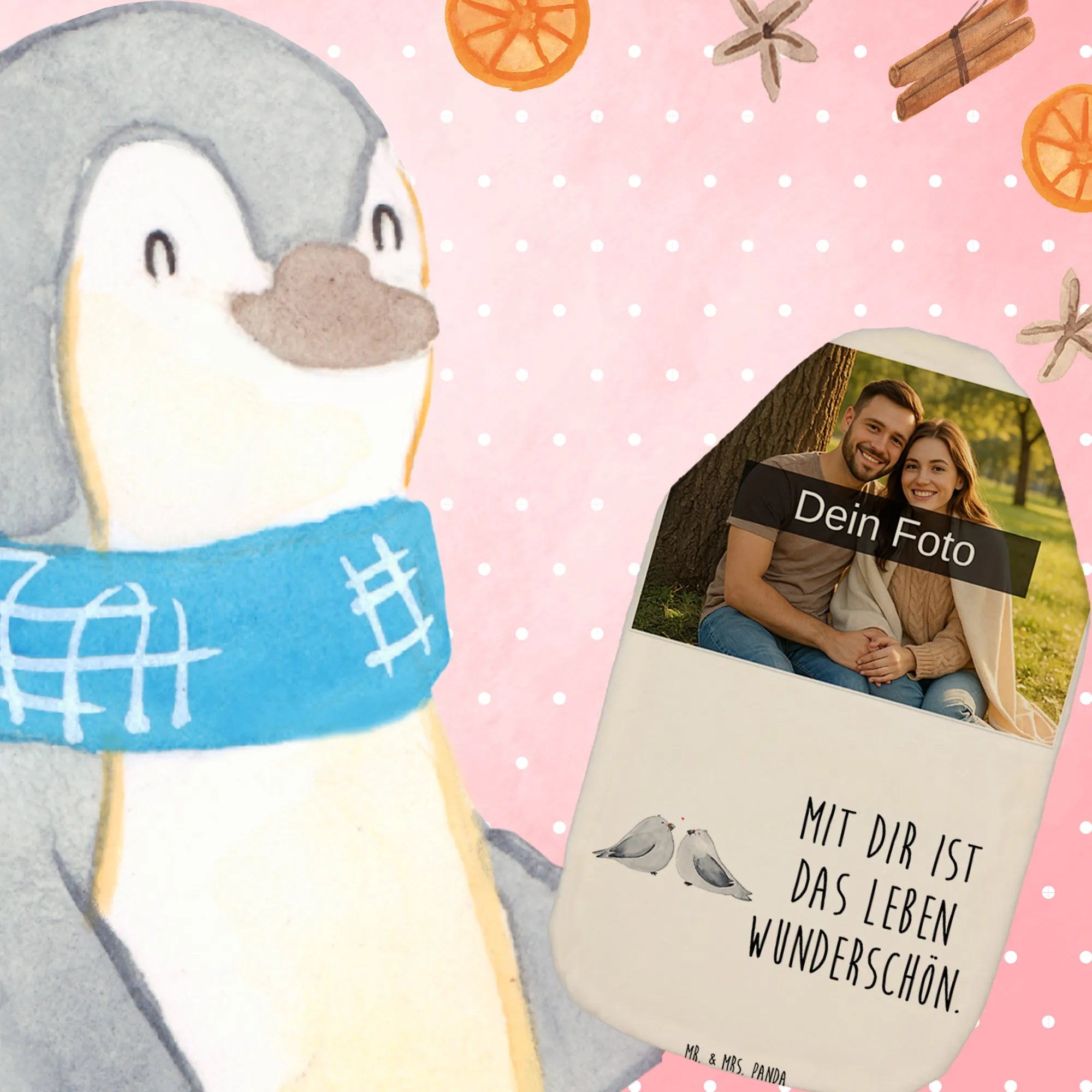 Die personalisierte Foto Wärmflasche von Mr. & Mrs. Panda ist das ideale Geschenk für alle Verliebten! Mit unserem einzigartigen Motiv der Turteltauben symbolisierst du nicht nur die Liebe, sondern schaffst auch eine wunderbare, kuschelige Umarmung für kalte Tage.