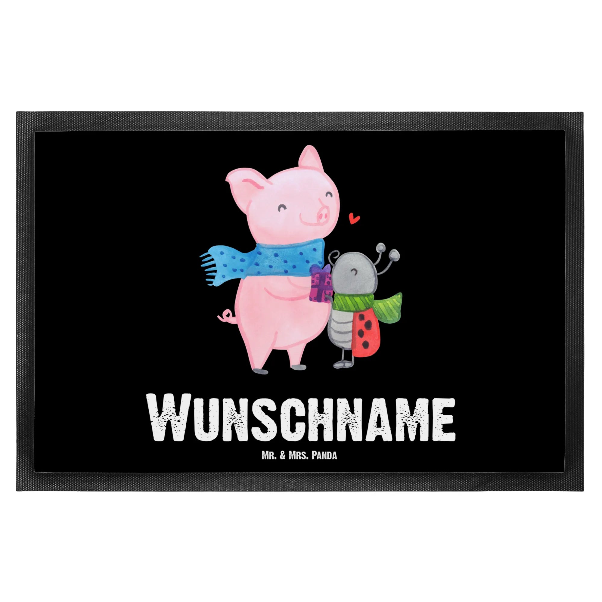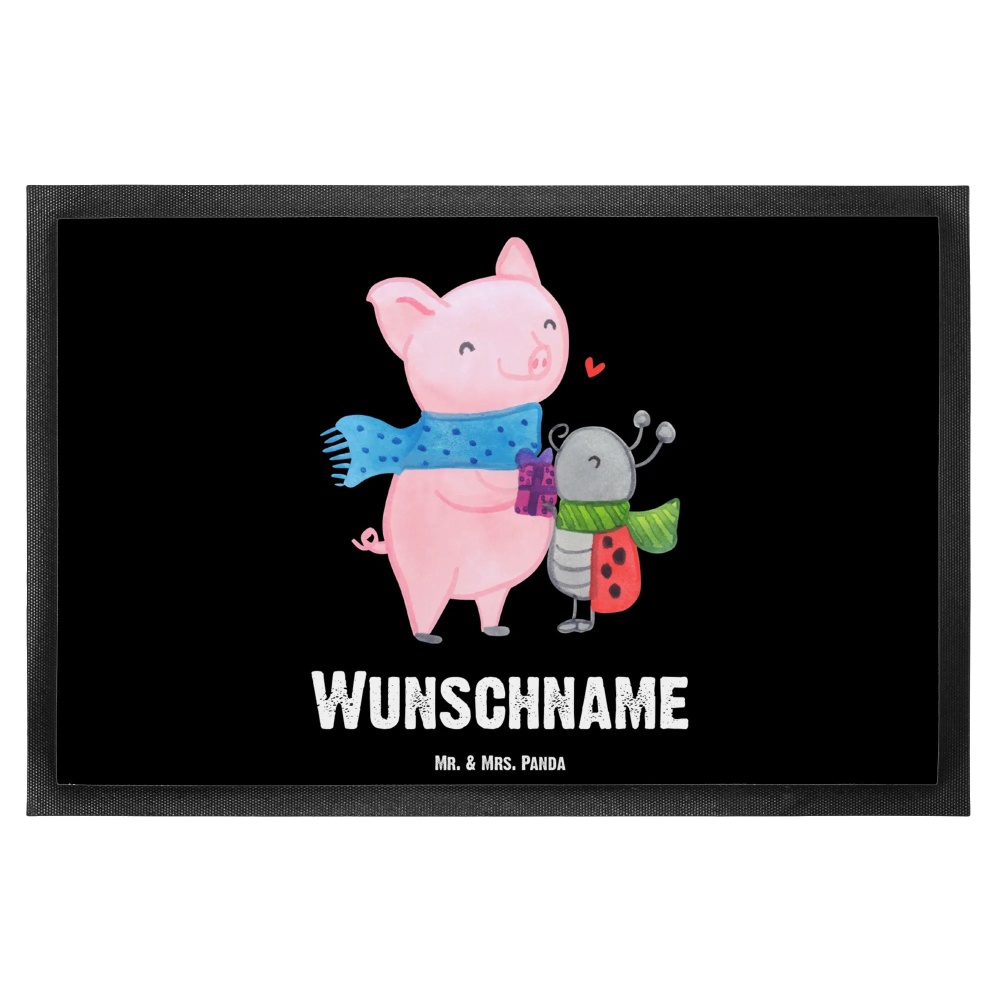 Entdecke die wundervolle, personalisierte Fußmatte mit dem fröhlichen Glühschwein Smörle aus unserer Winter Kollektion! Diese einzigartige Fußmatte ist nicht nur funktional, sondern auch ein echter Hingucker an deiner Haustür. Das handgezeichnete Design mit dem süßen rosa Glühschwein und dem putzigen Marienkäfer bringt Freude und Gemütlichkeit in dein Zuhause.