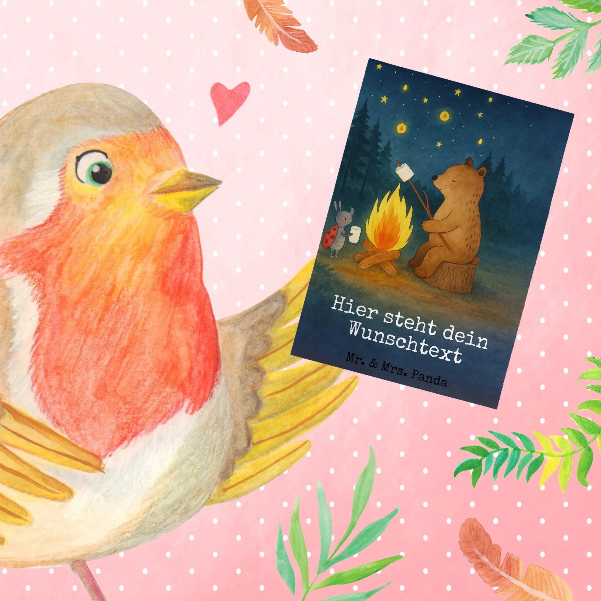 Personalisierte Grußkarte Bär & Marienkäfer Lagerfeuer Design