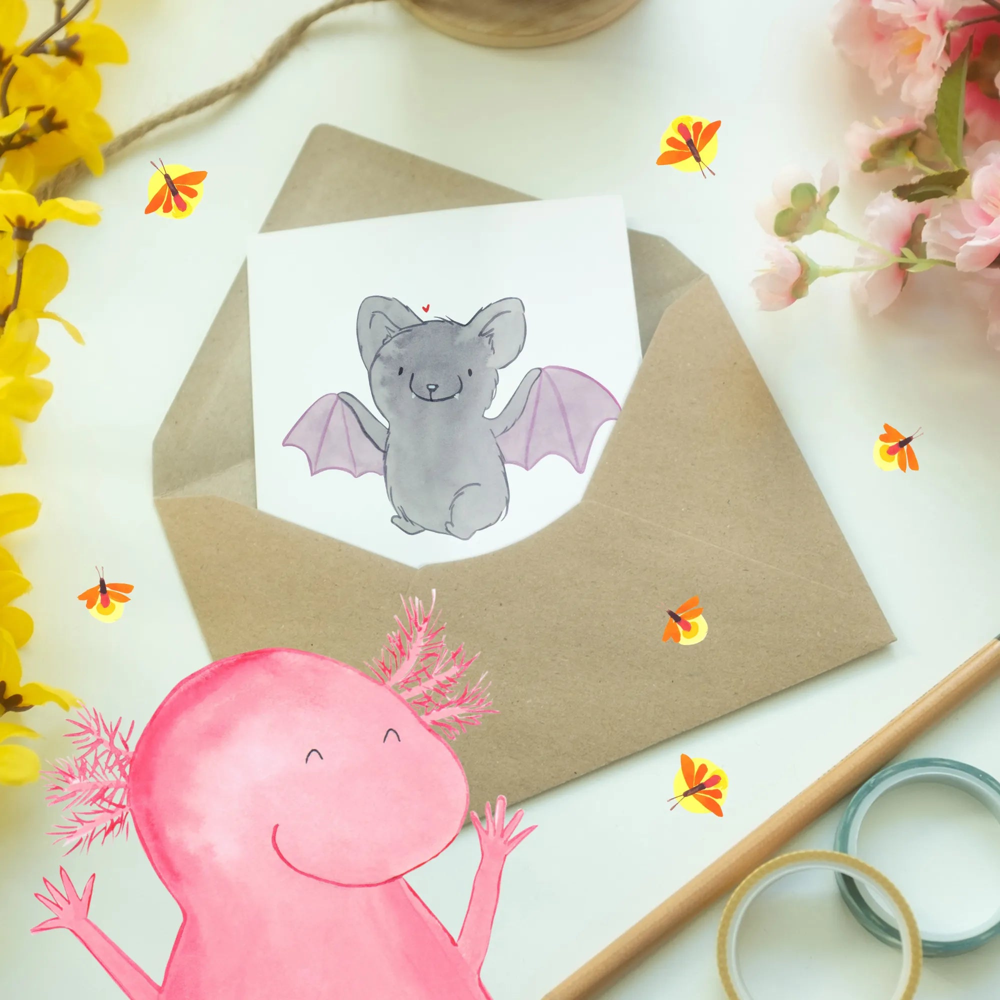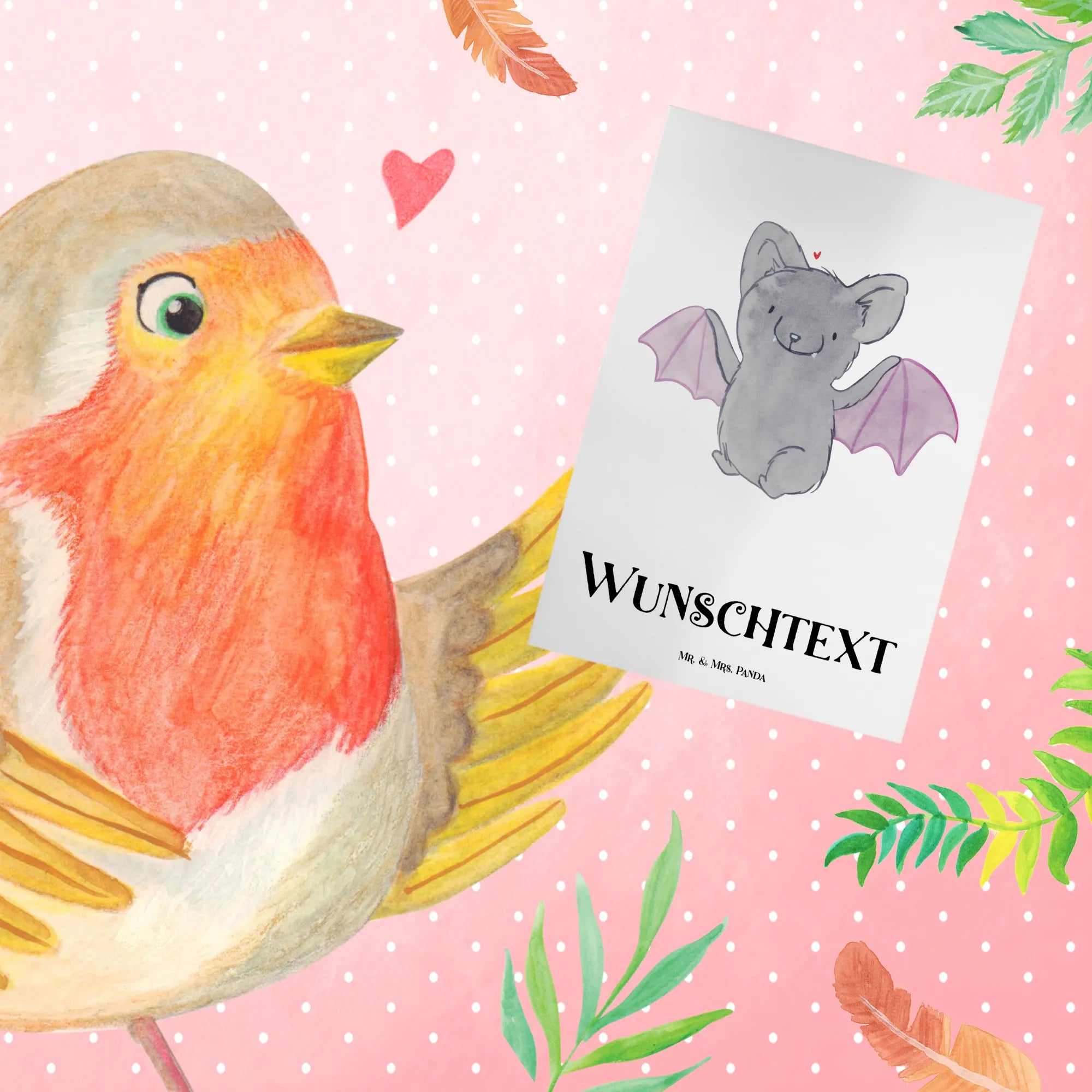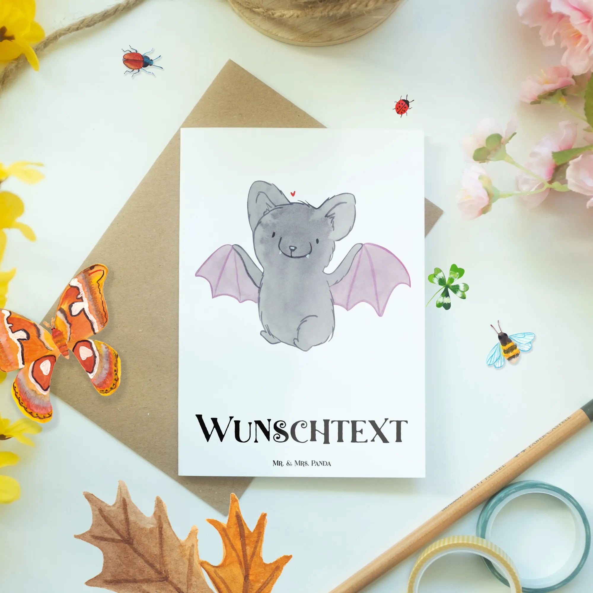 Diese Karte ist mehr als nur ein Stück Papier; sie ist eine liebevolle Botschaft, die du mit einem persönlichen Touch versehen kannst. Mit einem bezaubernden Motiv einer niedlichen Fledermaus, die in anmutigem Grau und zartem Rosa gestaltet ist, wird jede Botschaft zu etwas ganz Besonderem.