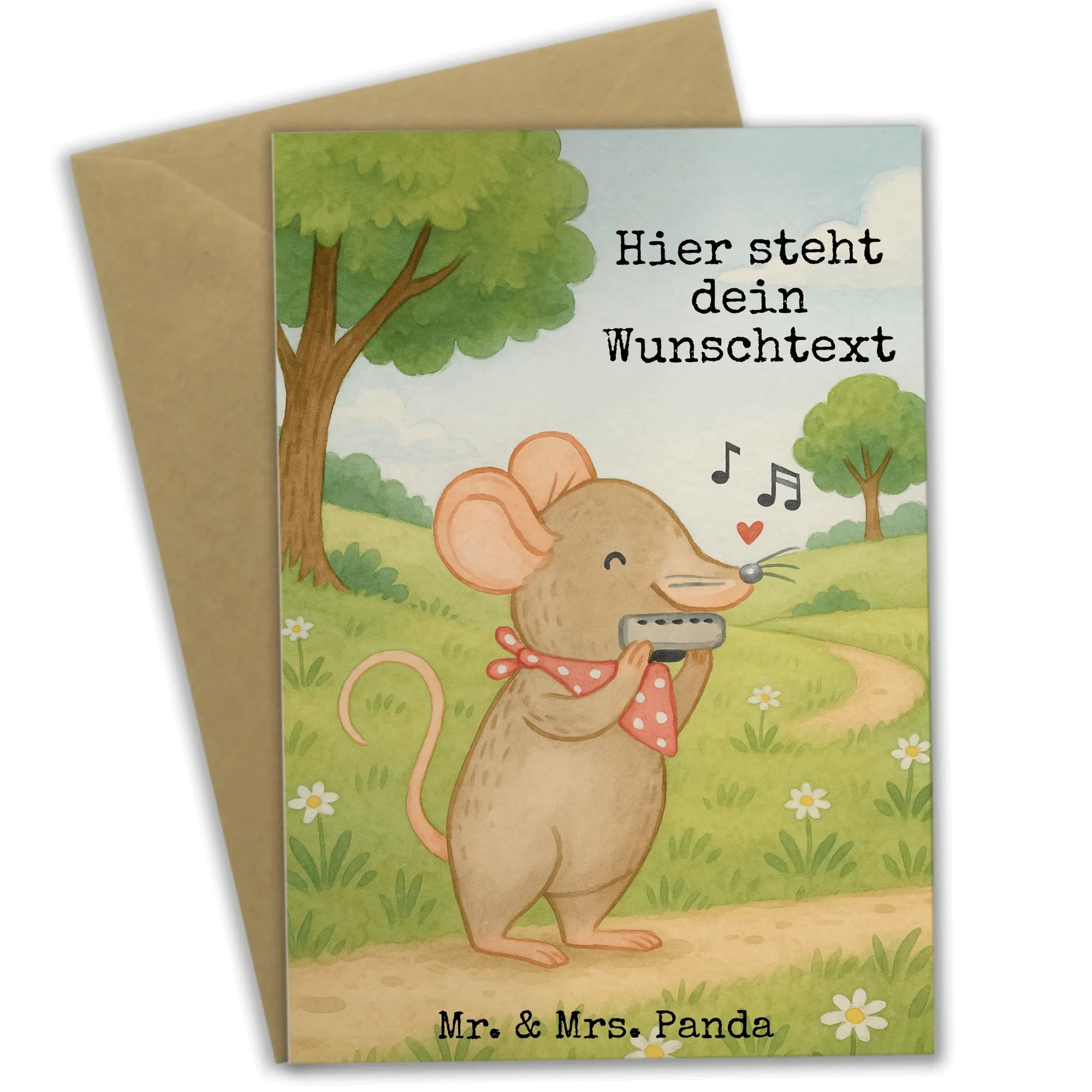 Personalisierte Grußkarte Maus Mundharmonika Design – Mr. & Mrs. Panda