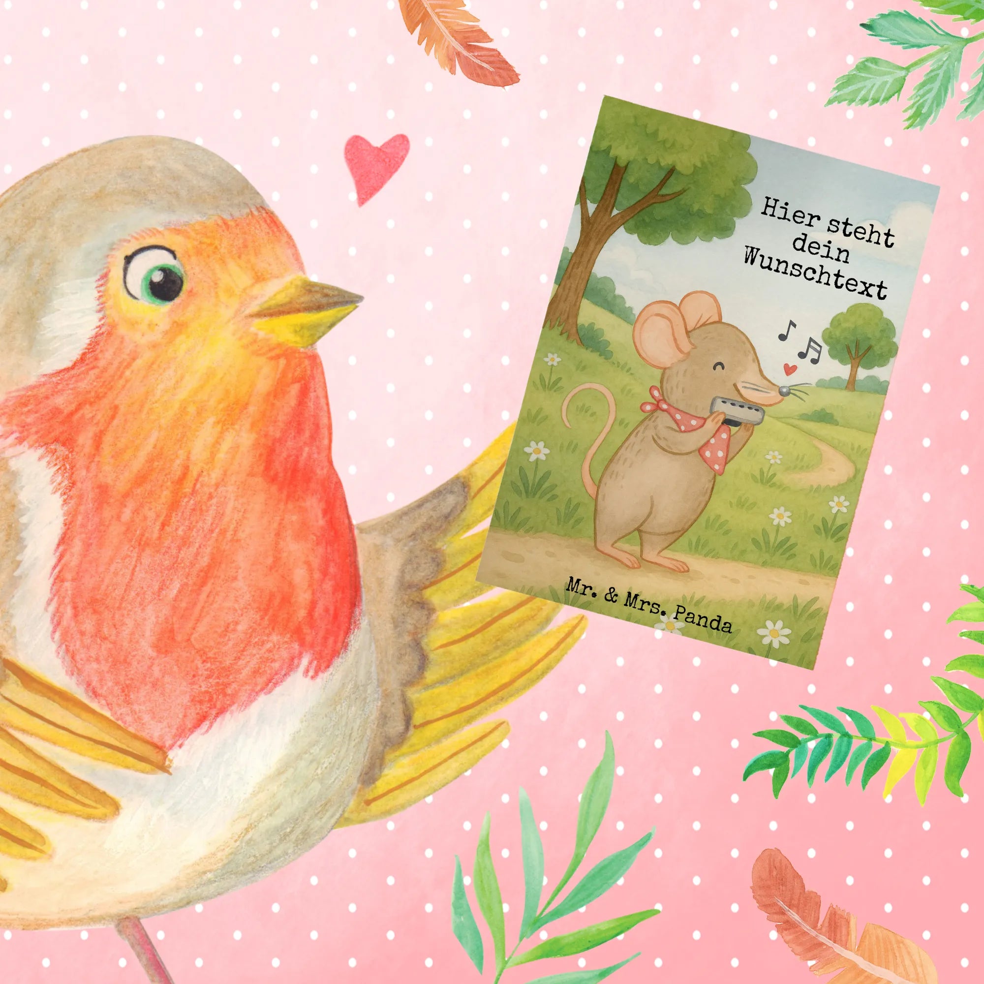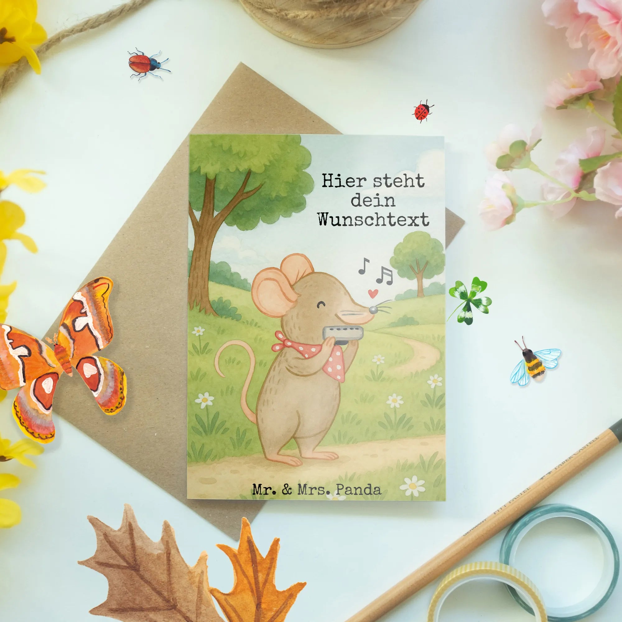 Personalisierte Grußkarte Maus Mundharmonika Design