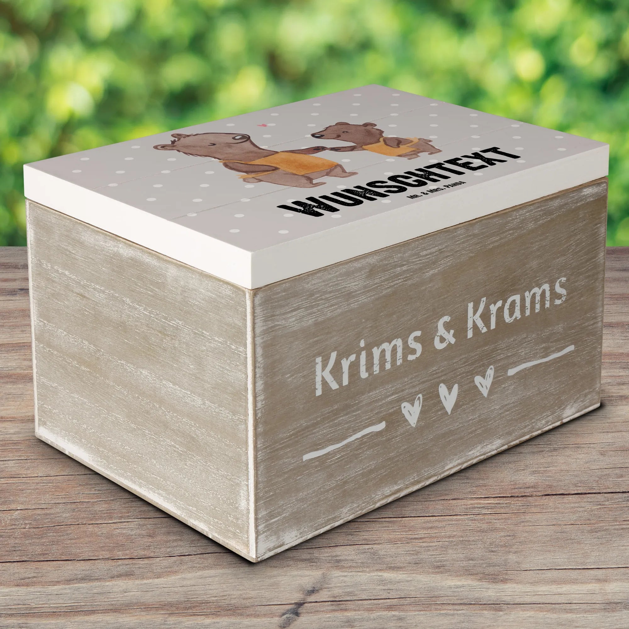 Die personalisierte Holzkiste 'Arbeitserzieher mit Herz' von Mr. & Mrs. Panda ist ein wunderbares Geschenk für alle, die sich in ihrem Beruf als Arbeitserzieher engagieren. Diese Kiste ist nicht nur ein Aufbewahrungsort für wertvolle Erinnerungen, sondern auch ein einzigartiges Dekorationsstück. Mit einem liebevollen Design, das einen niedlichen Bären zeigt, der einen kleineren Bären an der Hand hält, strahlt diese Kiste Wärme und Geborgenheit aus.