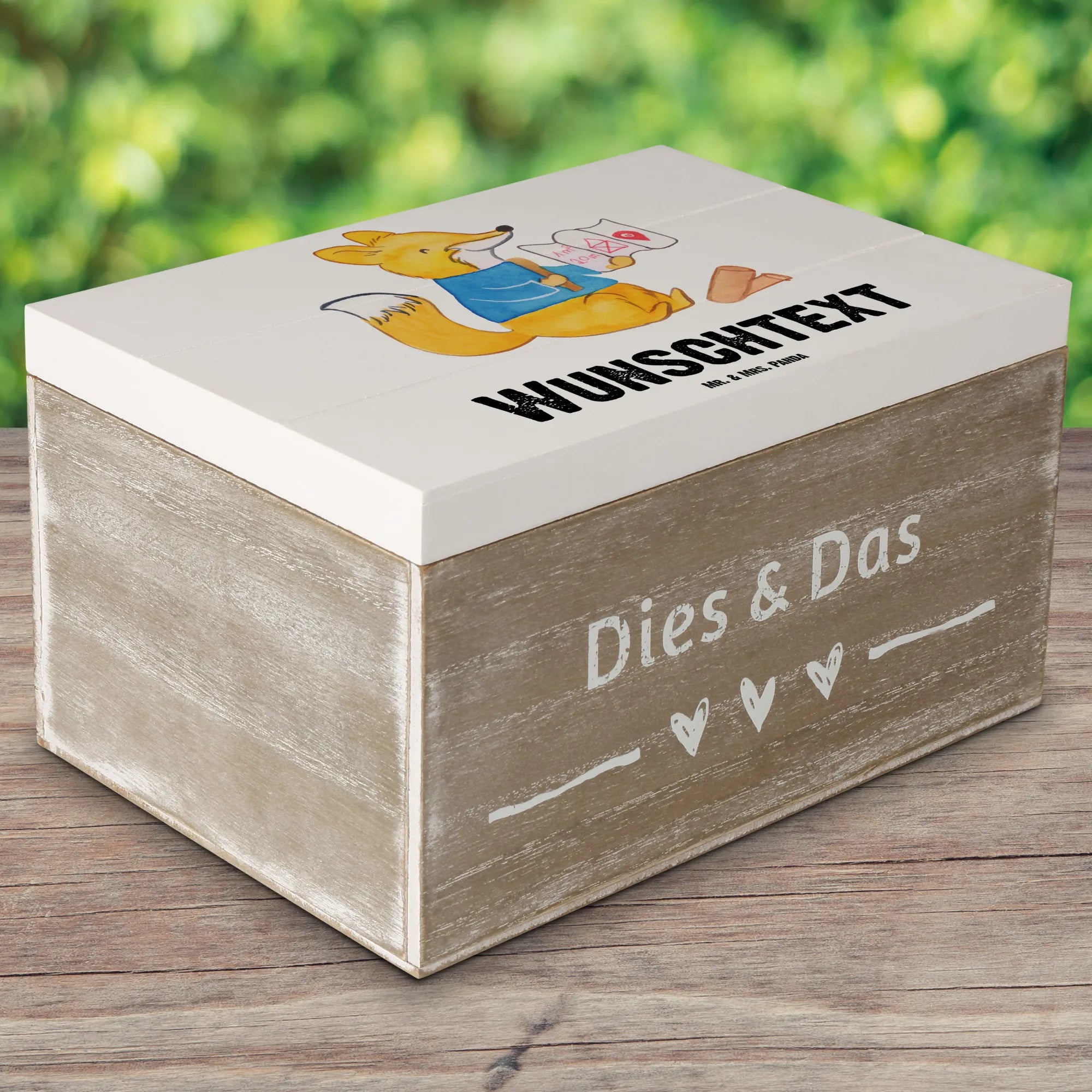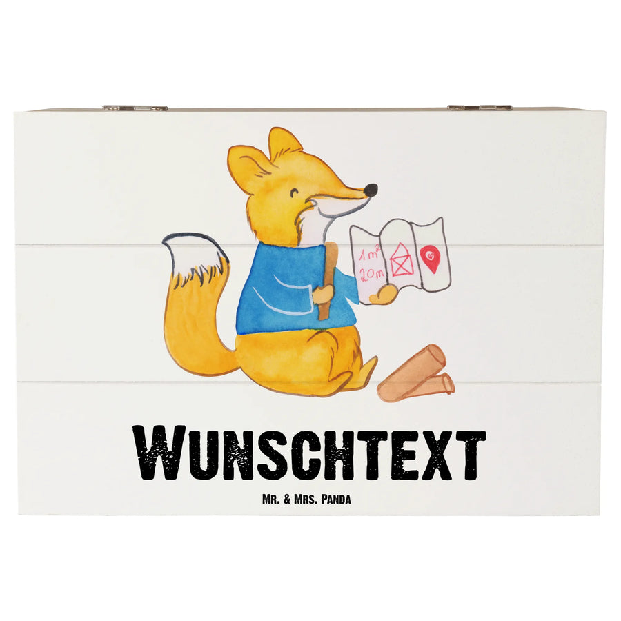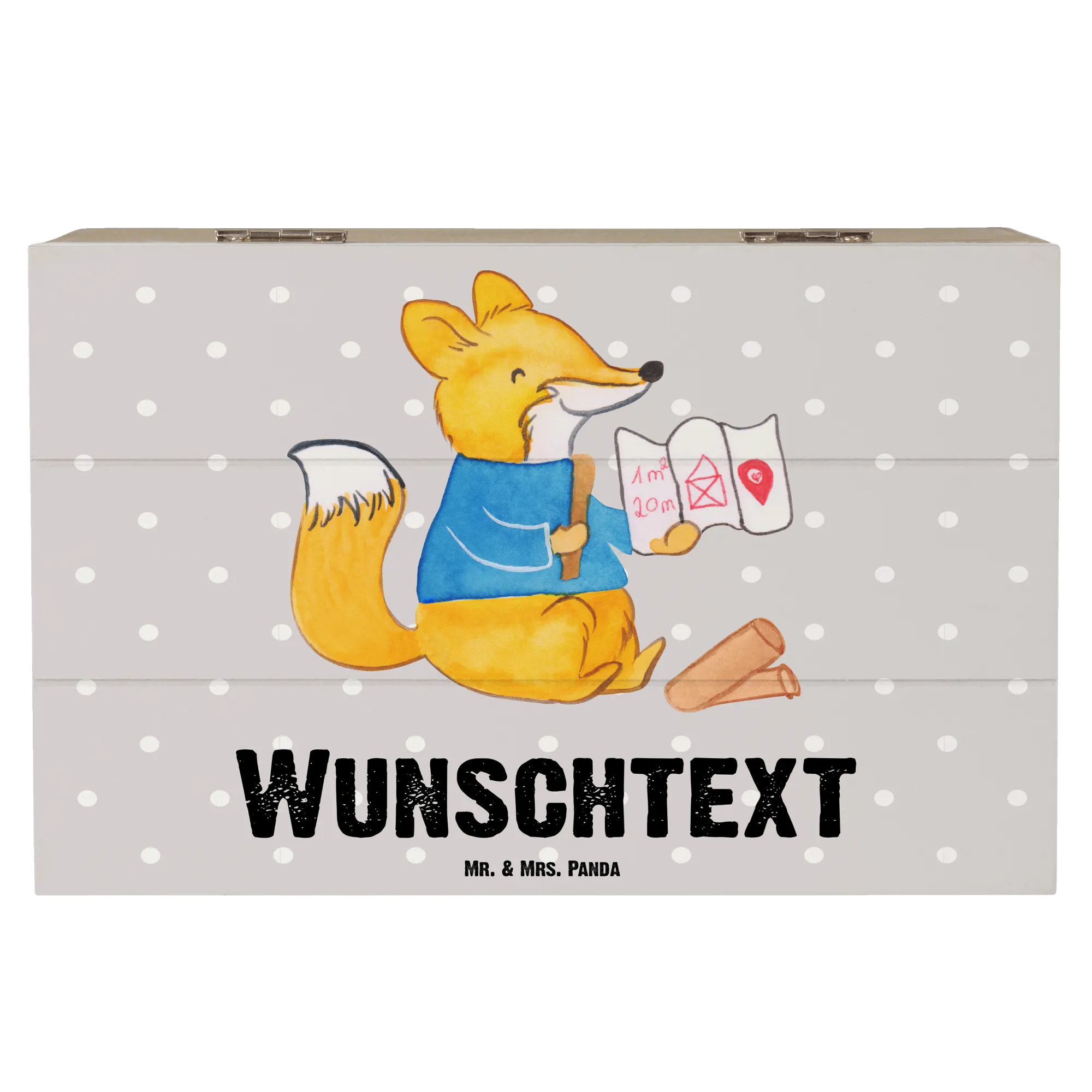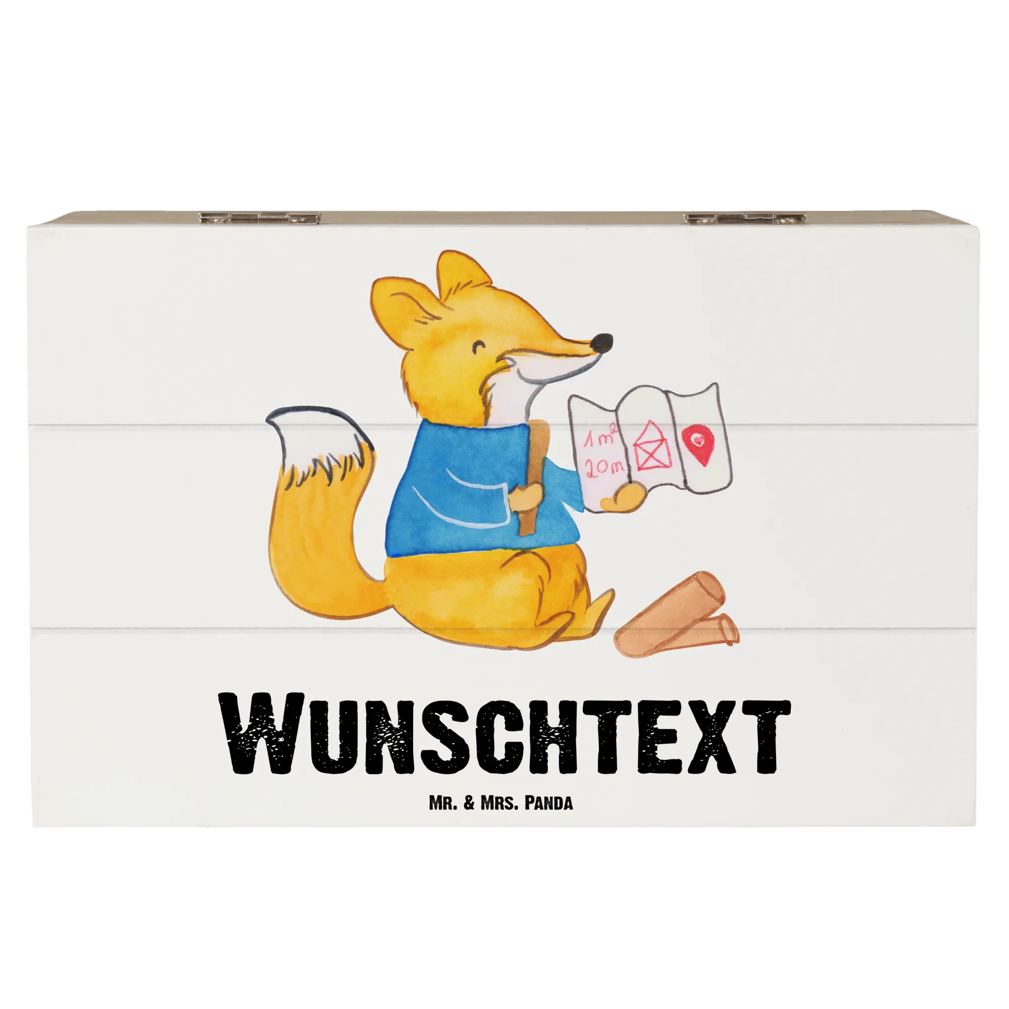 Die personalisierte Kiste mit dem Motiv "Architekt mit Herz" zeigt einen süßen Fuchs, der mitten in seinen Bauplänen steckt - ein absolutes Muss für jeden Bauprofi! Besonders schön ist der Slogan: "Du bist nur ein halber Mensch, wenn du kein Architekt bist." Dies macht die Kiste zu einem idealen Geschenk für Architekten, Innenarchitekten oder auch Bauarbeiter.