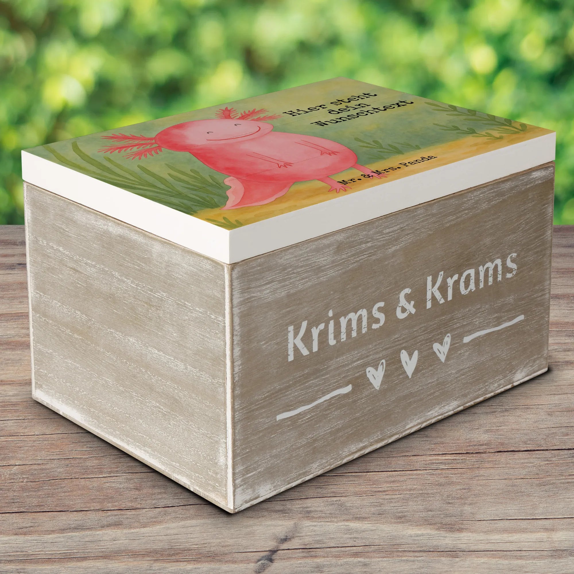 Personalisierte Holzkiste Axolotl Glücklich Design - 22 x 15 cm