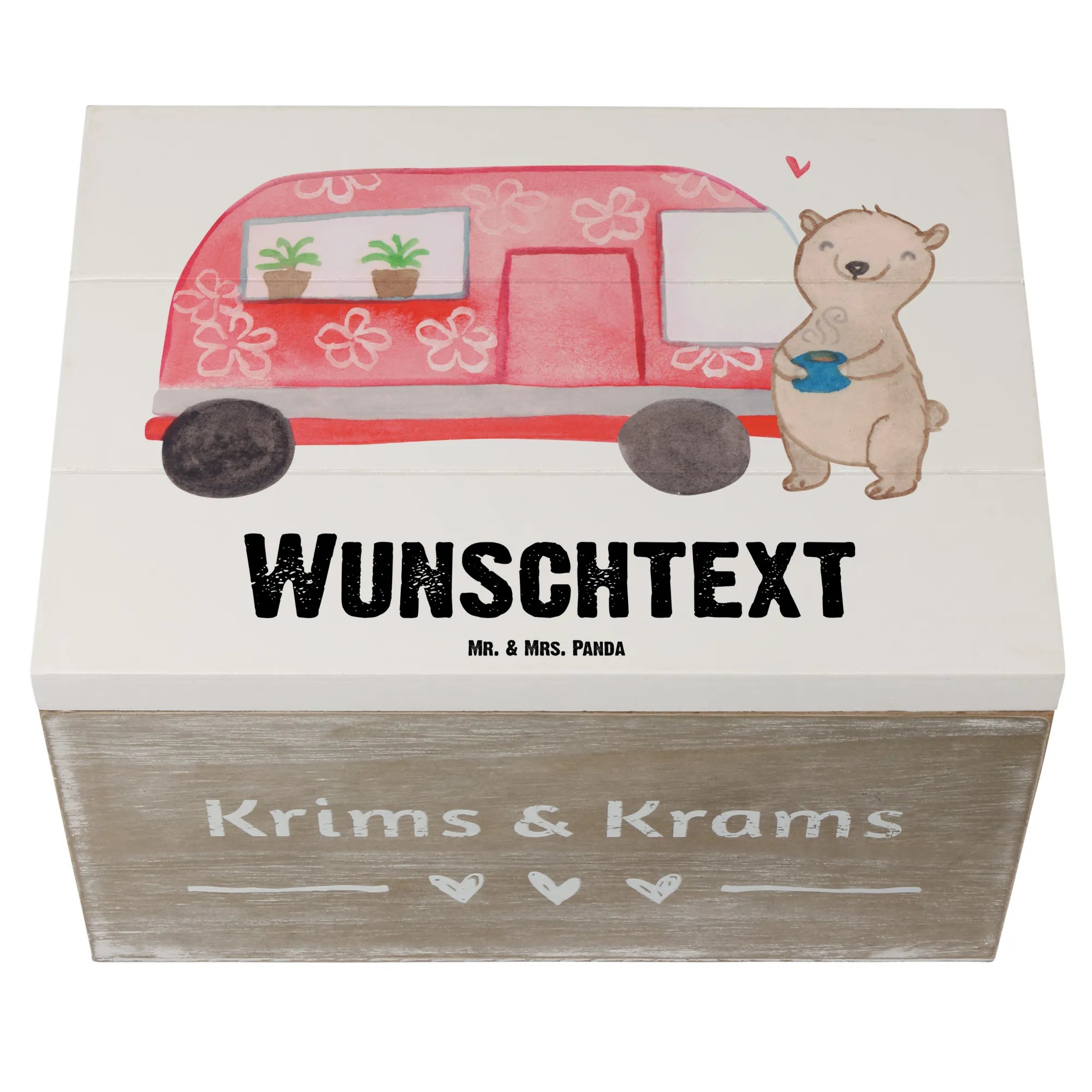Der liebevoll gestaltete Bär mit seiner Kaffeetasse vor dem Camper zaubert jedem ein Lächeln ins Gesicht. Die Kiste ist personalisierbar mit Deinem Wunschnamen, was sie zu einem ganz persönlichen Geschenk macht. Egal, ob für den Partner, Freunde oder Familie, zu besonderen Anlässen wie Geburtstagen, Jubiläen oder einfach nur als kleine Aufmerksamkeit – diese Kiste ist ein wahrhaft unvergessliches Präsent.