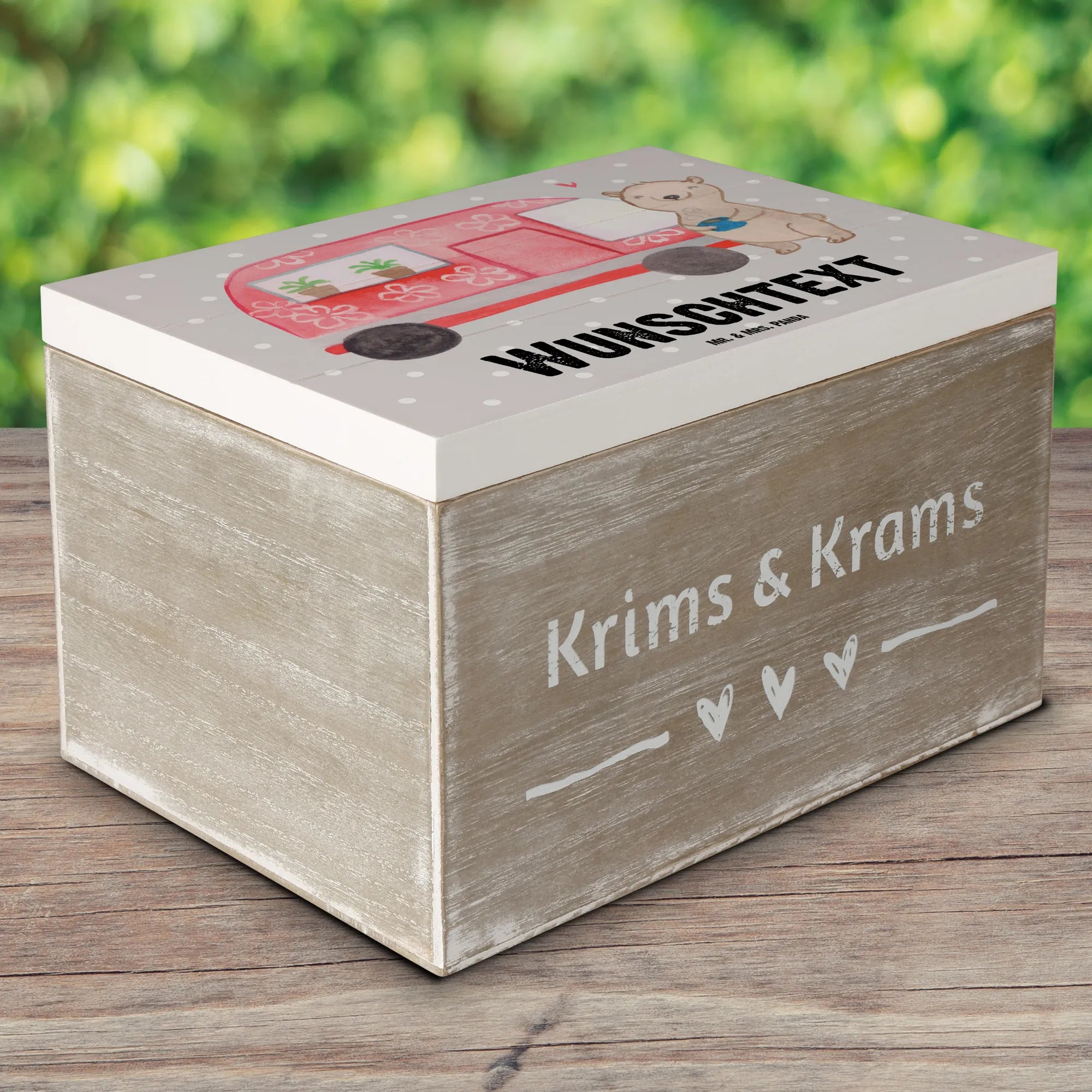 Die personalisierte Holzkiste "Bär Camper Tage" von Mr. & Mrs. Panda ist das perfekte Geschenk für alle Camper und Outdoor-Liebhaber!