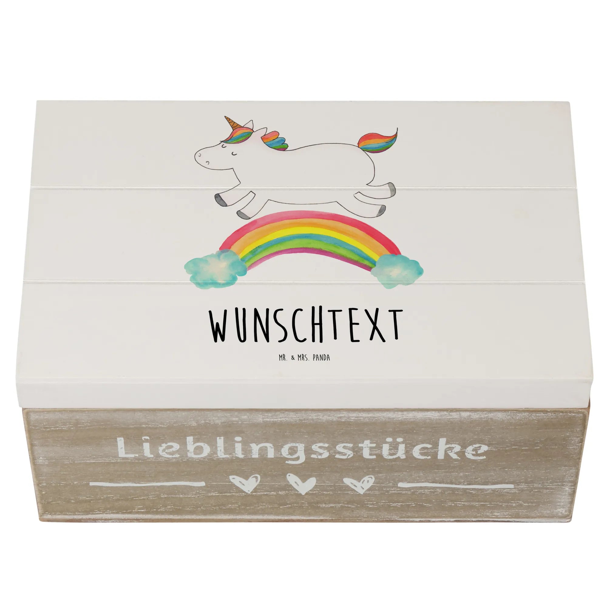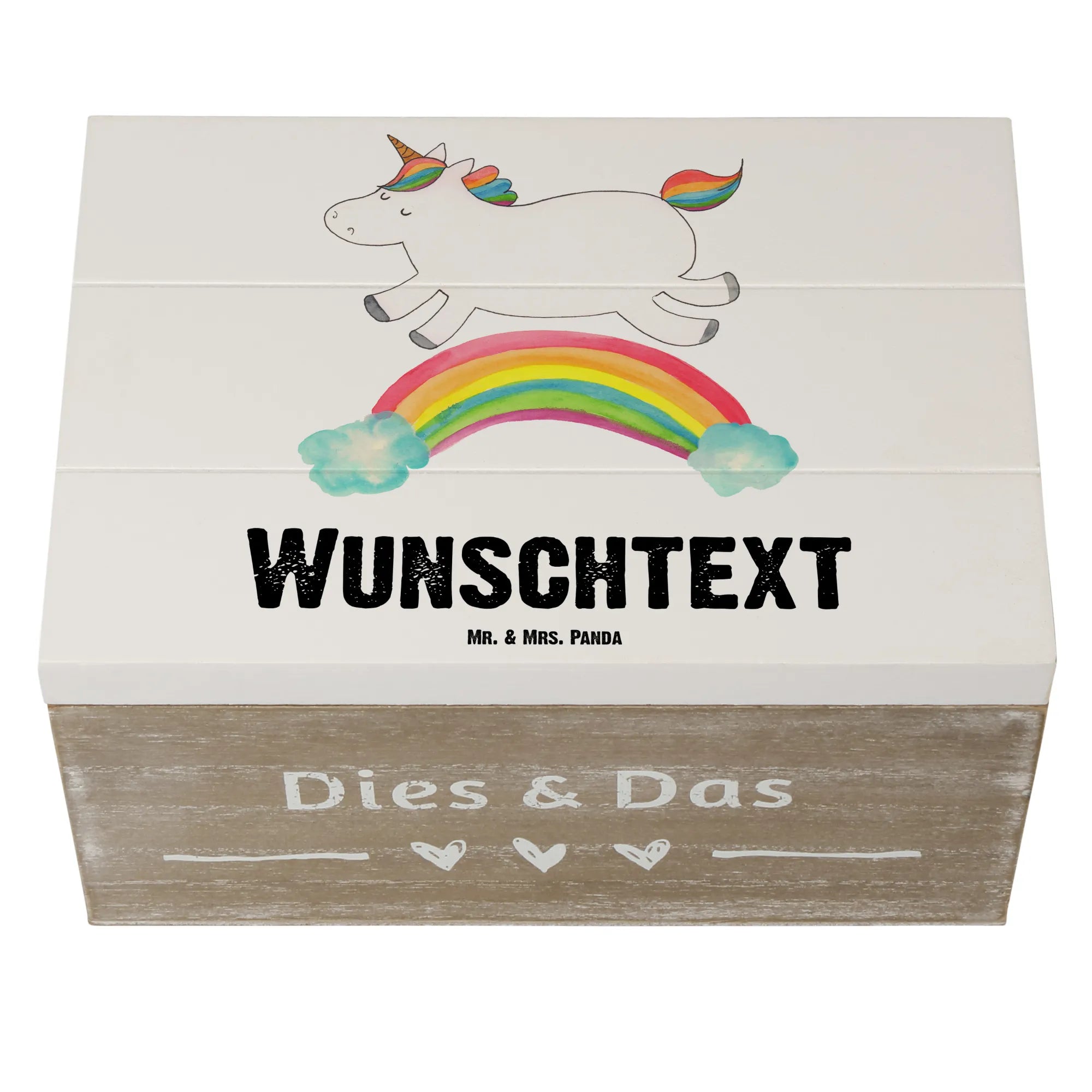 Hole dir jetzt deine personalisierte Holzkiste von Mr. & Mrs. Panda! Und bedenke, einen Regenbogen nennt man in Einhornkreisen auch Einhornautobahn!