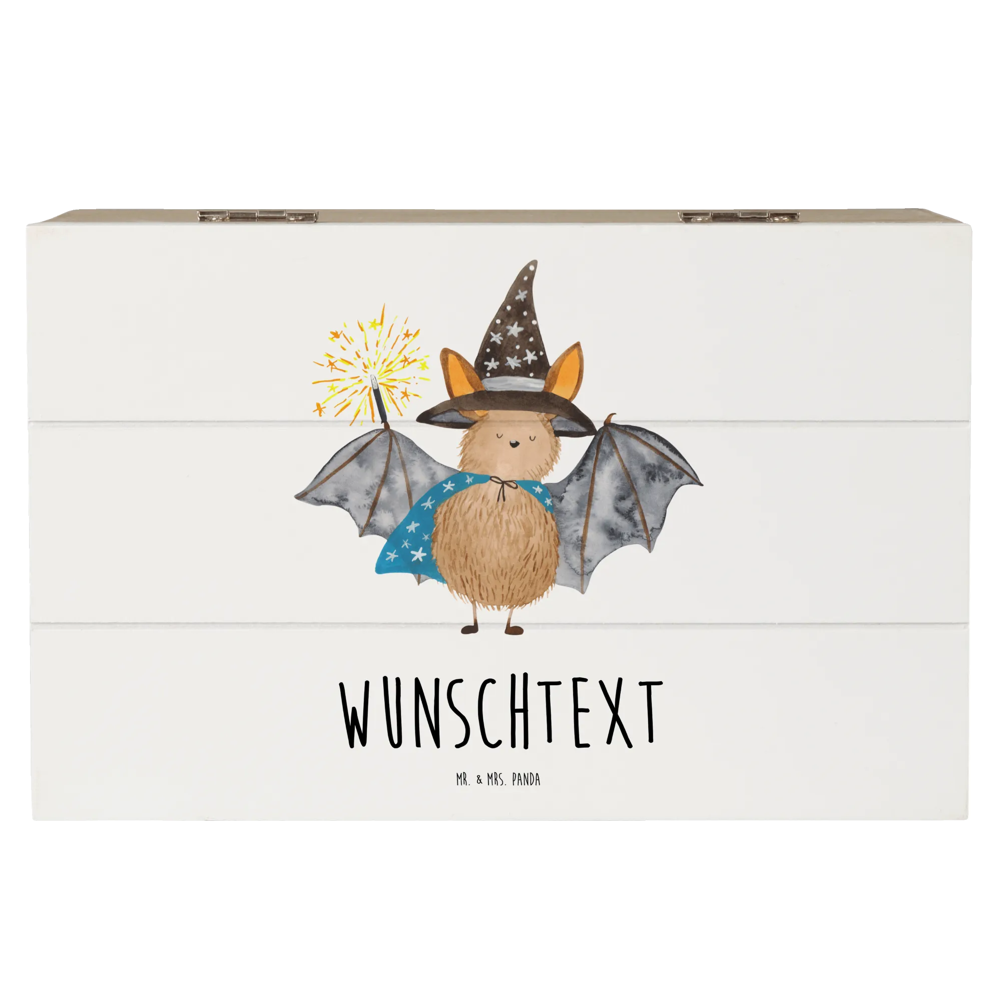 Personalisierte Holzkiste Fledermaus Zauberer - 22 x 15 cm - Weiß