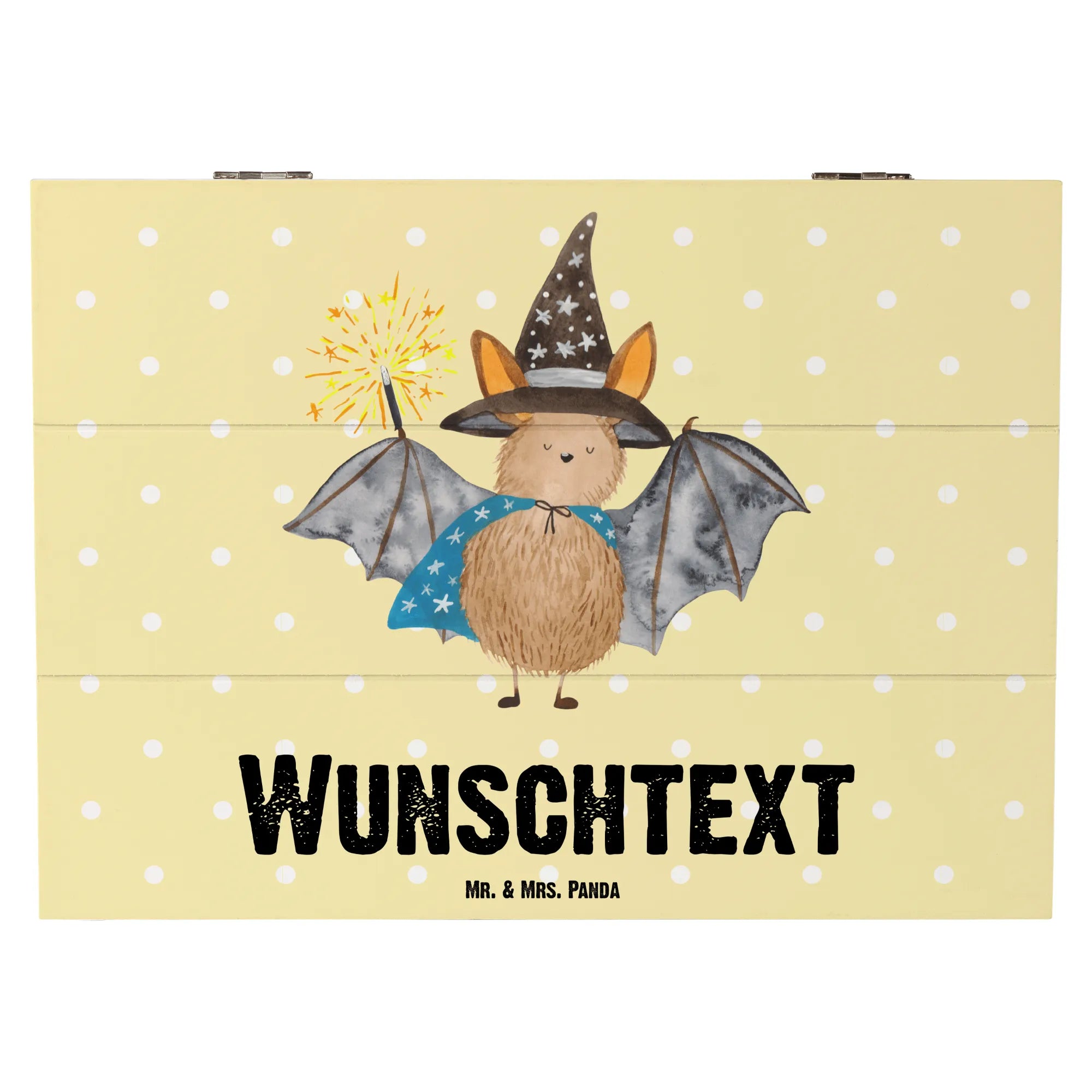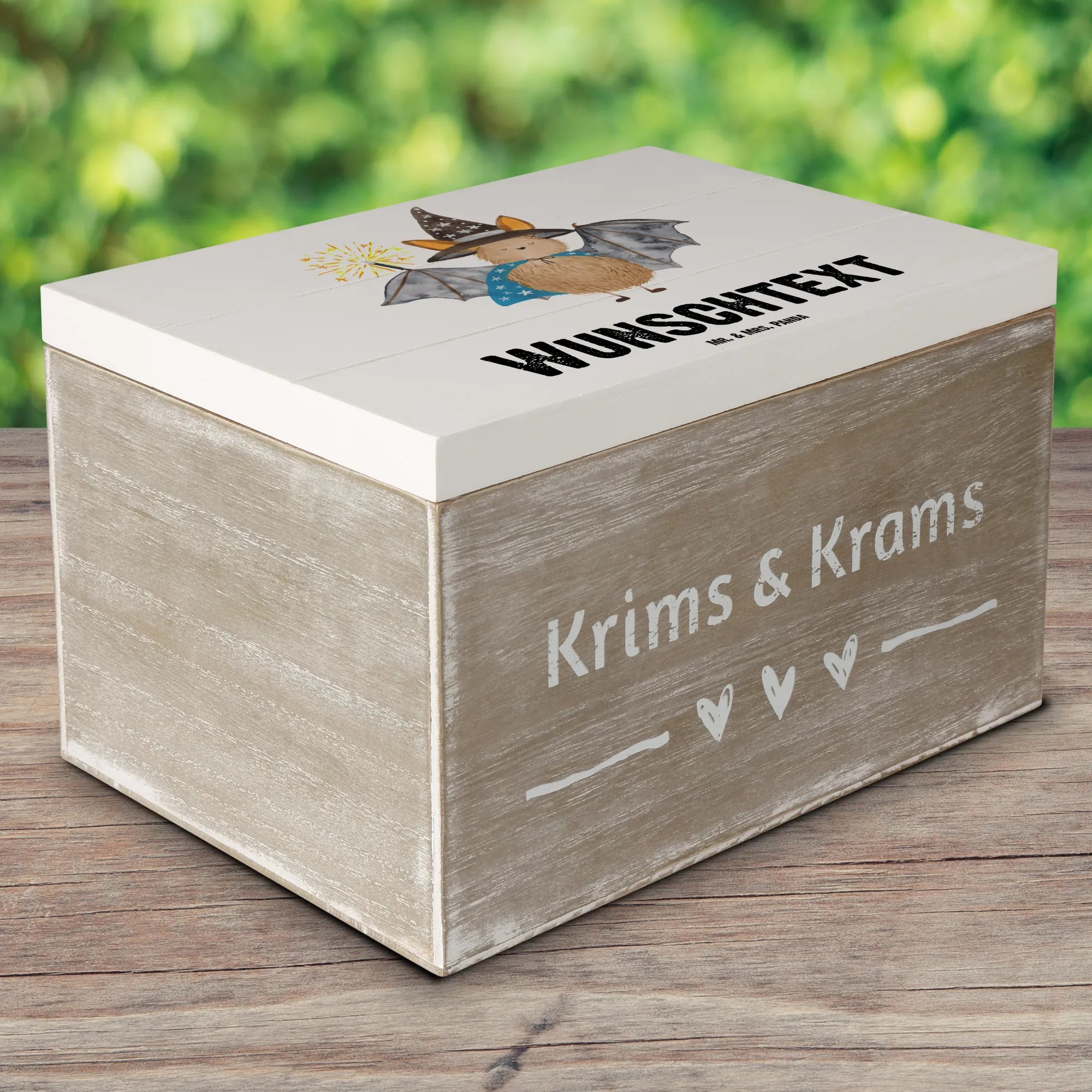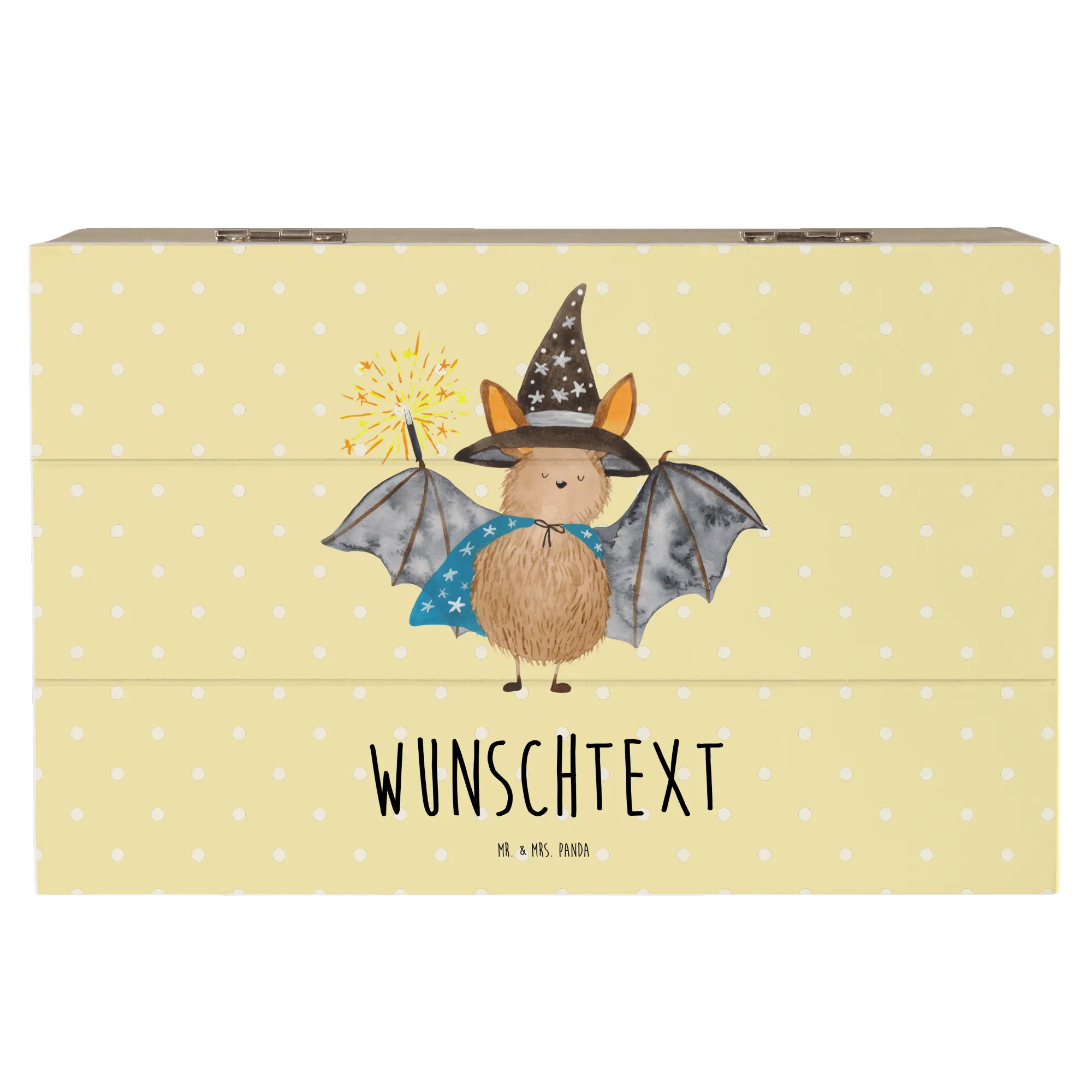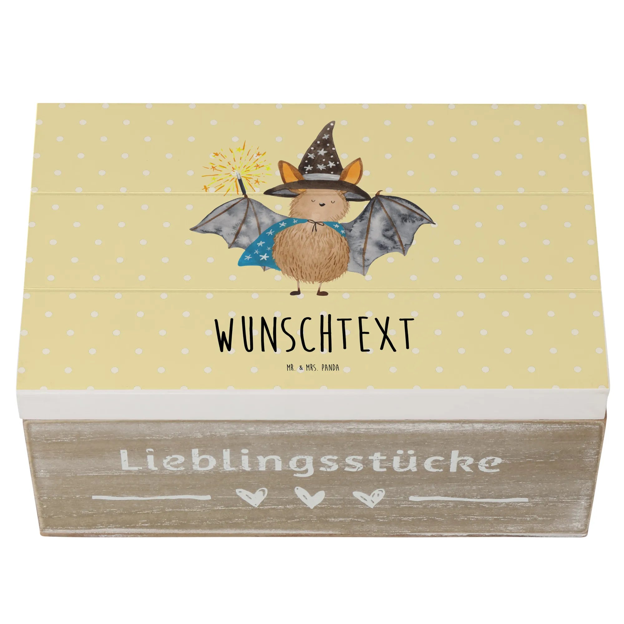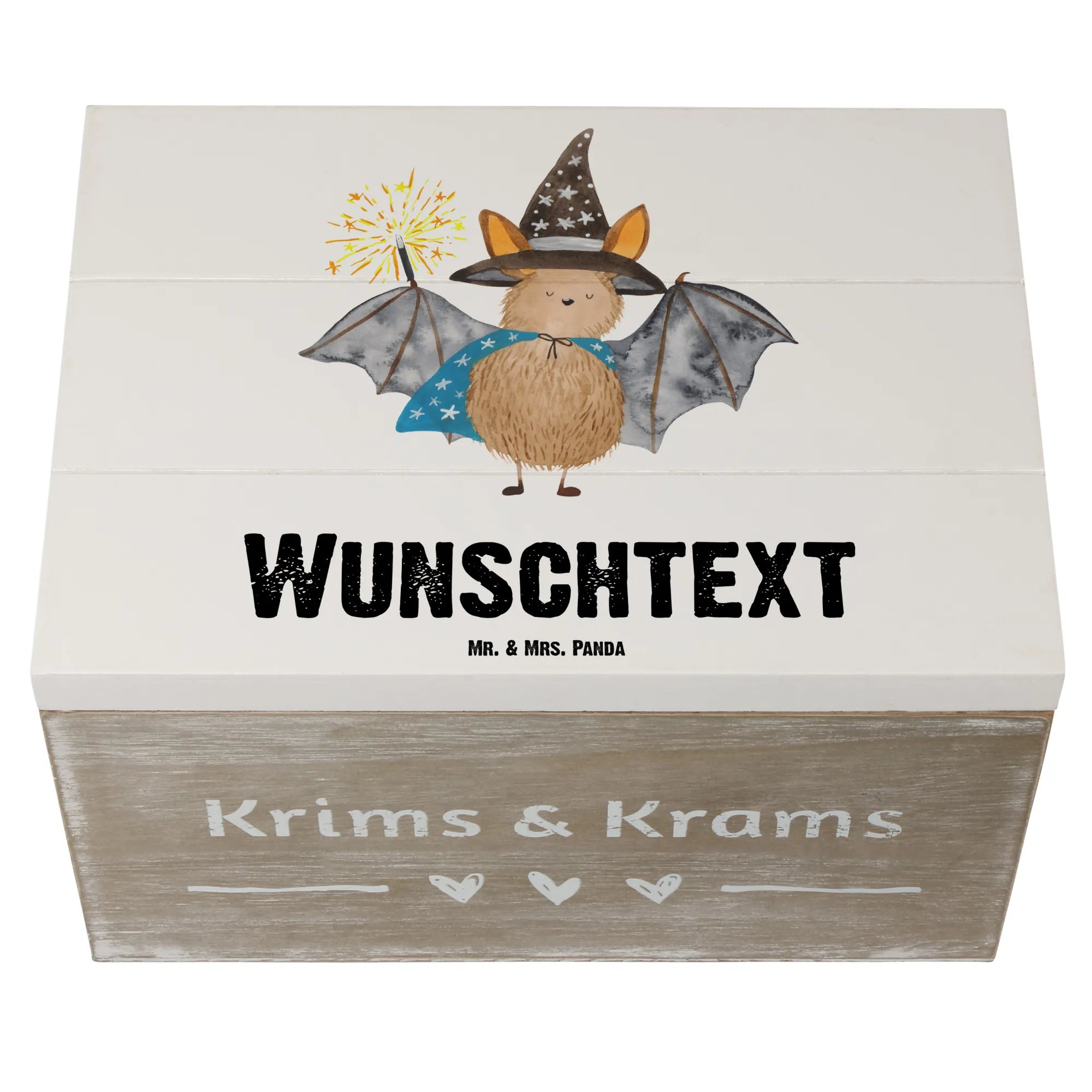 Die personalisierte Holzkiste "Fledermaus Zauberer" von Mr. & Mrs. Panda ist ein wahres Must-Have für alle, die das Besondere lieben! Diese wunderschöne Schatzkiste ist nicht nur ein praktischer Aufbewahrungsort für Deine wertvollsten Schätze und Erinnerungen, sondern auch ein echter Hingucker in jedem Raum.