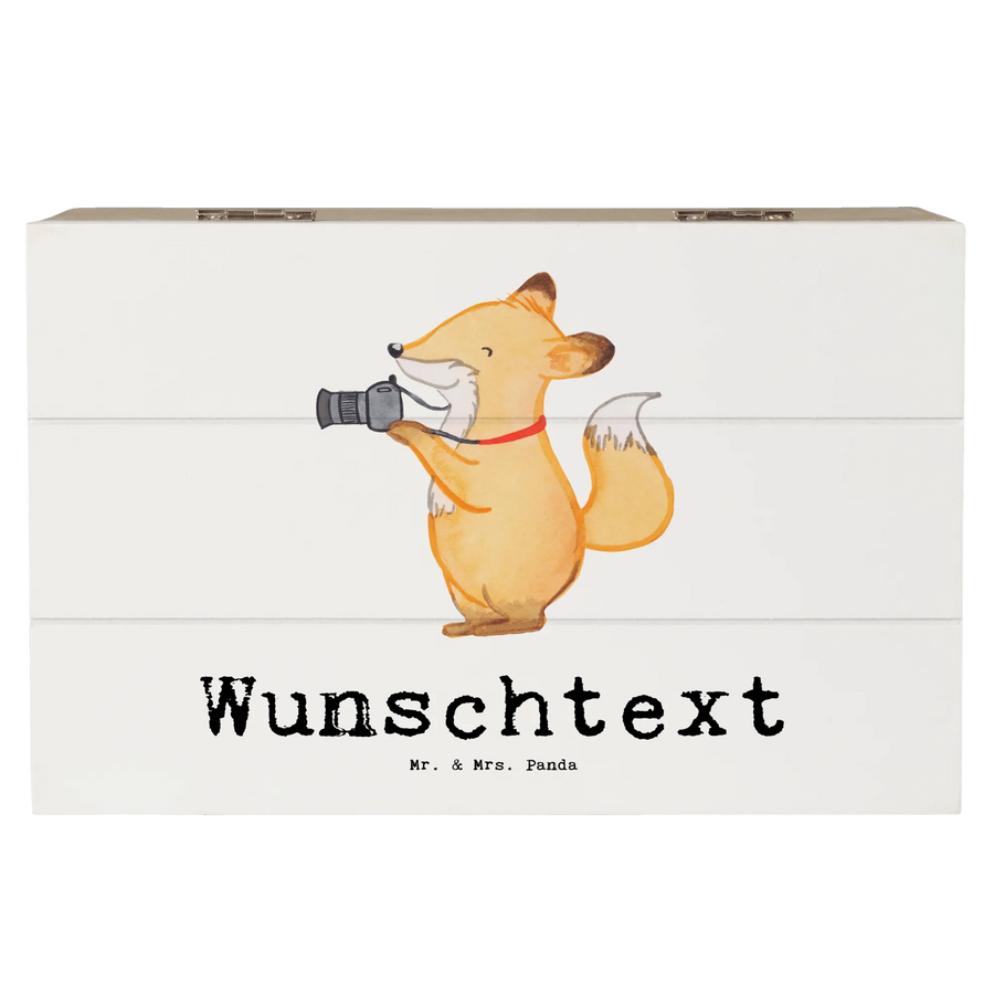 Entdecke die wundervolle personalisierte Holzkiste mit dem süßen Motiv "Fotograf mit Herz" von Mr. & Mrs. Panda. Diese einzigartige Erinnerungskiste ist nicht nur ein praktischer Aufbewahrungsort für deine wertvollen Schätze, sondern auch ein persönliches Geschenk für jeden Fotografen in deinem Leben.
