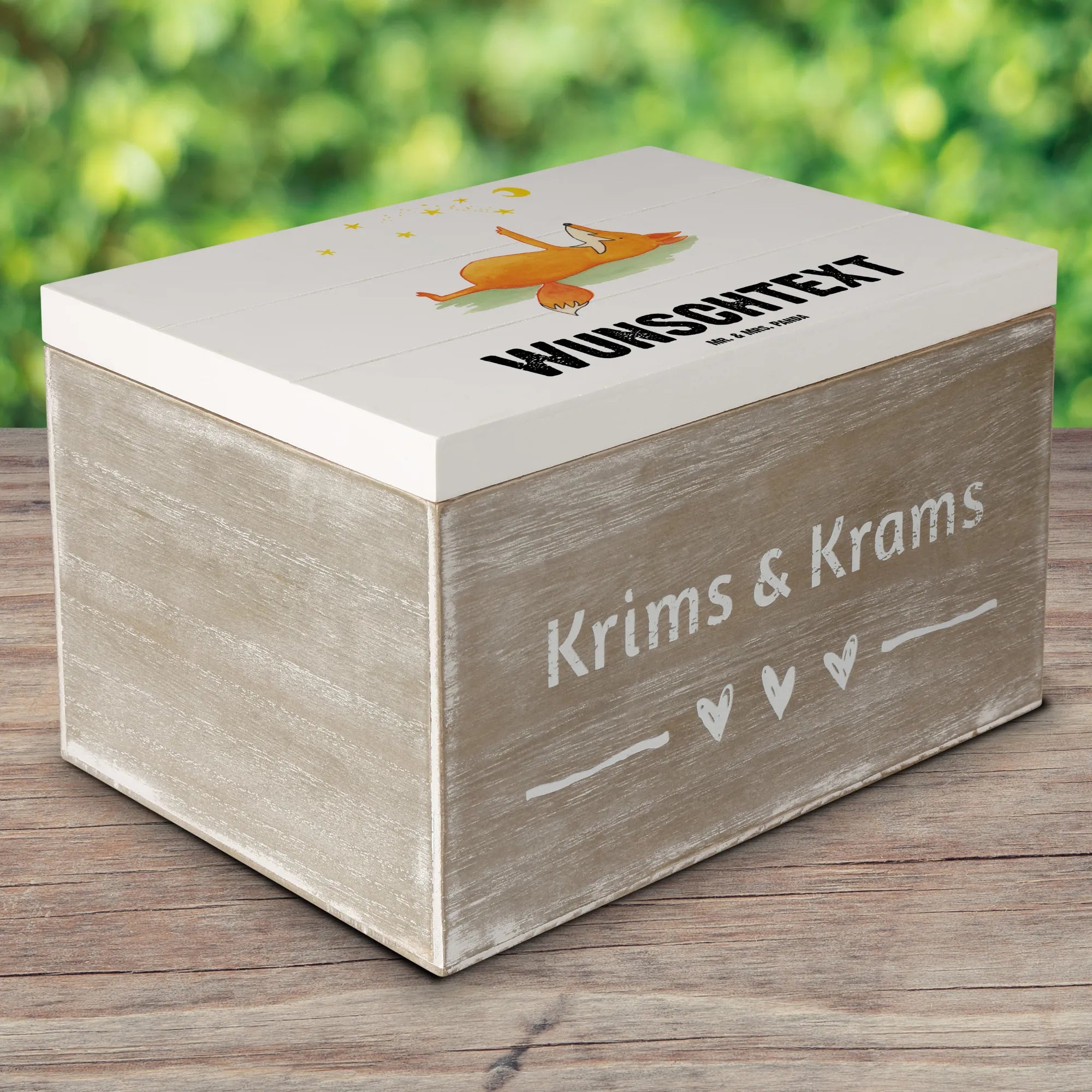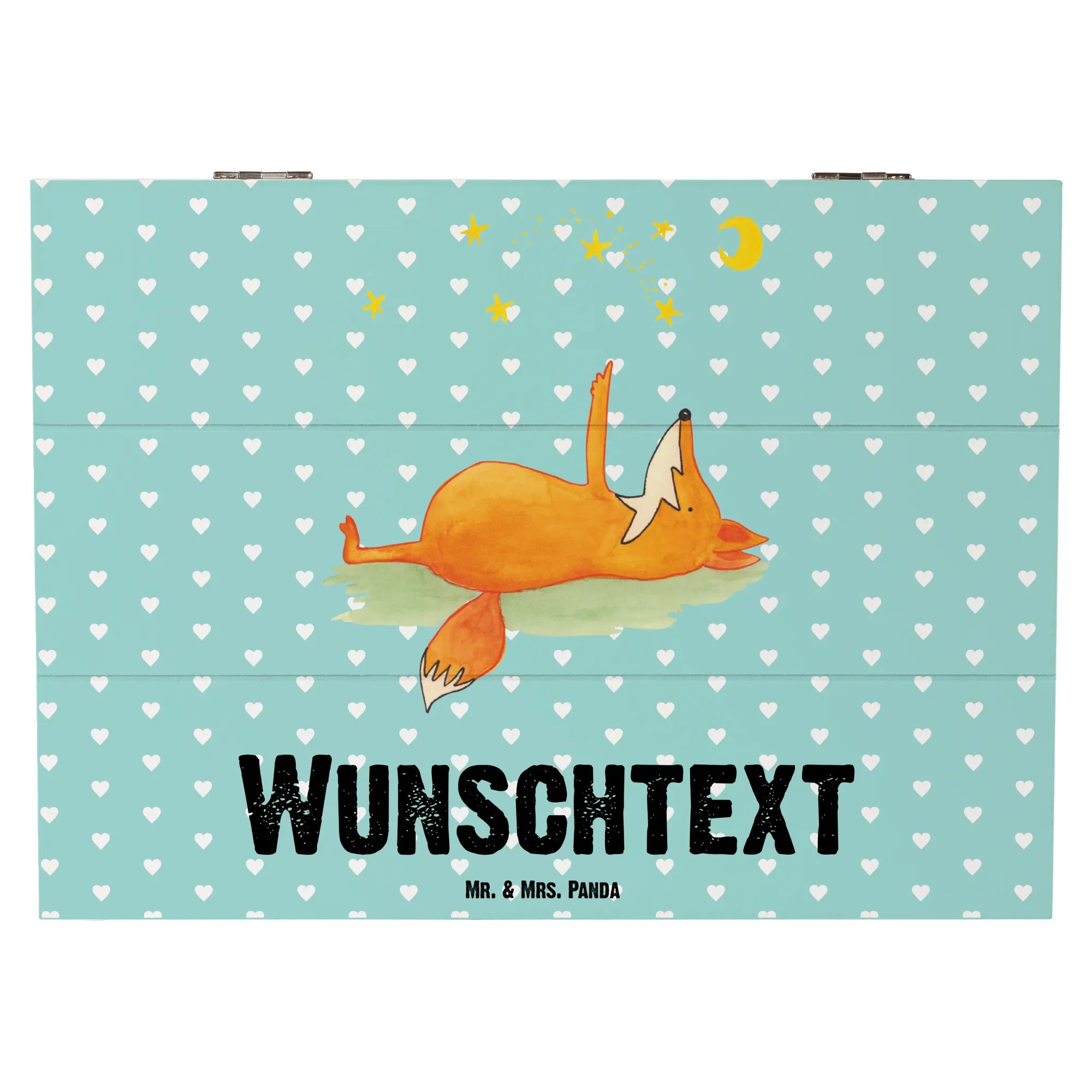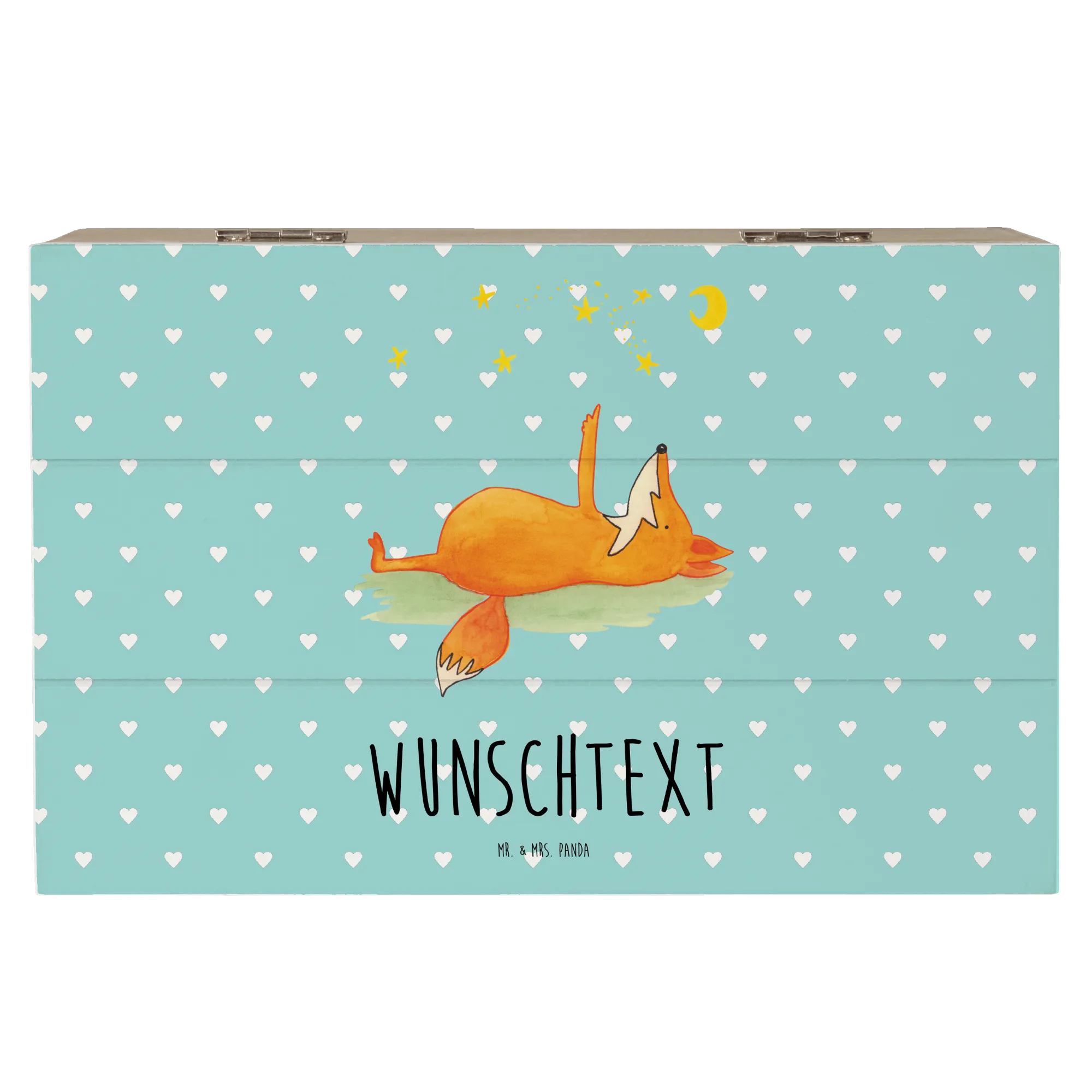 Die wunderschöne, personalisierte Holzkiste mit dem süßen Motiv "Fuchs Sterne" von Mr. & Mrs. Panda ist der perfekte Begleiter für alle, die ihre besonderen Erinnerungen aufbewahren möchten. Ob für die kleinen Schätze deiner Kinder, Fotos von unvergesslichen Momenten oder als stilvolle Aufbewahrungsbox für deine liebsten Dinge - diese Schatzkiste ist einfach unverzichtbar!