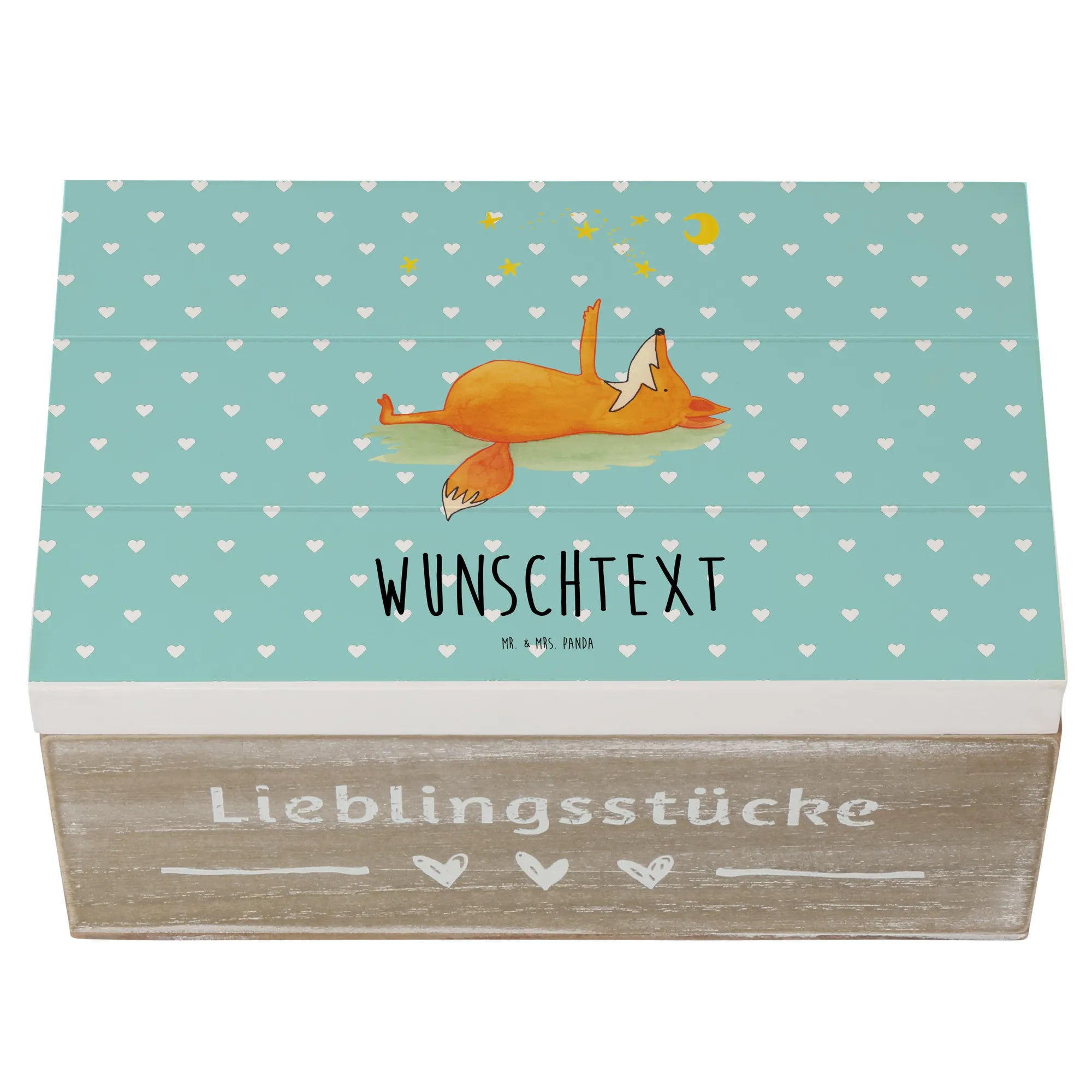 Entdecke die zauberhafte, personalisierte Holzkiste mit dem wunderschönen Motiv "Fuchs Sterne" von Mr. & Mrs. Panda. Diese einzigartige Kiste ist der perfekte Ort, um all deine kostbaren Erinnerungen aufzubewahren. Mit einer Größe von 22 x 15 cm bietet sie ausreichend Platz für Fotos, kleine Schätze und Andenken.