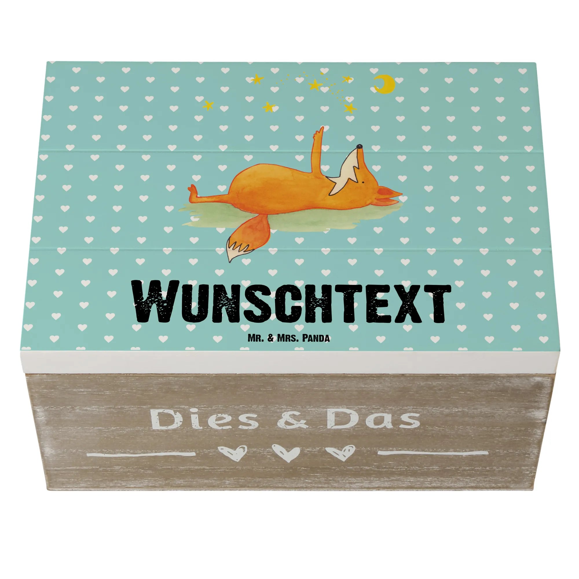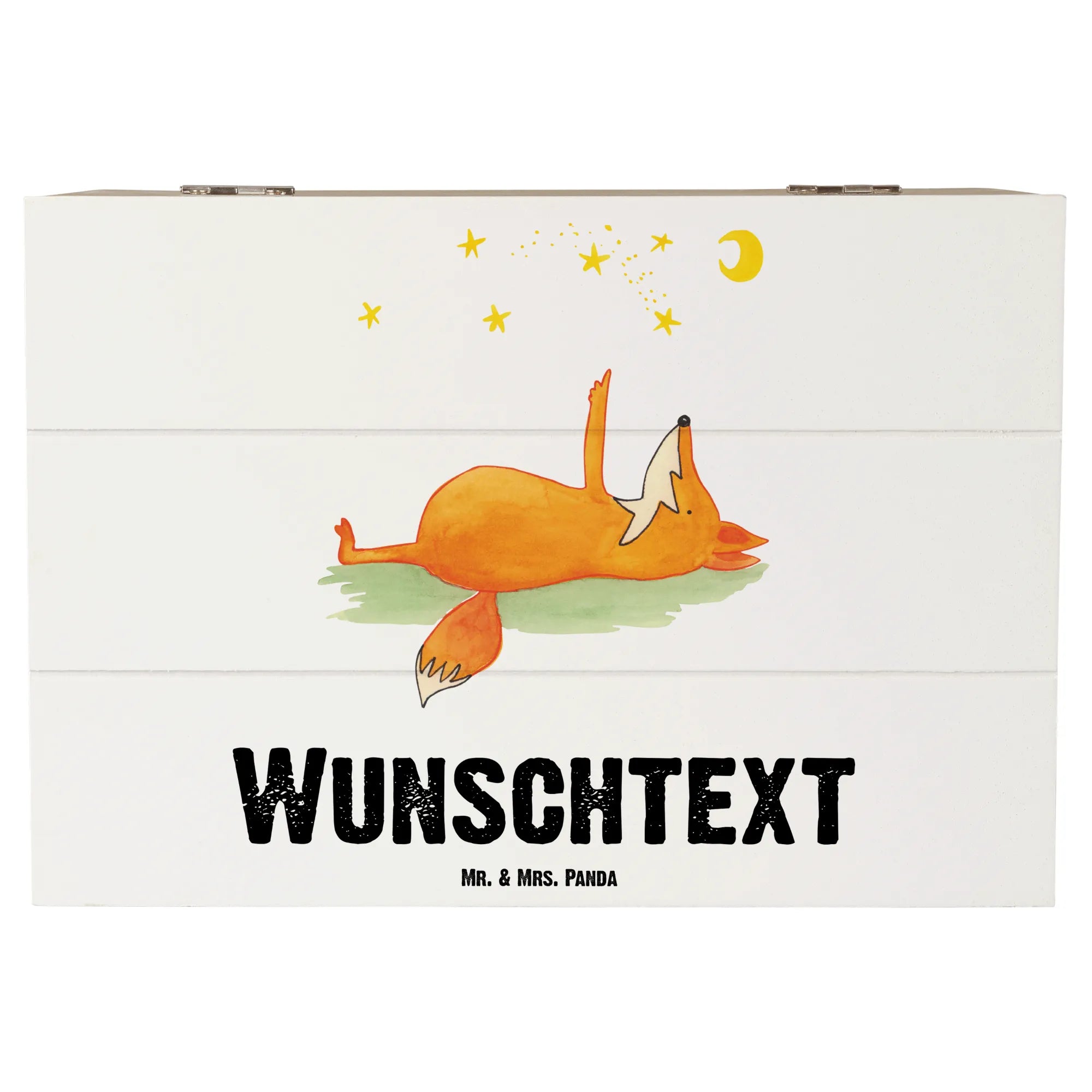 Die personalisierte Holzkiste "Fuchs Sterne" von Mr. & Mrs. Panda ist das ideale Geschenk für alle, die etwas ganz Besonderes suchen! Diese hübsche Kiste ist nicht nur ein praktischer Aufbewahrungsort für Erinnerungen, sondern auch ein echter Blickfang in jedem Raum. Mit ihrem einzigartigen Design, das einen süßen Fuchs zeigt, der in den Sternenhimmel schaut, begeistert sie Jung und Alt.