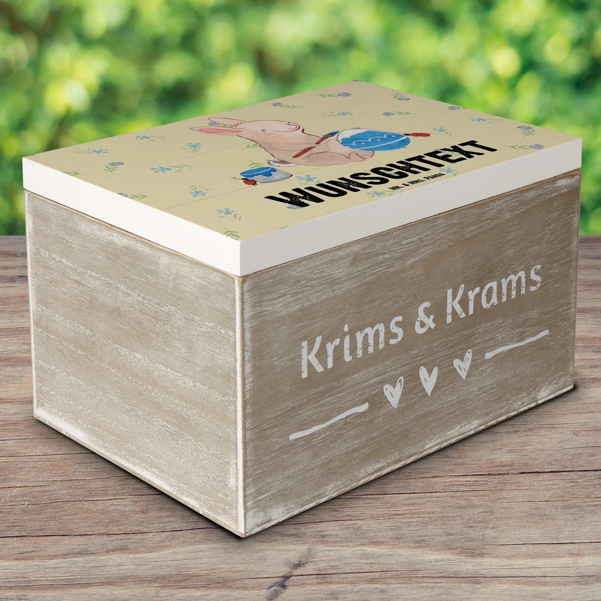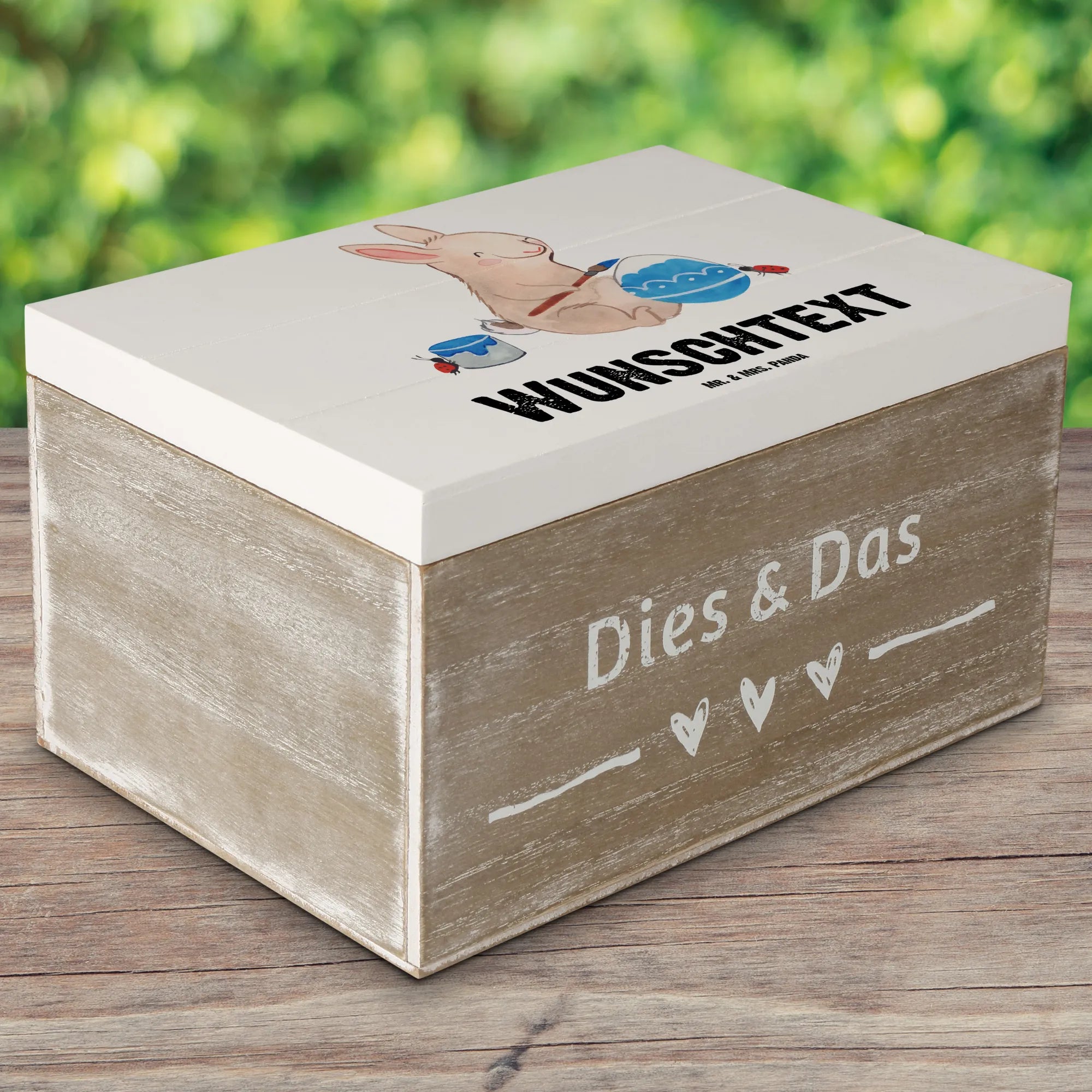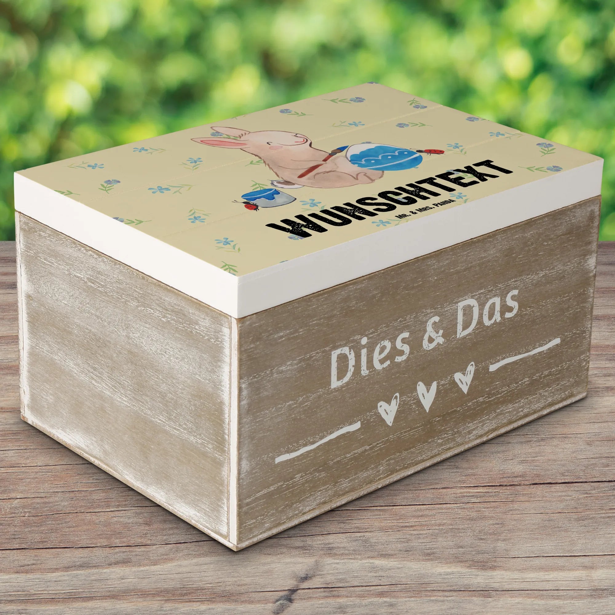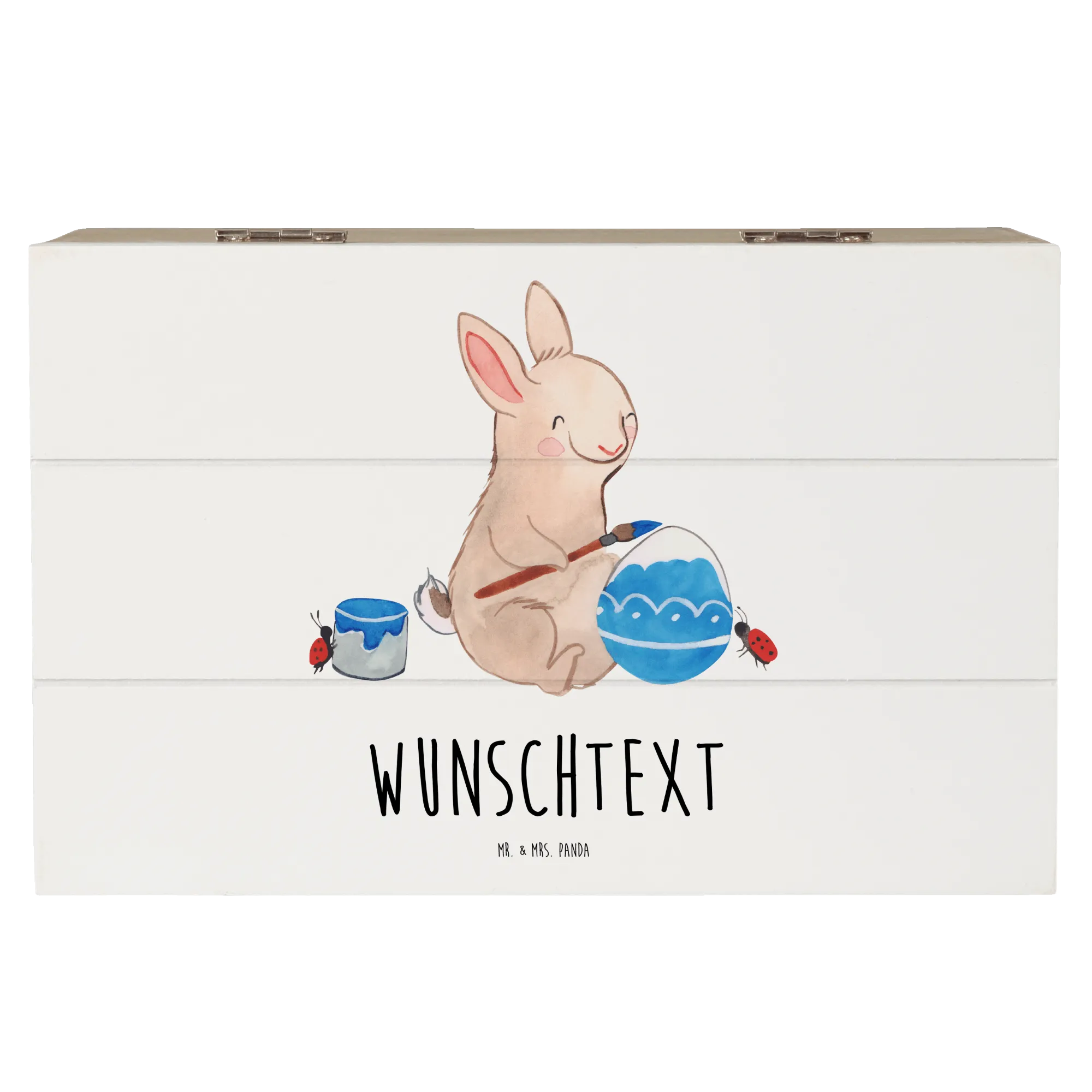 Entdecke die perfekte Geschenkidee für das Osterfest mit der personalisierten Holzkiste Hase Marienkäfer von Mr. & Mrs. Panda! Diese wunderschöne Kiste ist nicht nur ein toller Hingucker, sondern auch ein einzigartiger Aufbewahrungsort für all deine Schätze, Erinnerungen und Osterüberraschungen.