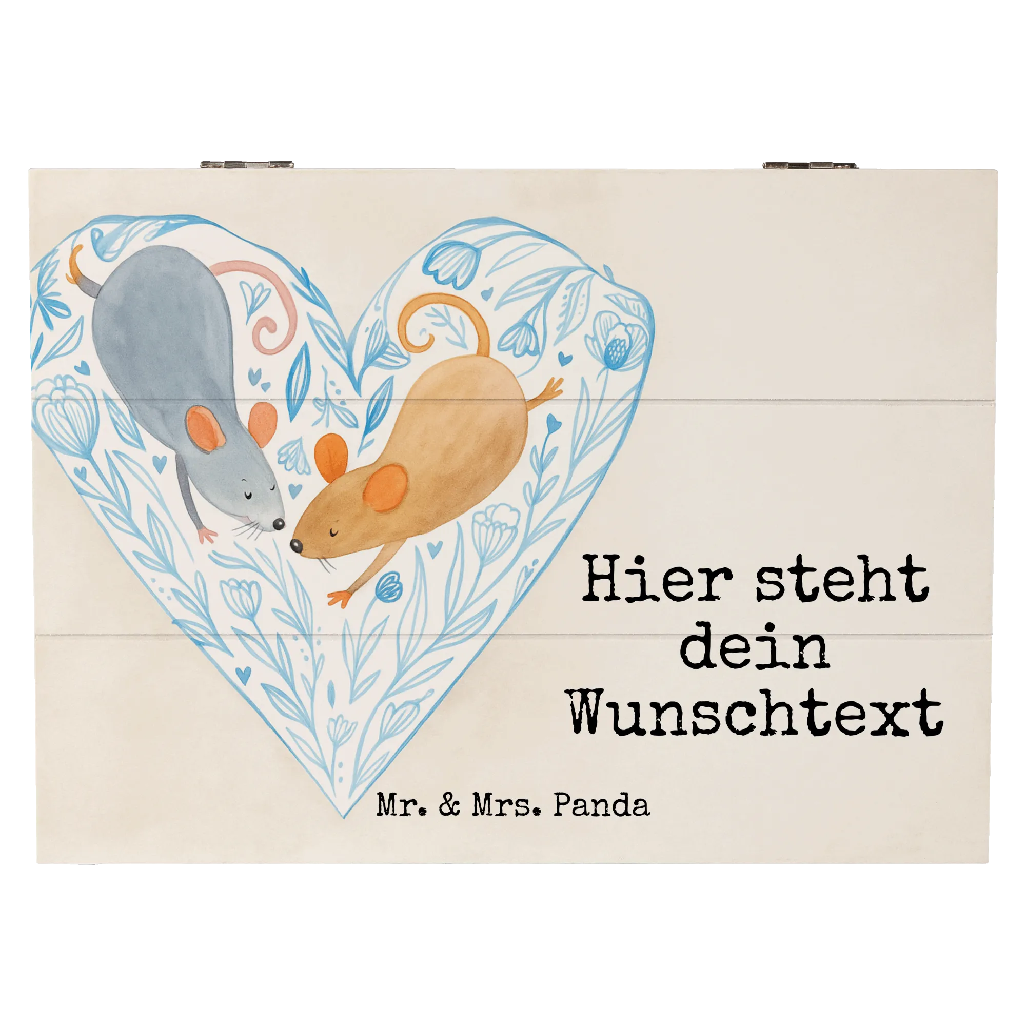 Personalisierte Holzkiste Hochzeit Mäuse Herz Design - 22 x 15 cm