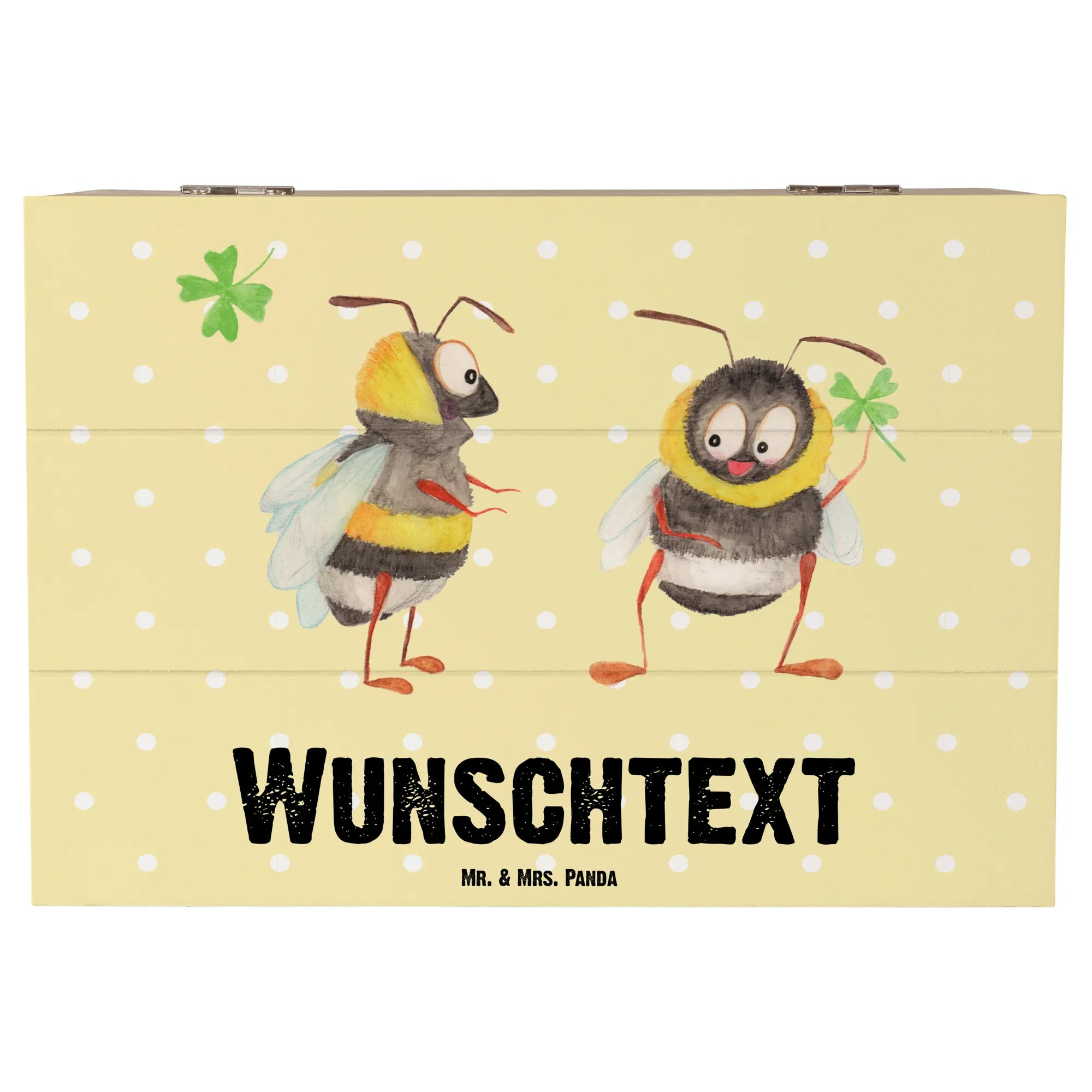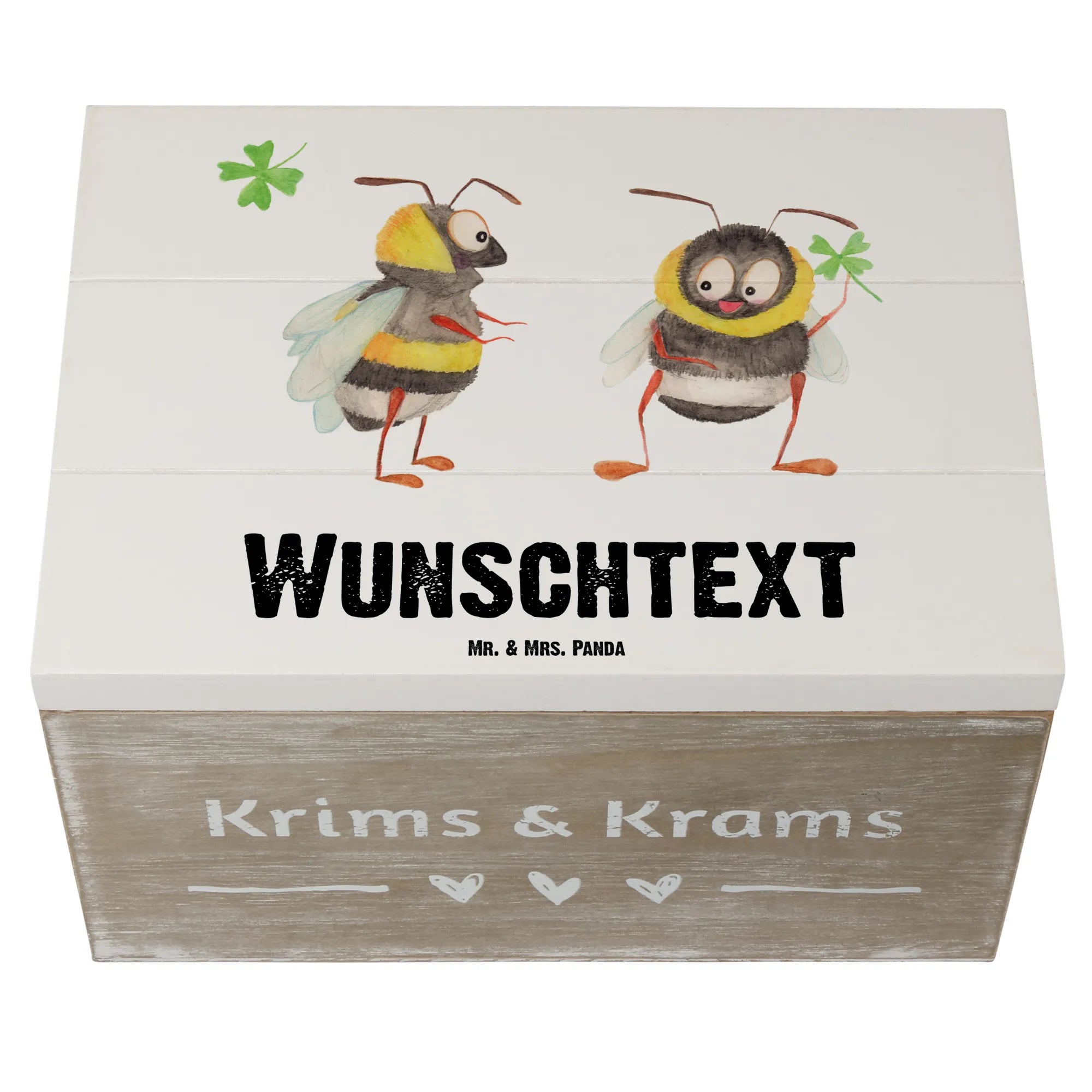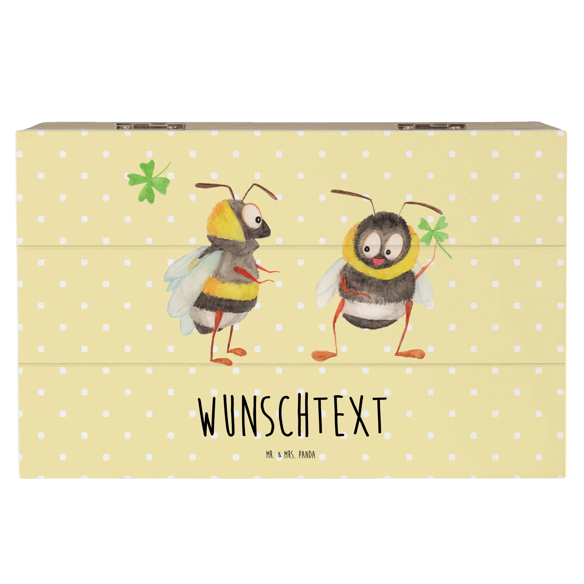 Wenn Du auf der Suche nach einem ganz besonderen Geschenk bist, dann ist die personalisierte Holzkiste mit dem bezaubernden Motiv der Hummeln mit Kleeblatt aus der Small World Kollektion von Mr. & Mrs. Panda genau das Richtige für Dich!