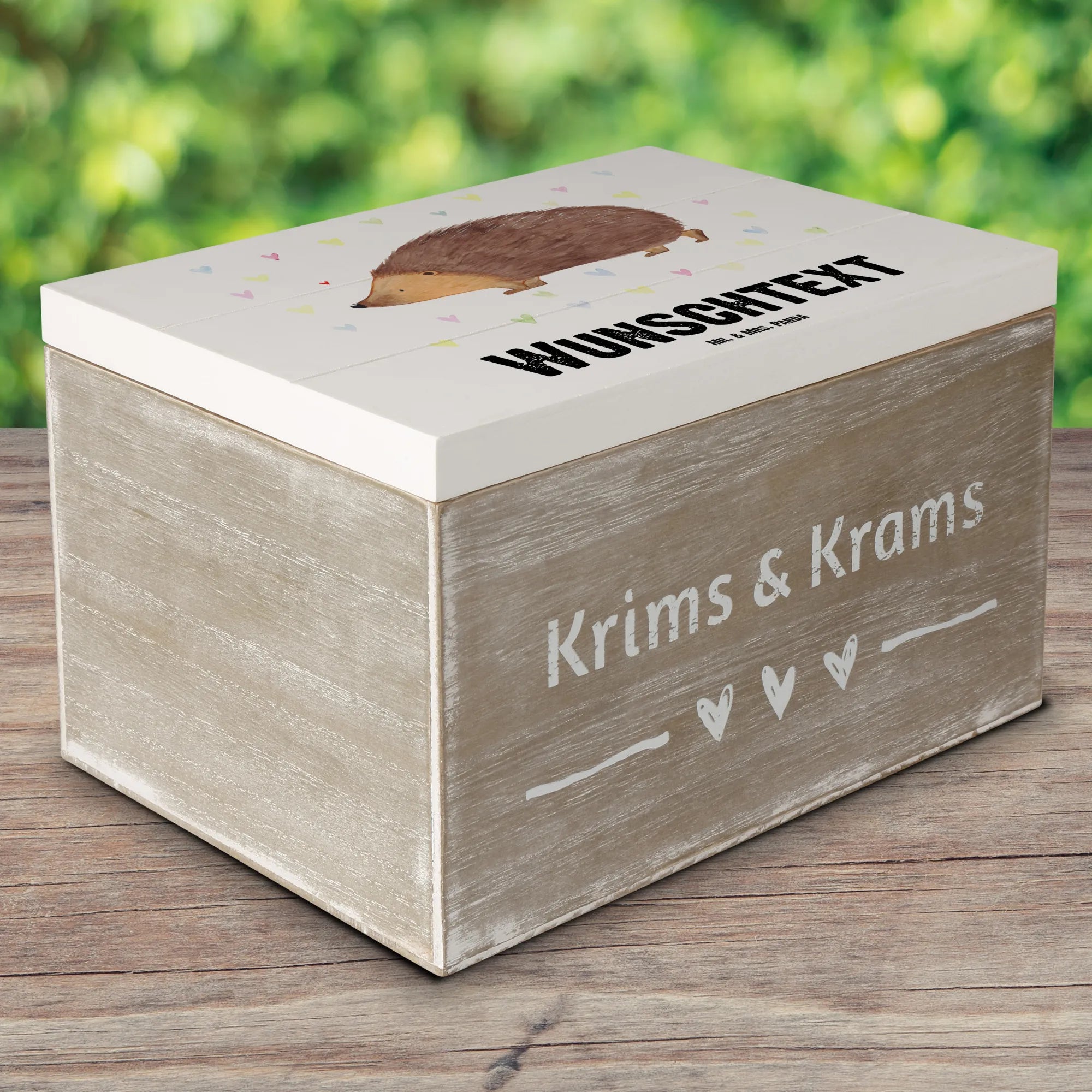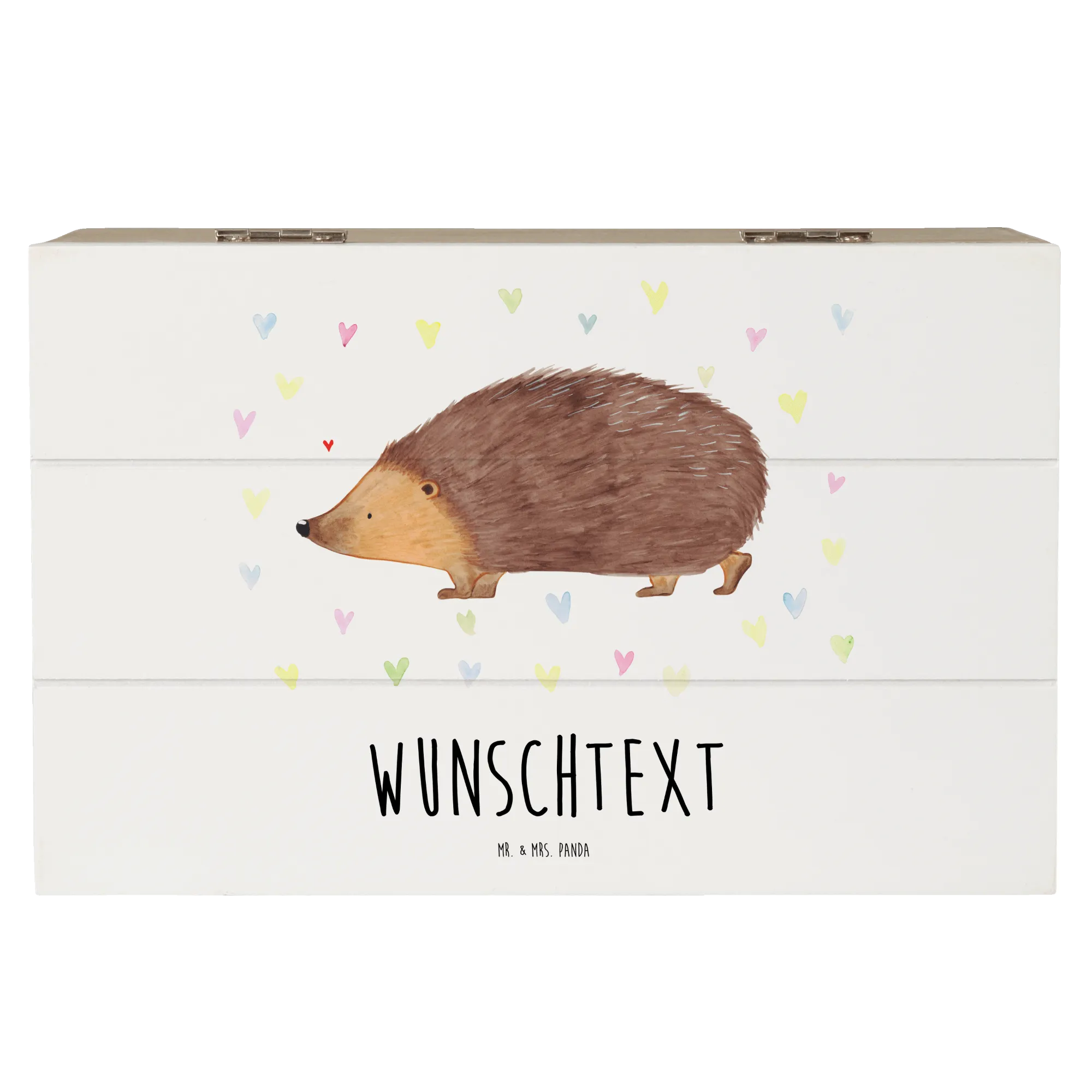 Entdecke die zauberhafte personalisierte Holzkiste "Igel Herzen" von Mr. & Mrs. Panda! Diese wunderschöne Kiste ist das perfekte Geschenk für jeden Anlass.
