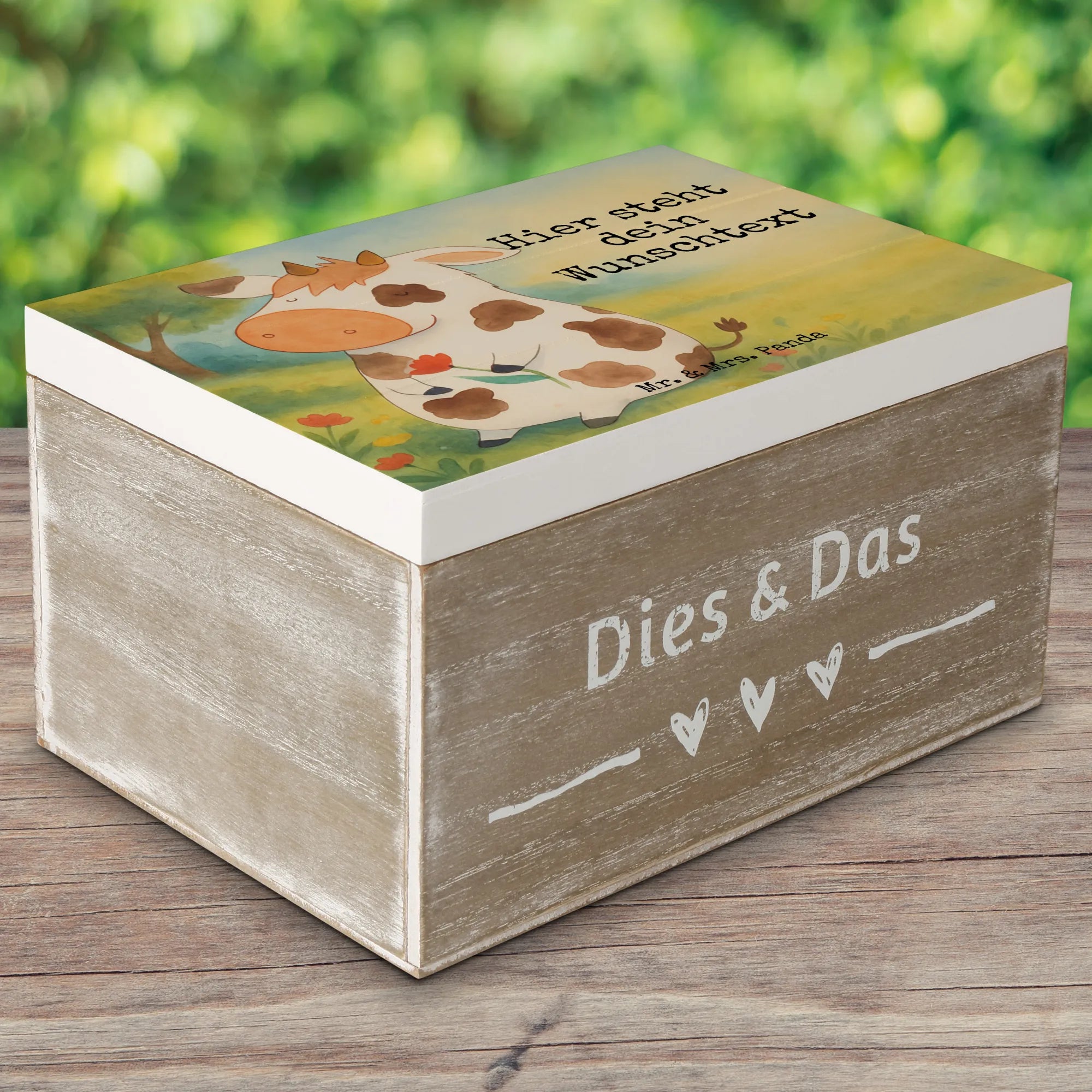 Personalisierte Holzkiste Kuh Design - 22 x 15 cm