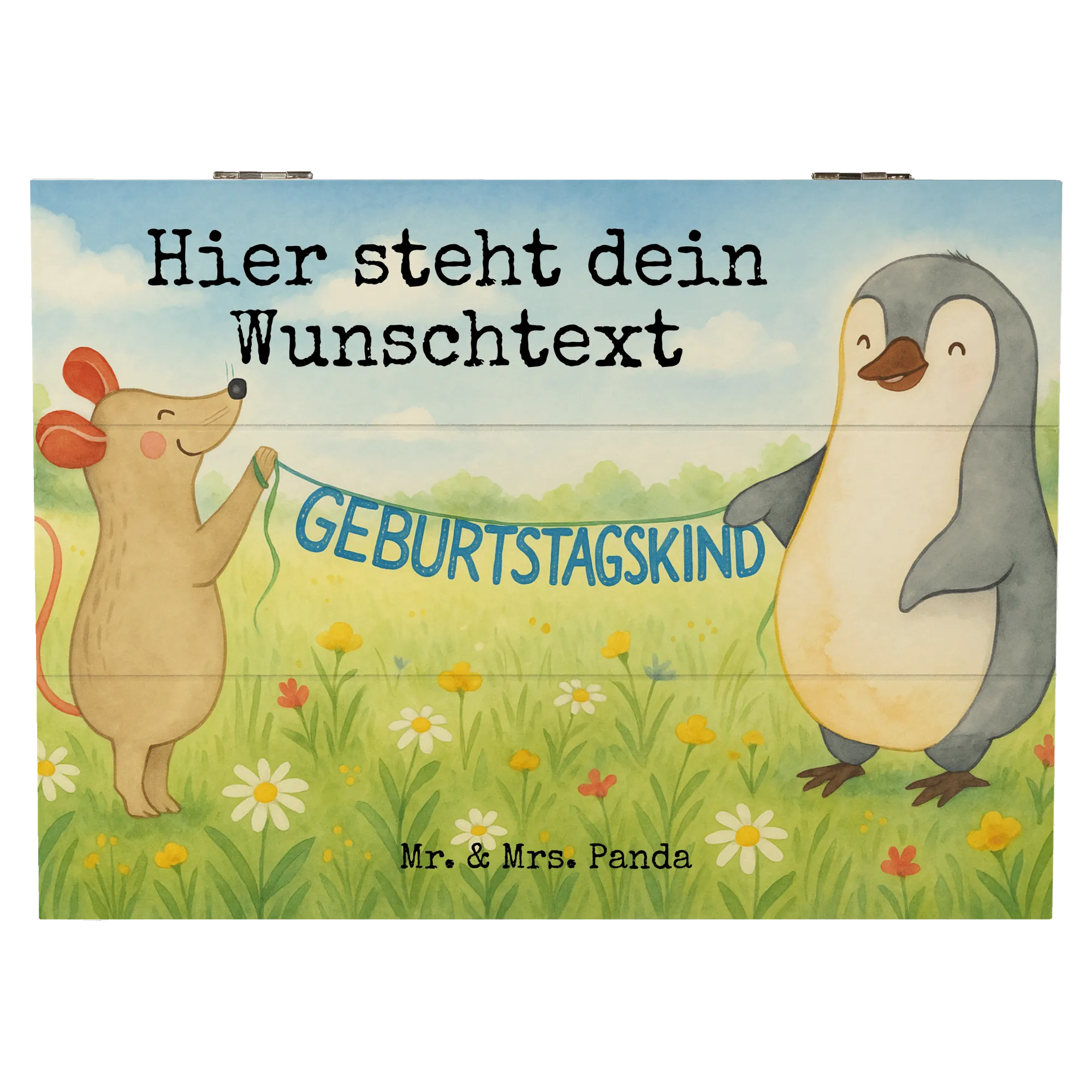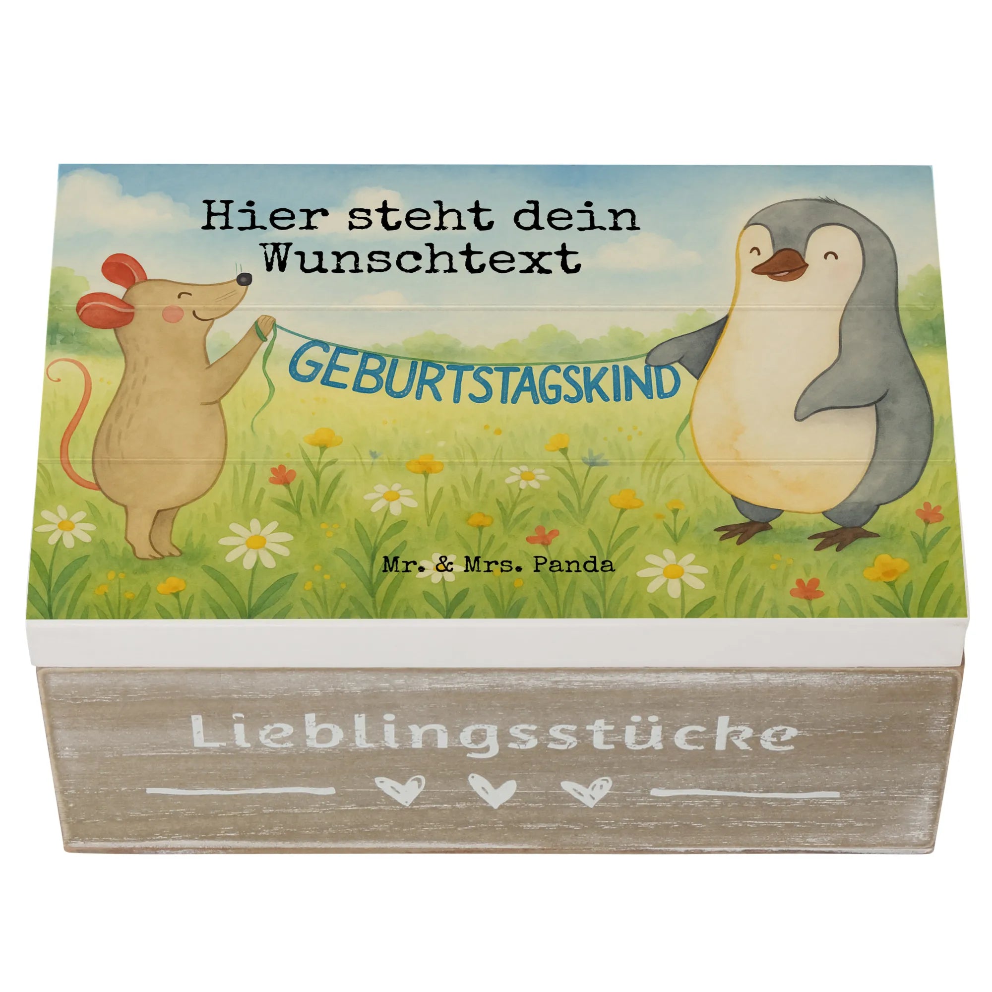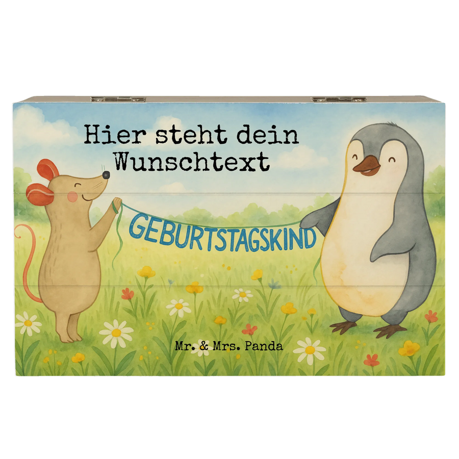 Personalisierte Holzkiste Maus Pinguin Geburtstag Design - 19 x 12 cm