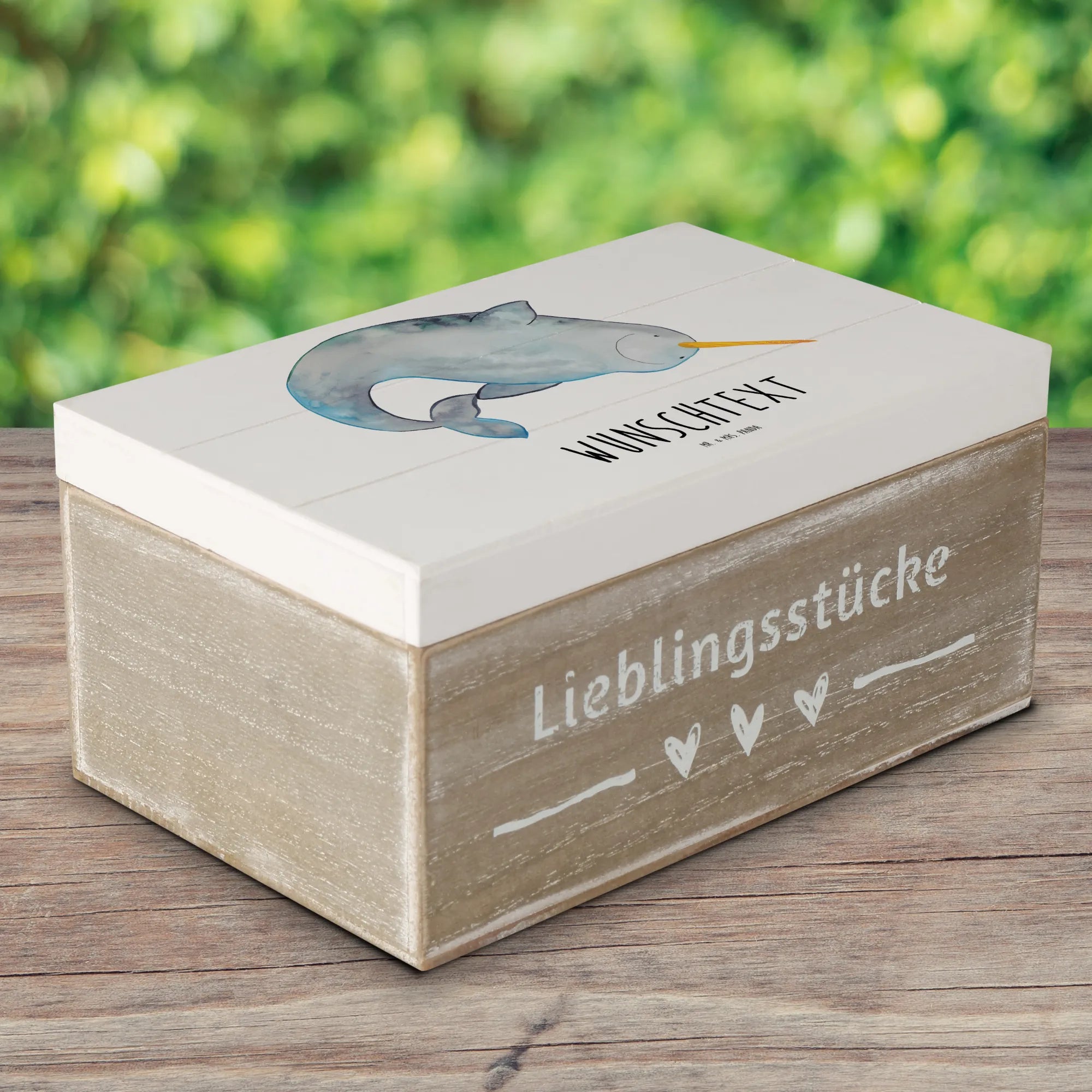 Diese wunderschöne personalisierte Holzkiste von Mr. & Mrs. Panda ist das perfekte Geschenk für jeden Anlass! Durch das zauberhafte Motiv des Narwals aus unserer Meerestiere-Kollektion wird sie zu einem echten Hingucker in jedem Zuhause.