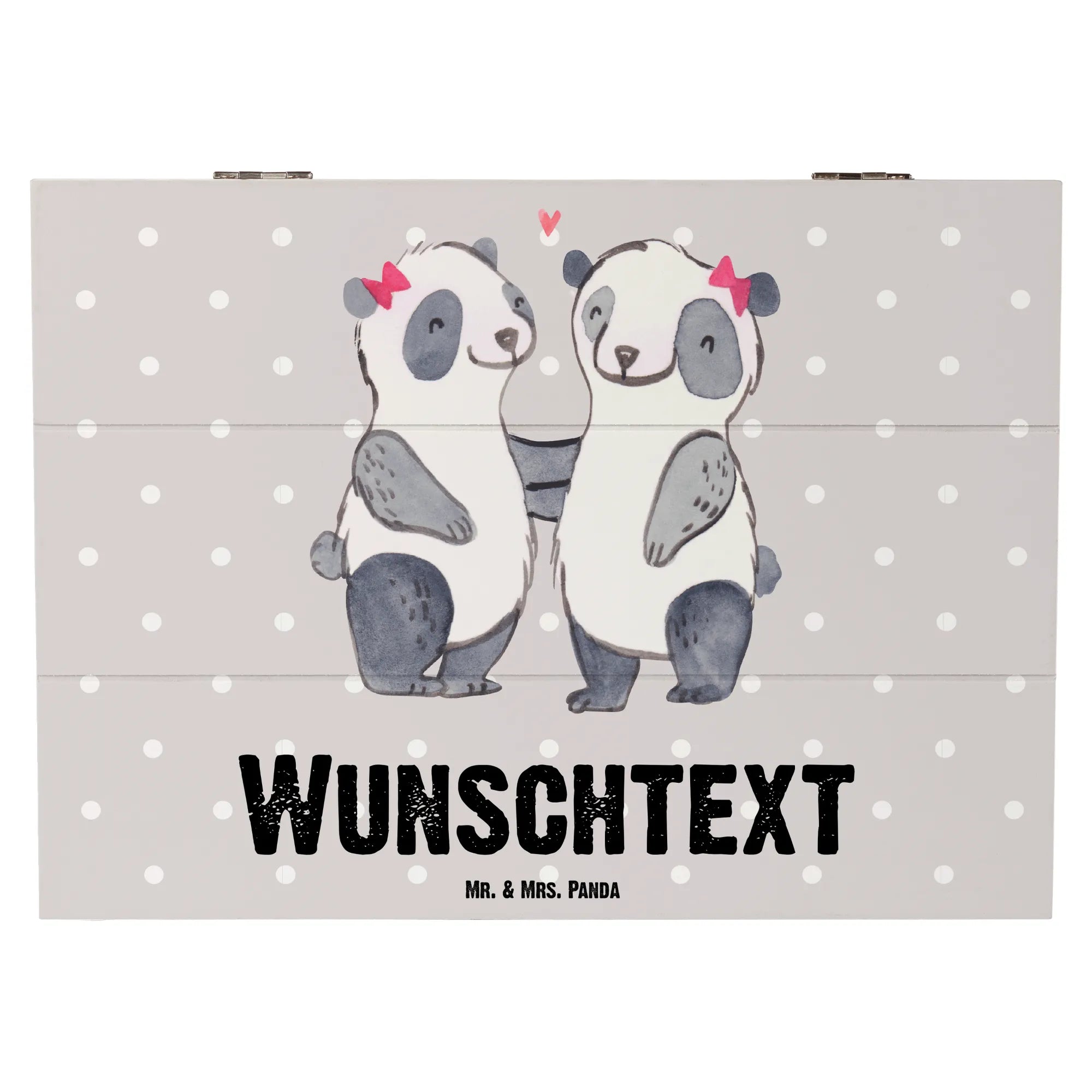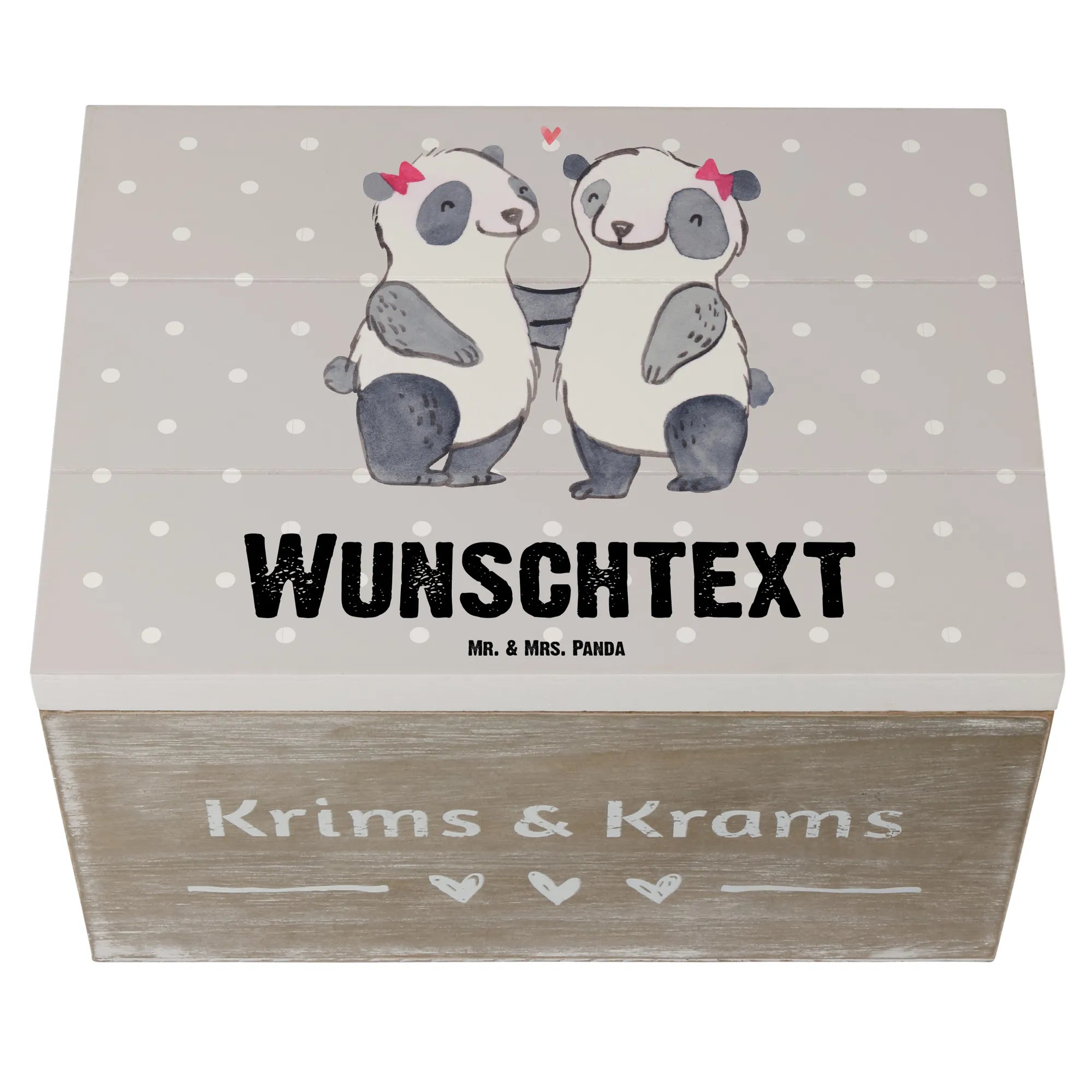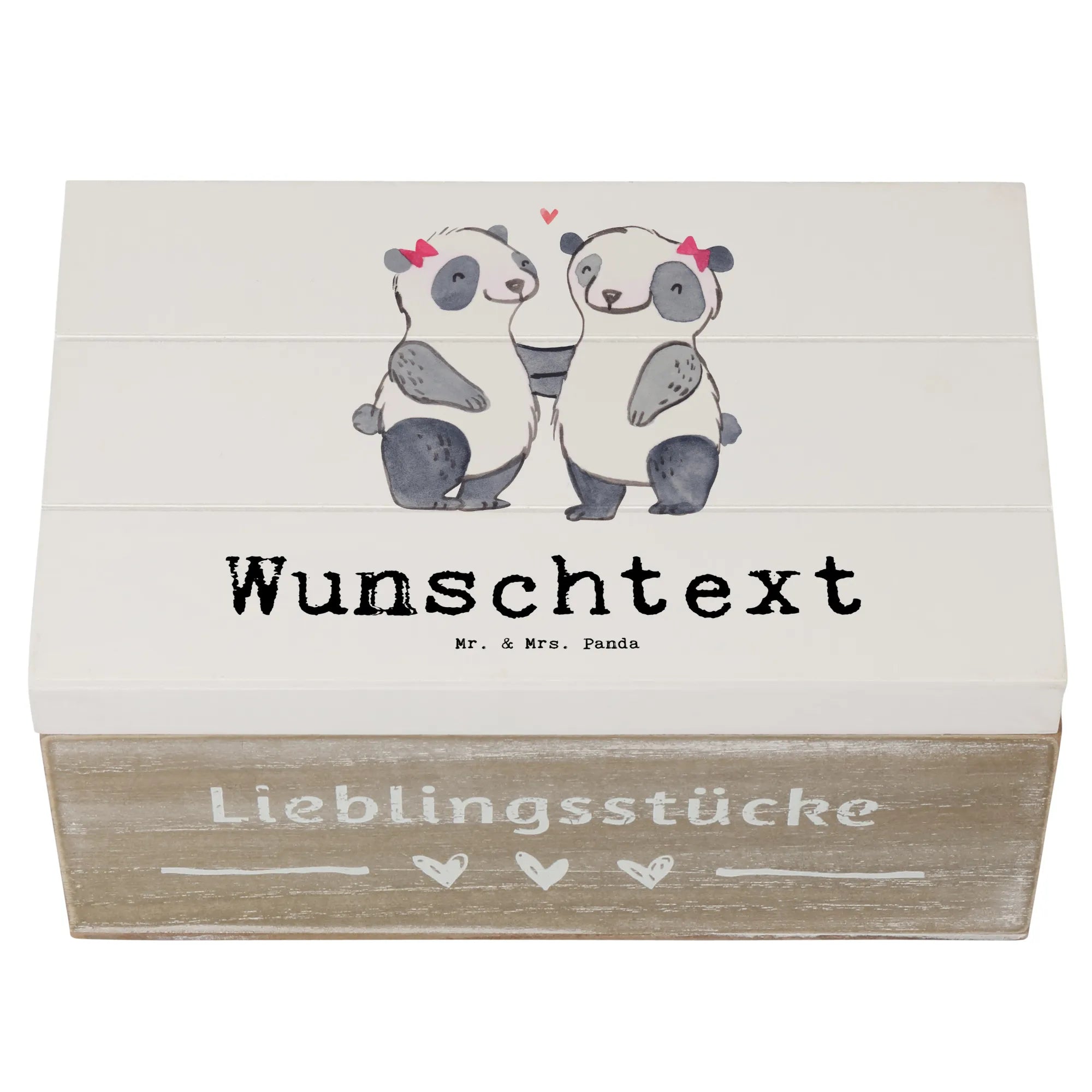 Diese Kiste gehört zur Beziehungskollektion von Mr. & Mrs. Panda, die mehr als 150 handgemalte Motive enthält. Die Kombination aus Liebe, Erinnerung und persönlicher Note macht dieses Geschenk einfach unverzichtbar. Zögere nicht – deine Schwester wird es dir danken!