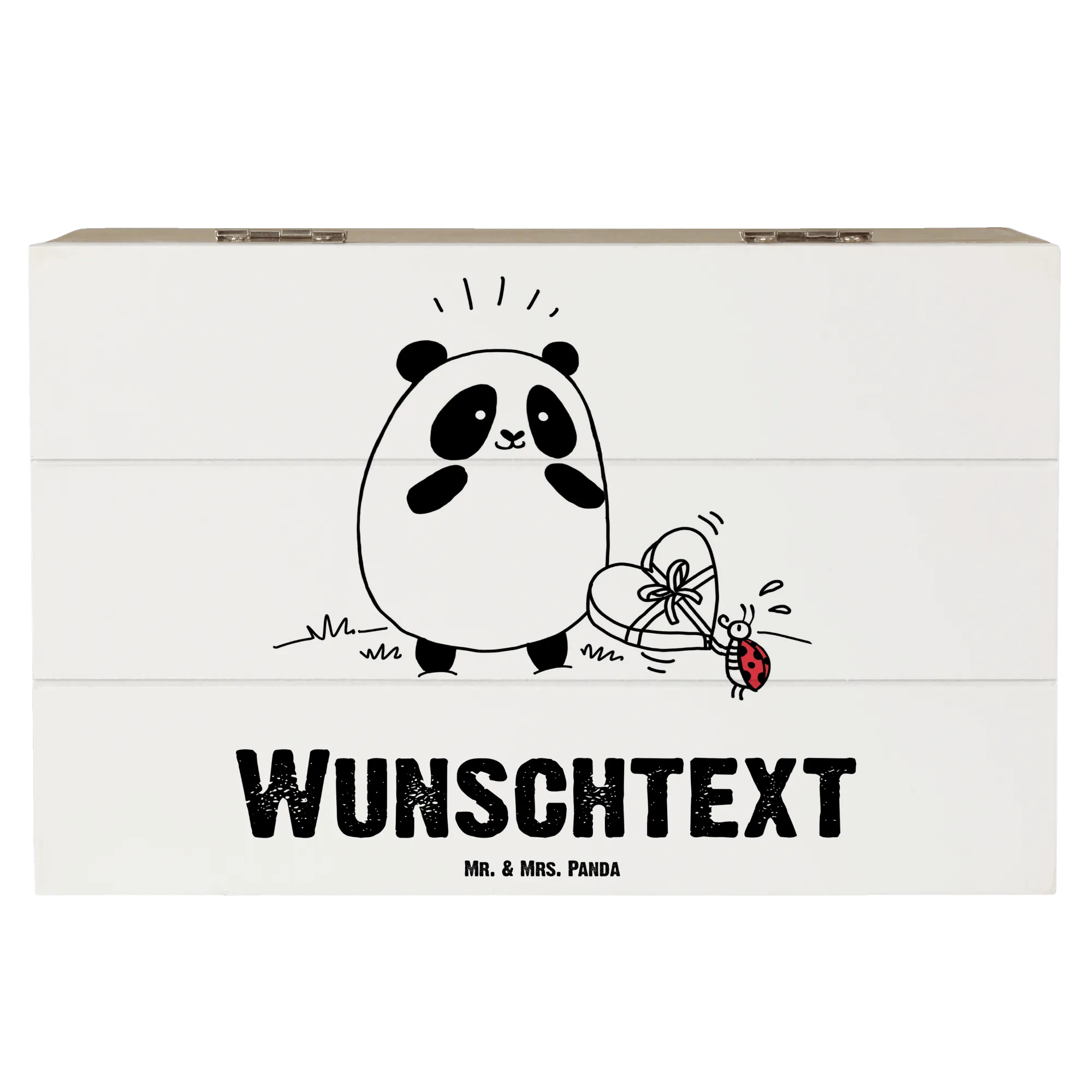 Entdecke die zauberhafte, personalisierte Holzkiste "Easy & Peasy Dankeschön" von Mr. & Mrs. Panda! Diese wunderschöne Kiste ist perfekt, um all deine Erinnerungen und Schätze stilvoll aufzubewahren. Mit einem fröhlichen Panda, der dankeschön eine Schachtel Pralinen von einem süßen Marienkäfer entgegennimmt, wird jede Kiste zu einem einzigartigen Hingucker.