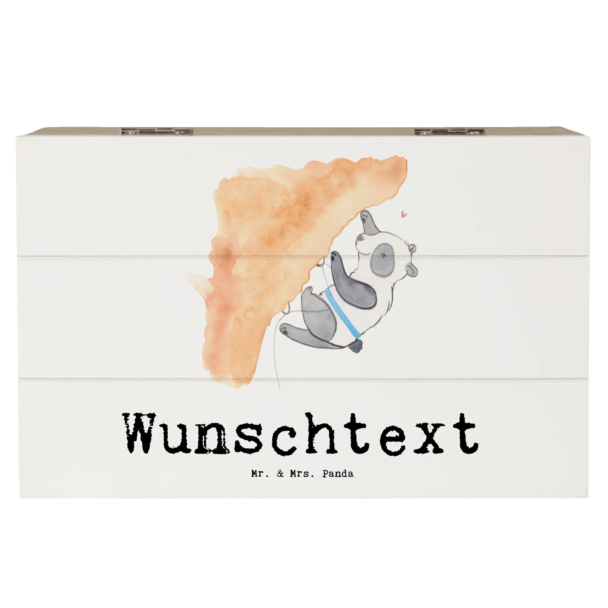 Egal, ob zum Geburtstag, zur Kommunion oder einfach als Zeichen der Wertschätzung – mit deiner persönlichen Gravur wird diese Kiste zu etwas ganz Besonderem. Das zauberhafte Motiv des kletternden Pandas und der motivierende Spruch "Es gibt schlechte Tage, und es gibt Tage, an denen ich klettere." machen diese Kiste zu einer idealen Wahl für alle Kletterer und Boulderer! Sie hat eine optimale Größe von 22 cm x 15 cm x 12 cm, sodass sich viele Erinnerungen, Fotos oder auch kleine Geschenke darin verstauen lassen.