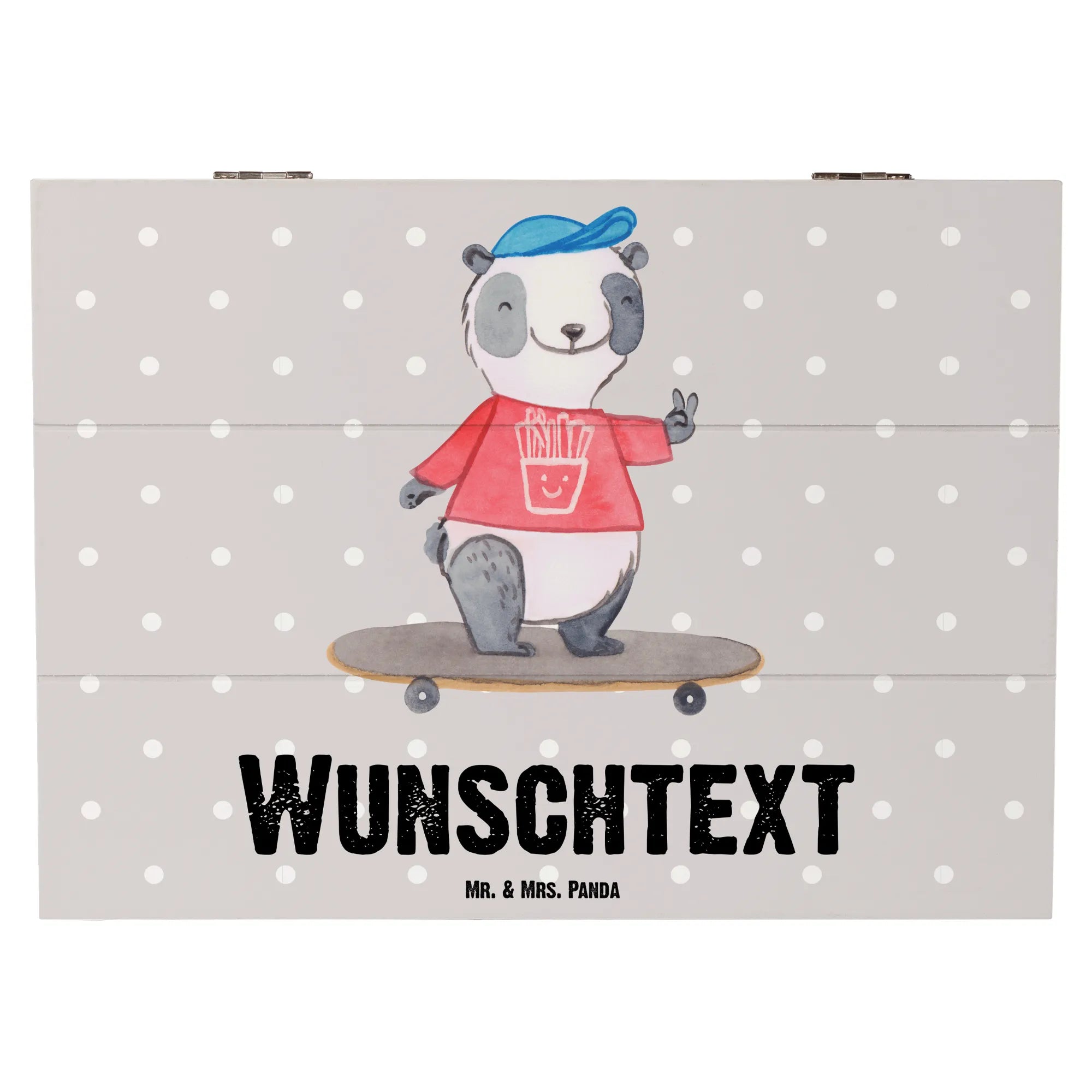 Personalisierte Holzkiste Panda Longboard fahren – Mr. & Mrs. Panda
