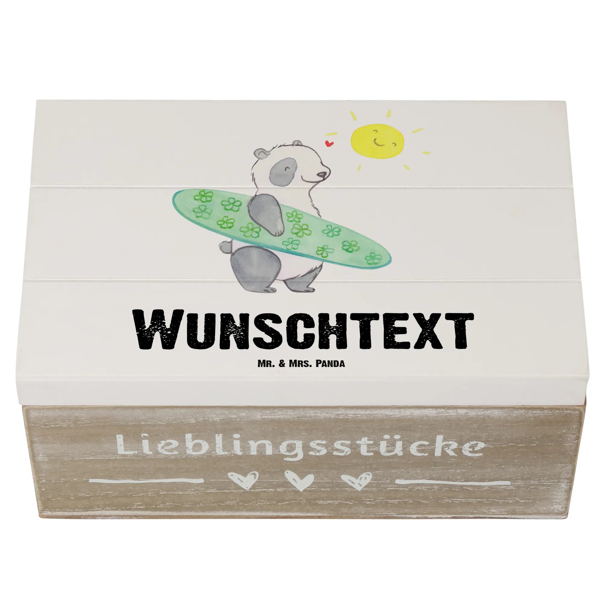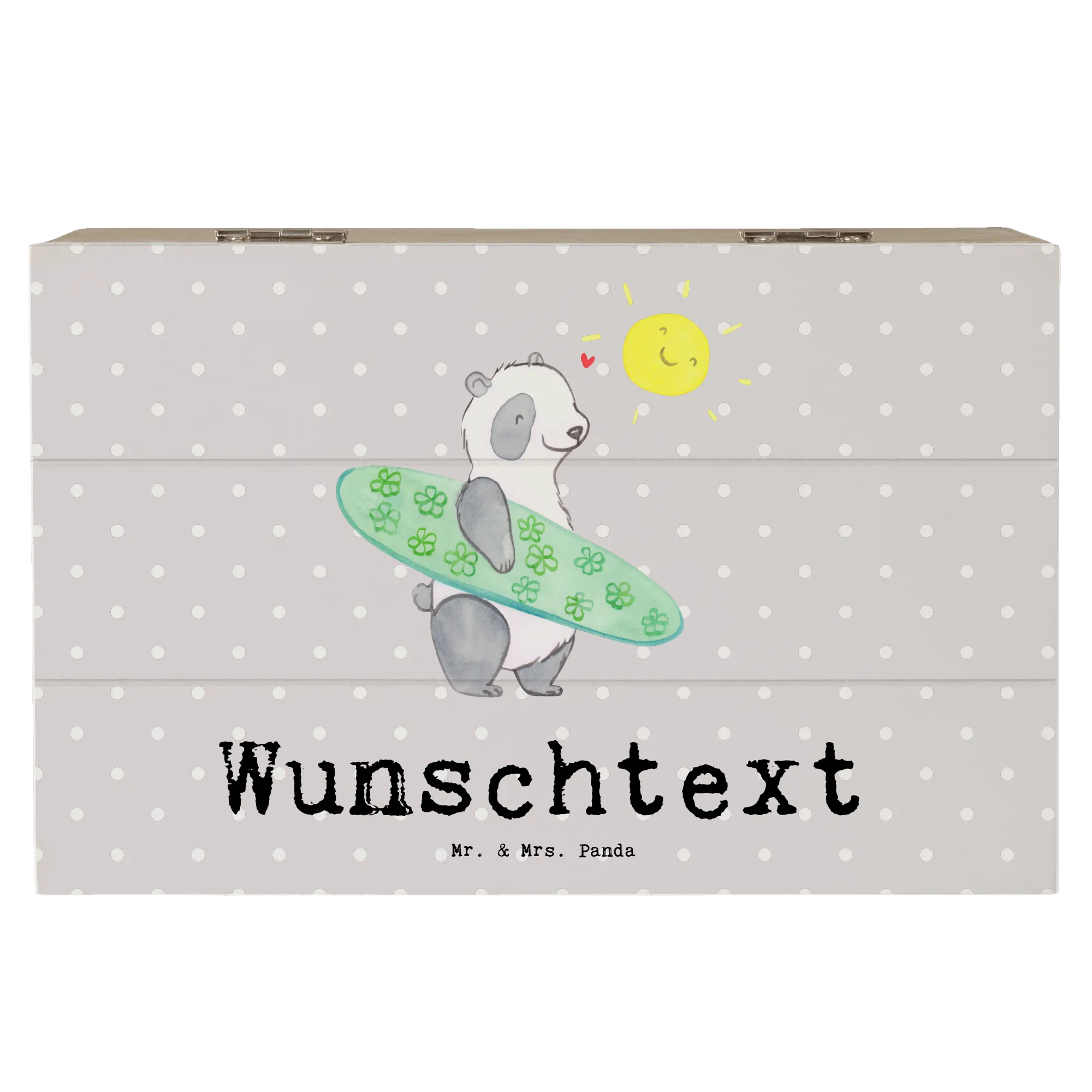 Bist du auf der Suche nach dem perfekten Geschenk für einen passionierten Surfer oder Sportliebhaber? Dann ist die personalisierte Holzkiste "Panda Surfen Tage" von Mr. & Mrs. Panda genau das richtige für dich!