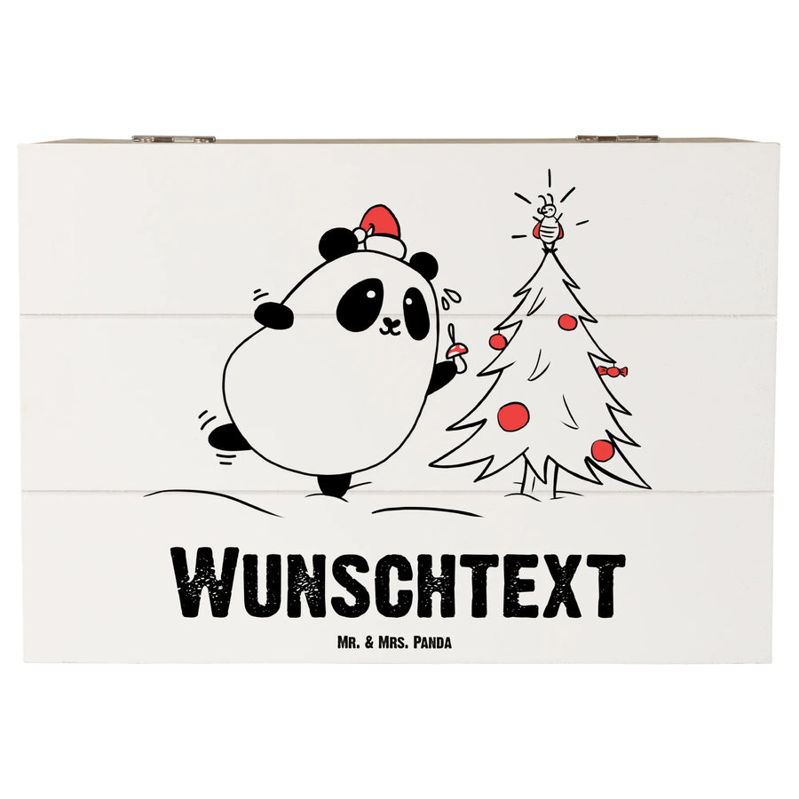 Die Kiste ist aus stabilem Holzfaser-Material gefertigt und mit dem zauberhaften Motiv eines süßen Pandas, der begeistert mit einer Nikolausmütze dein Weihnachtsbaum schmückt, bedruckt. Dazu kommt noch der liebevolle Slogan "Eine wunderschöne Weihnachtszeit!". Um die Kiste noch persönlicher zu gestalten, kannst du sie mit deinem Wunschtext oder Namen versehen.
