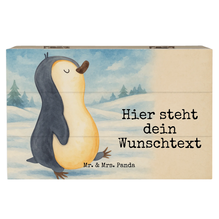 Personalisierte Holzkiste Pinguin marschieren Design - 19 x 12 cm