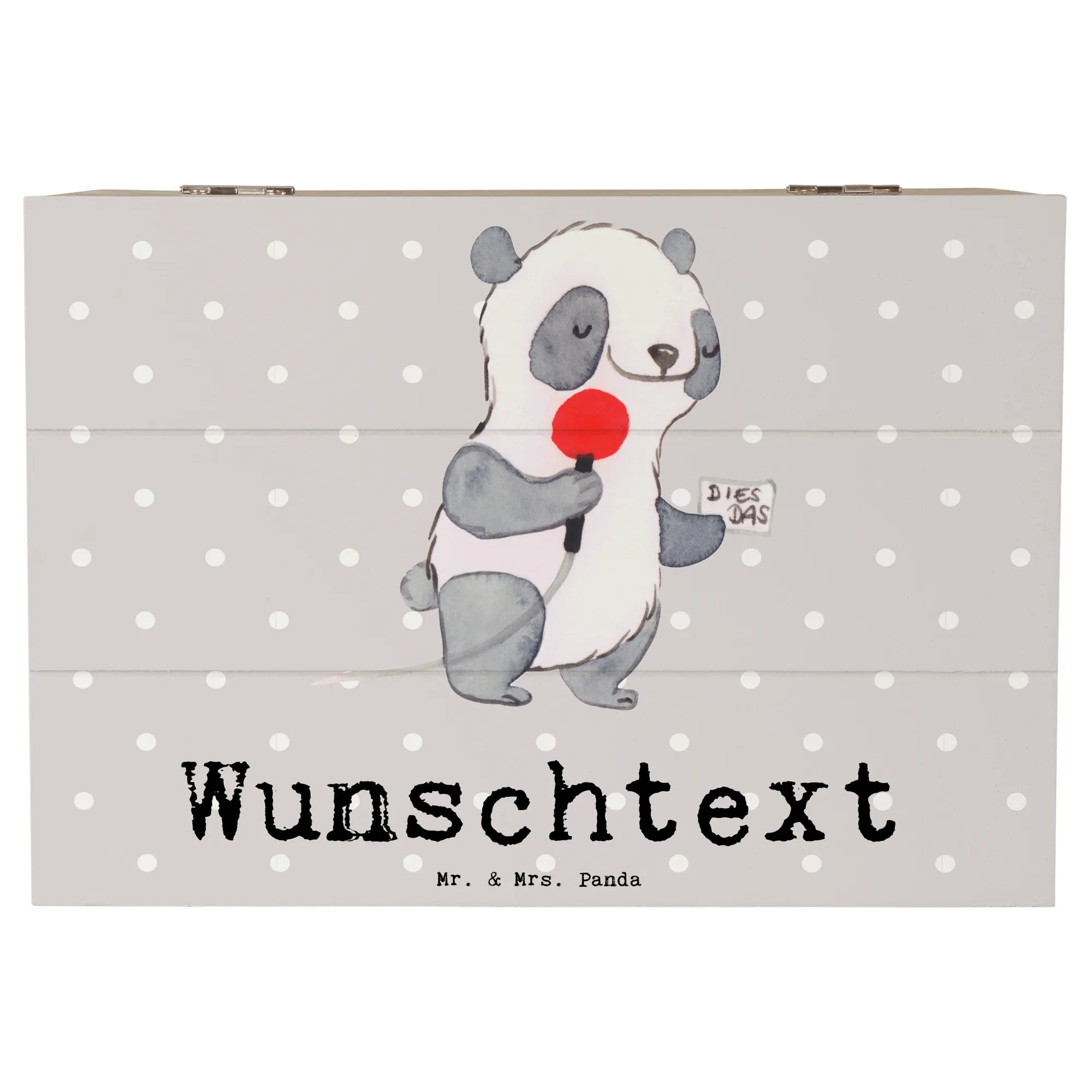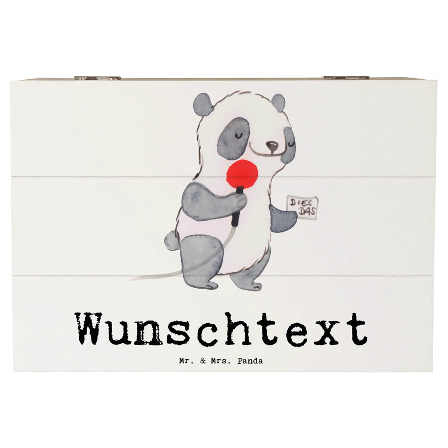 Entdecke die fantastische, personalisierte Holzkiste 'Pressereferent mit Herz' aus der bezaubernden Berufe Kollektion von Mr. & Mrs. Panda!