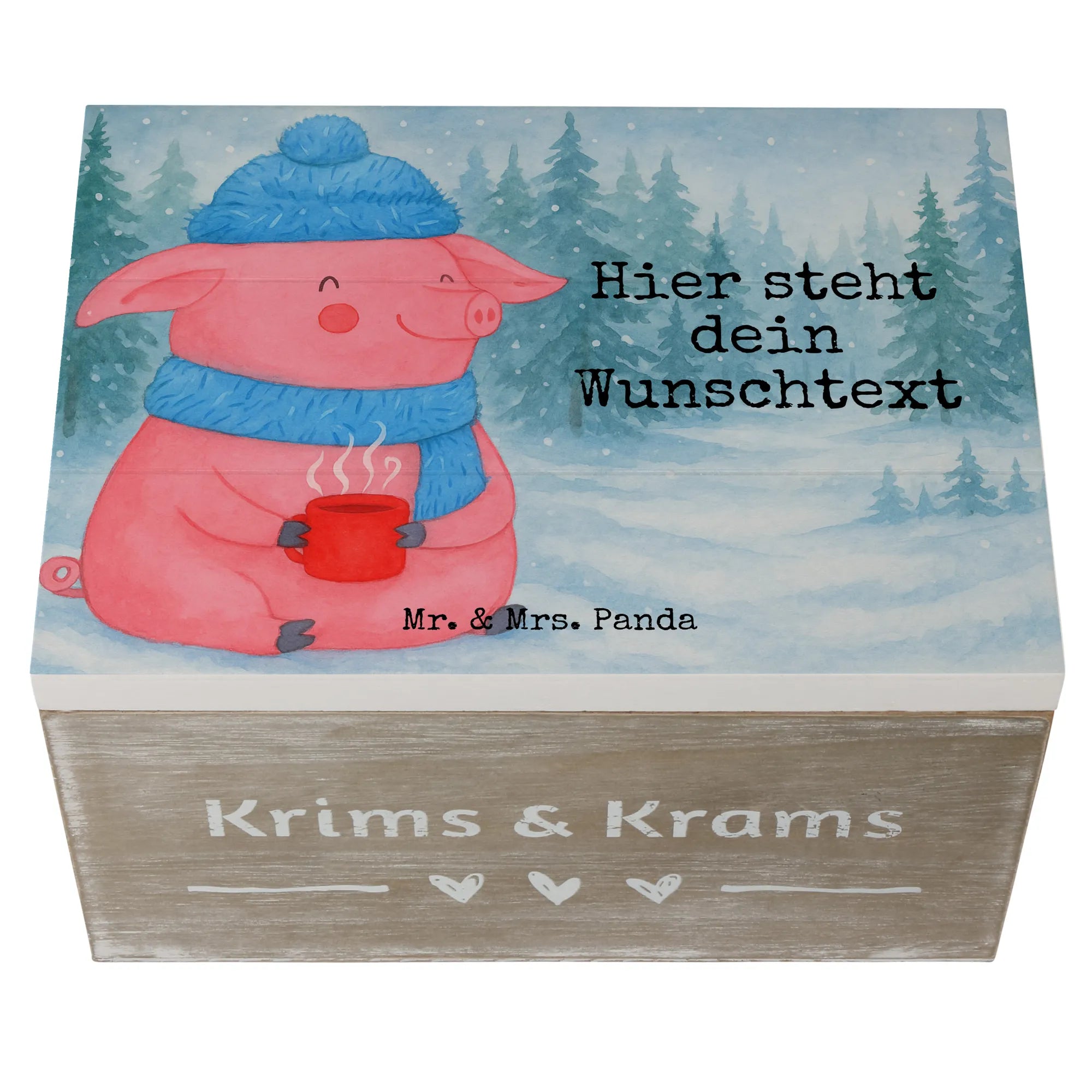 Personalisierte Holzkiste Schwein Glühwein Design - 22 x 15 cm
