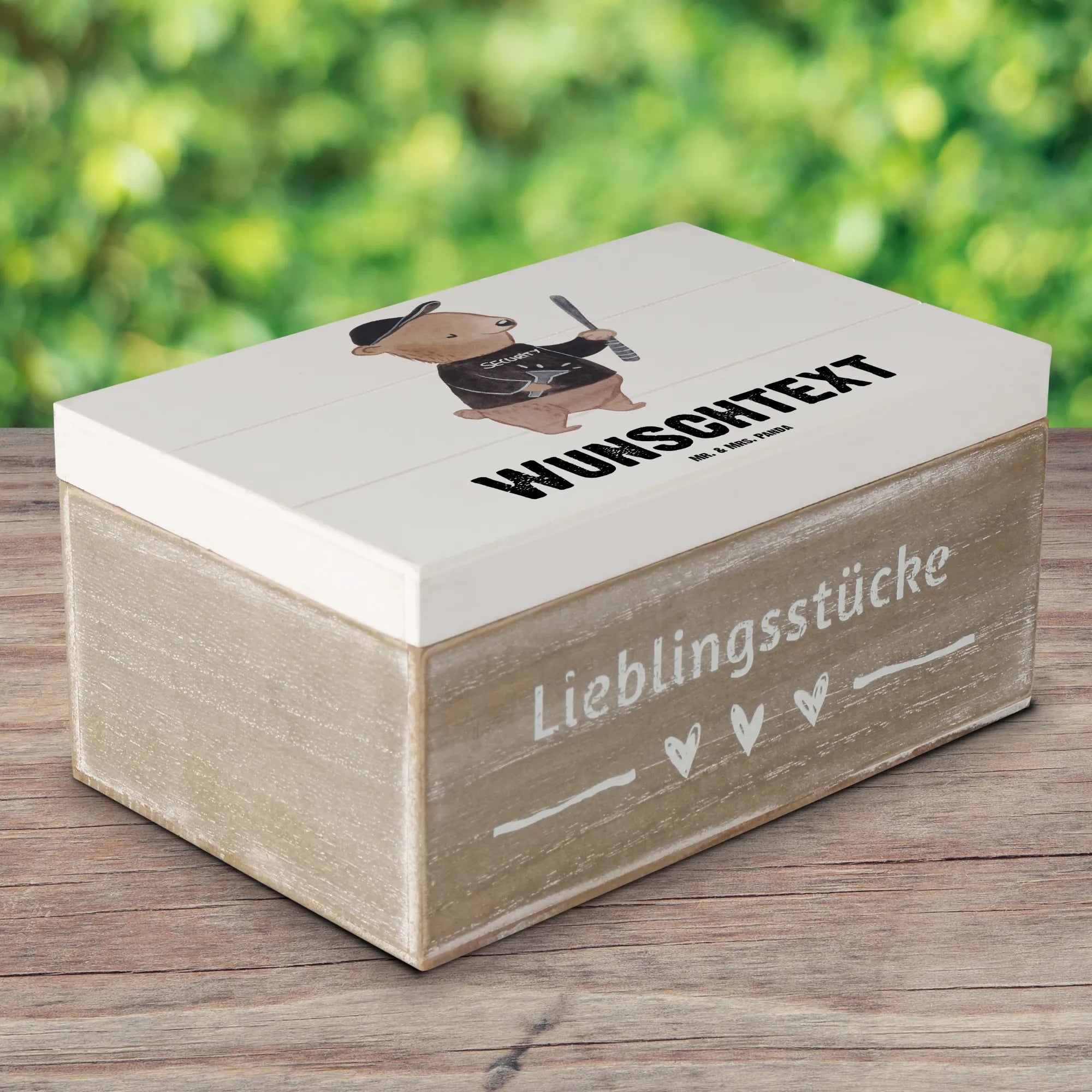 Entdecke die wunderschöne personalisierte Holzkiste 'Sicherheitsdienstmitarbeiter mit Herz' von Mr. & Mrs. Panda! Diese einzigartige Kiste ist nicht nur ein praktischer Aufbewahrungsort für all deine wertvollen Schätze, sondern dient auch als stilvolles Dekorationselement für dein Zuhause oder Büro.