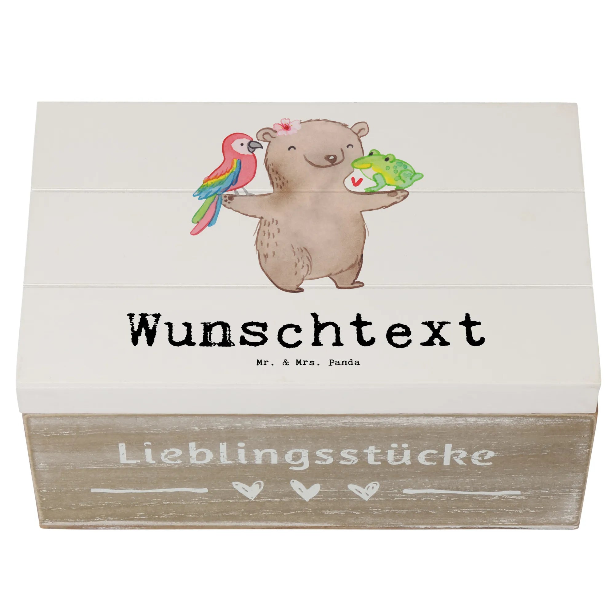 Die personalisierte Holzkiste "Tierpflegerin mit Herz" von Mr. & Mrs. Panda ist das perfekte Geschenk für alle, die eine Leidenschaft für Tiere und ihren Beruf im Tierpflegebereich haben. Diese wunderschöne Holzkiste eignet sich hervorragend als Aufbewahrungsort für persönliche Schätze, Erinnerungen oder kleine Geschenke. Mit dem süßen Motiv eines weiblichen Bären, der liebevoll kleinere Tiere wie einen Papagei und einen Frosch pflegt, bringt die Kiste ein Lächeln in jedes Zuhause.