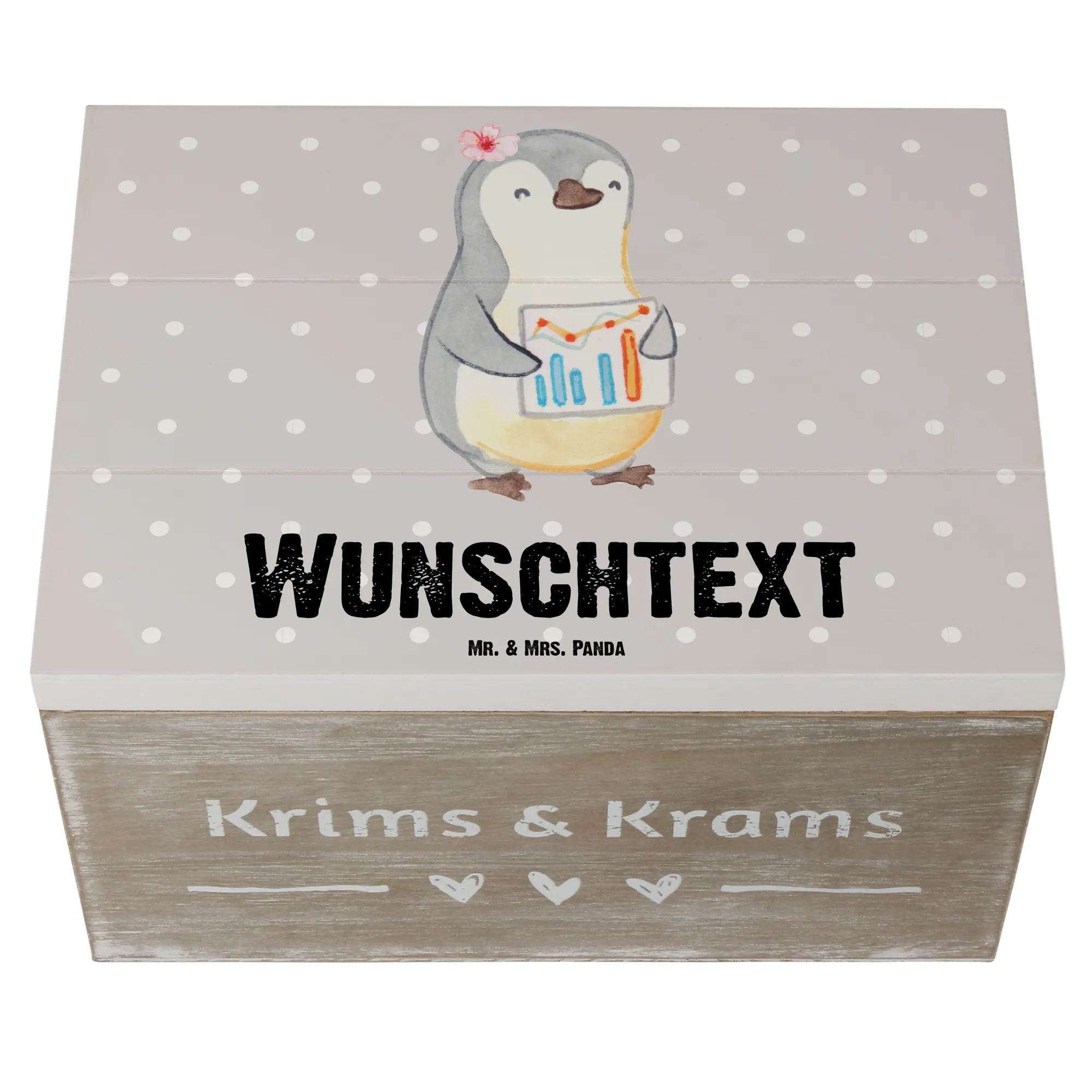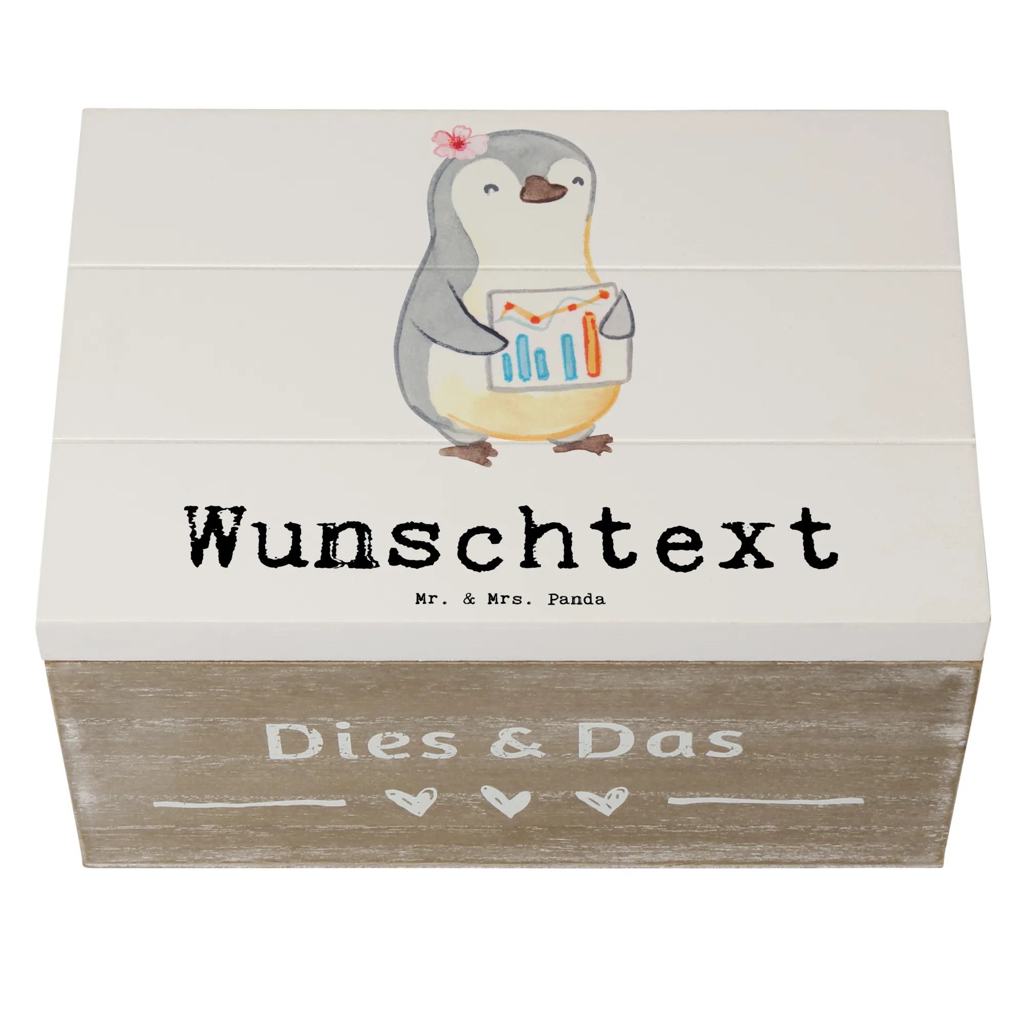 Entdecke die perfekte Geschenkidee mit unserer personalisierten Holzkiste "Wirtschaftsanalytikerin mit Herz" von Mr. & Mrs. Panda!