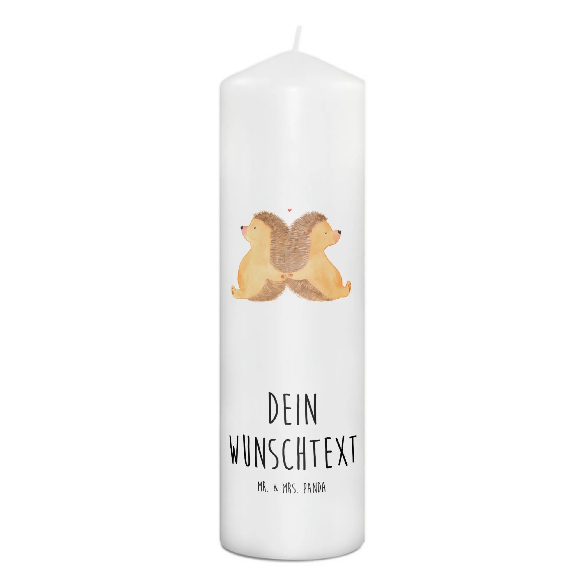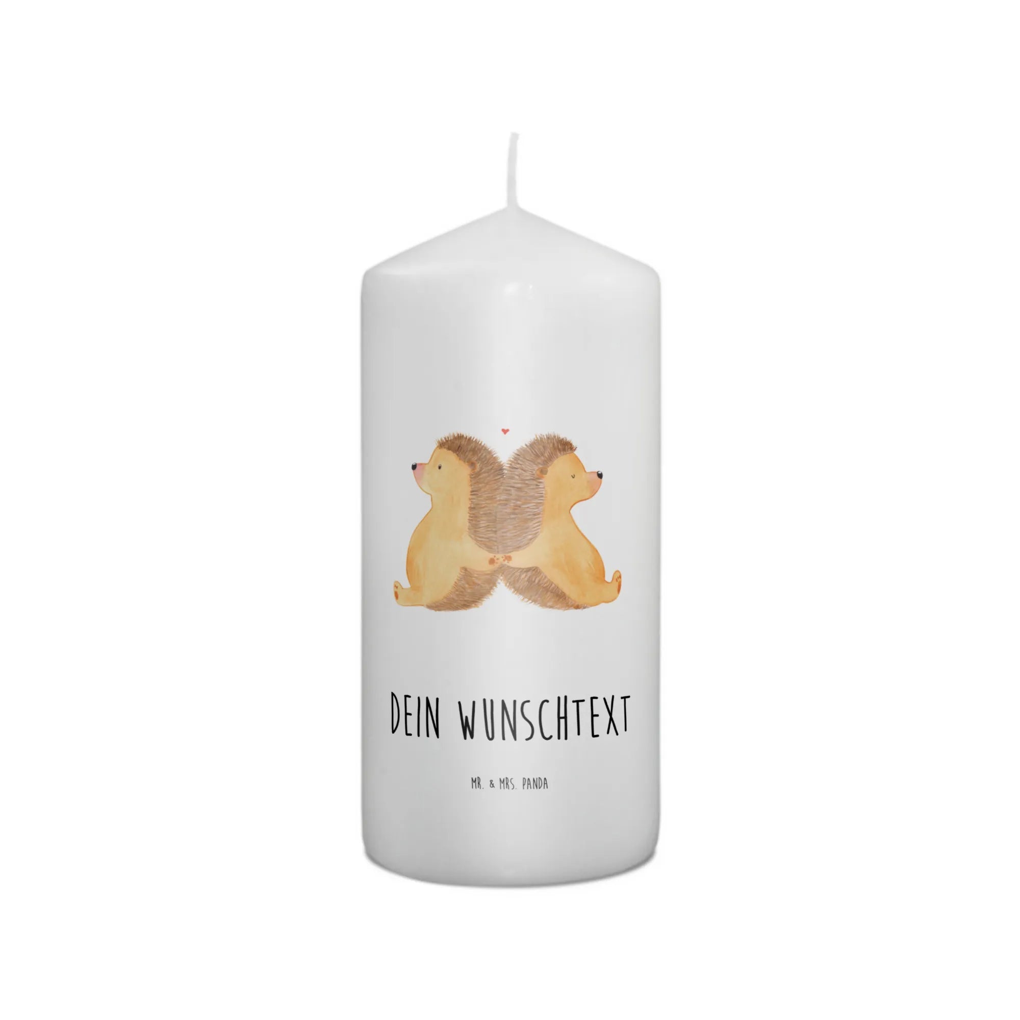 Wenn Du auf der Suche nach einem ganz besonderen Geschenk bist, dann ist die personalisierte Kerze mit dem liebevollen Motiv "Igel händchenhaltend" aus der Kollektion Liebe von Mr. & Mrs. Panda genau das Richtige für Dich!