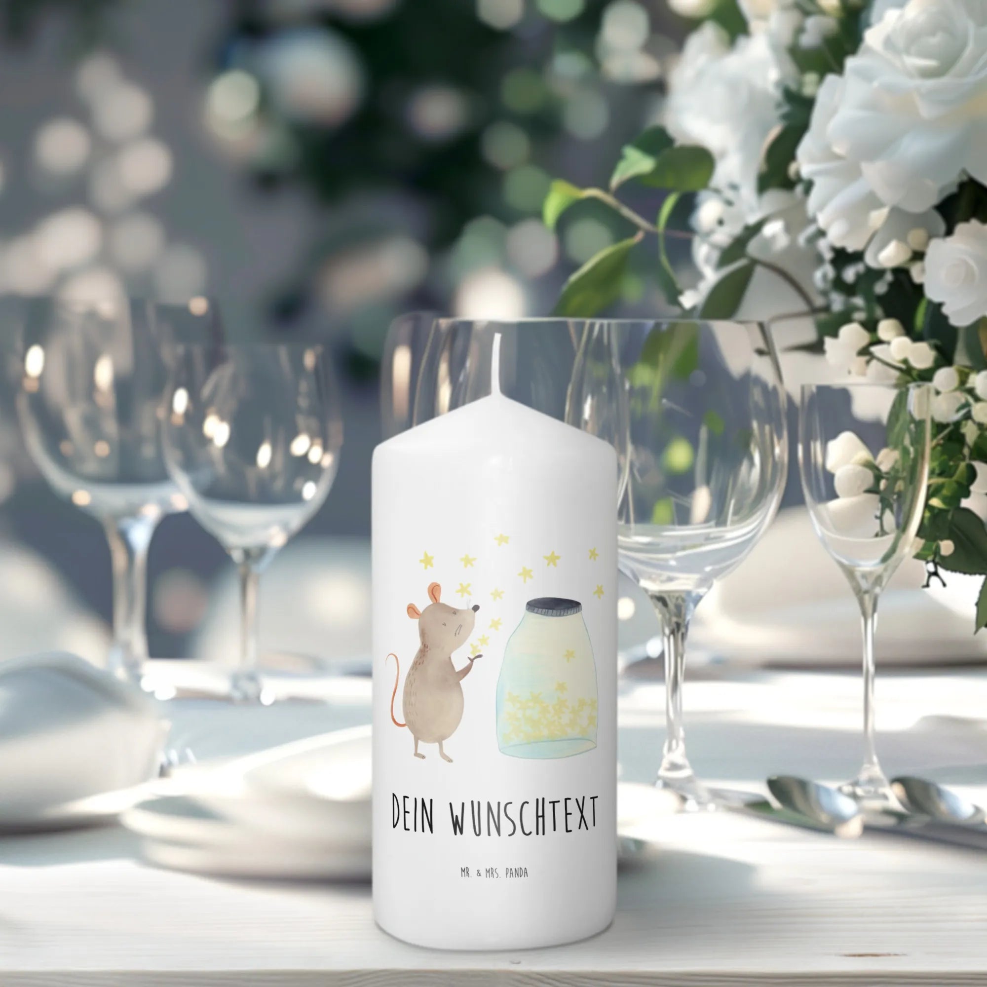 Entdecke die bezaubernde personalisierte Kerze "Maus Sterne" aus der zauberhaften Kollektion "Small World" von Mr. & Mrs. Panda. Diese elegante und wunderschöne Kerze ist ein absolutes Must-Have für jede Feierlichkeit!