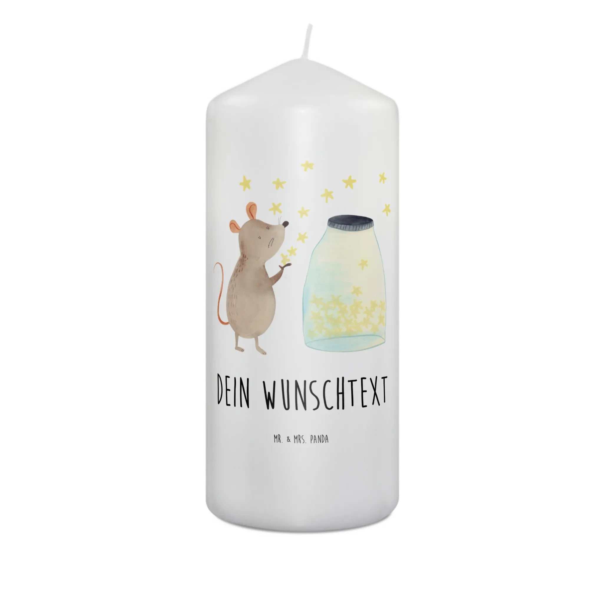 Lass dich von der süßen Maus verzaubern und erlebe magische Momente – mit der personalisierten Kerze "Maus Sterne" wird jeder Anlass etwas ganz Besonderes.