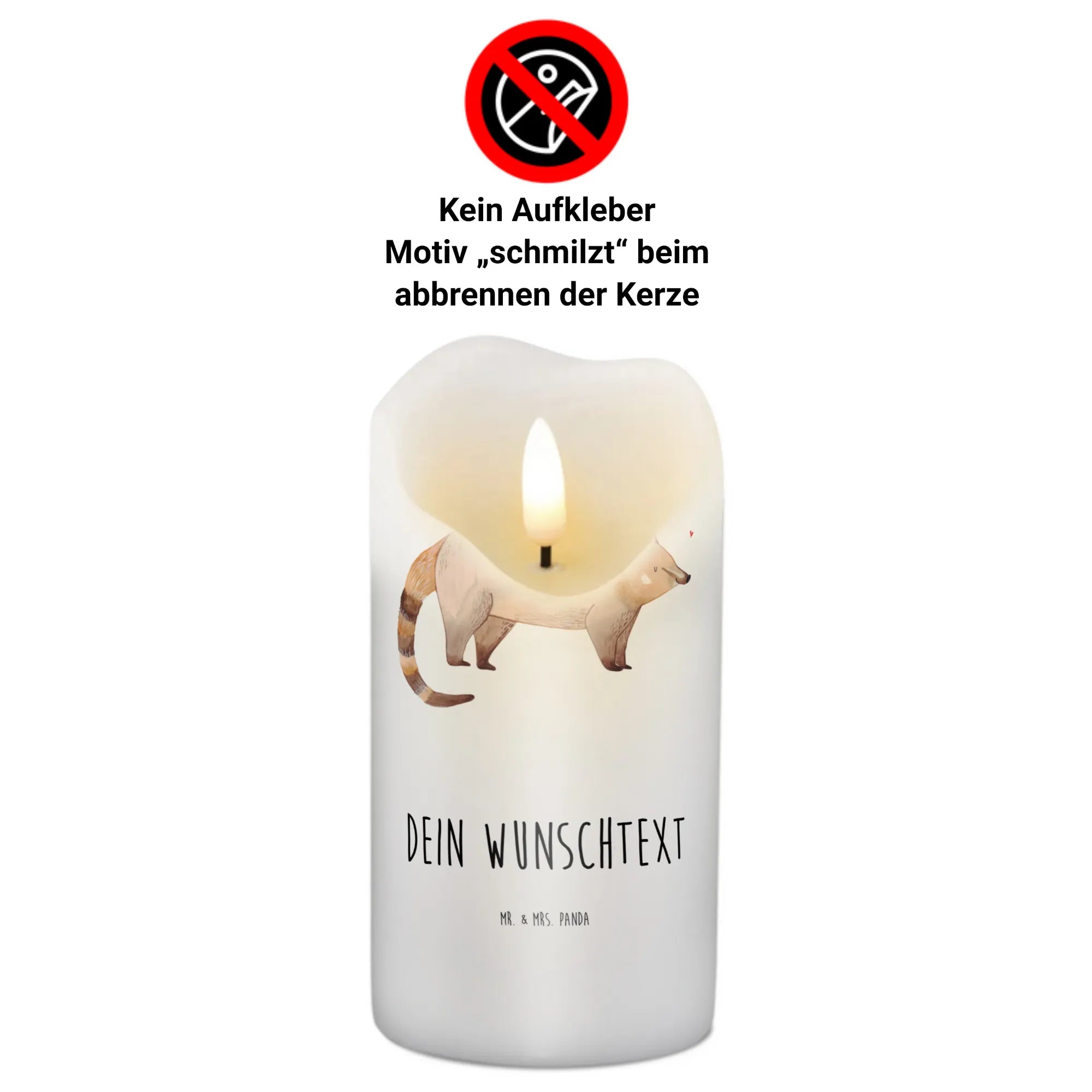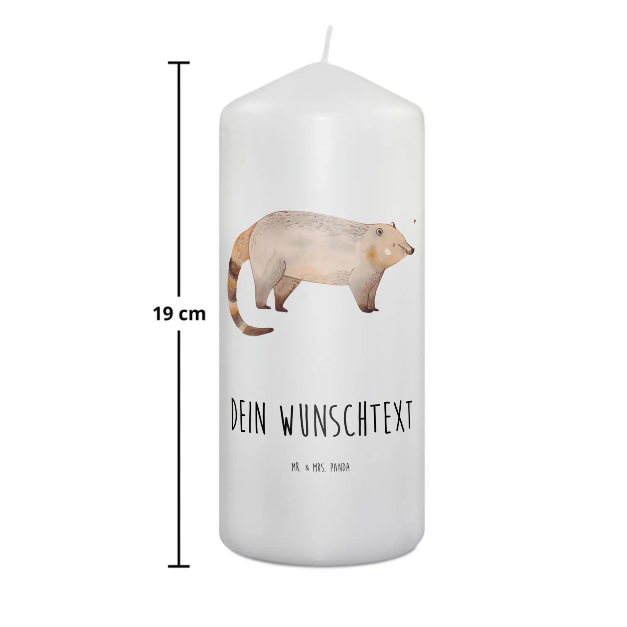Die personalisierte Nasenbär-Kerze von Mr. & Mrs. Panda ist das perfekte Geschenk für besondere Anlässe! Mit ihrem einzigartigen Design bringt sie nicht nur Freude, sondern auch eine besondere Atmosphäre in jeden Raum. Diese edle Kerze misst 190 mm x 80 mm und wiegt 250 g. Hergestellt aus hochwertigem Paraffinwachs, sorgt sie für eine ultralange Brenndauer und verströmt einen sanften, warmen Schein.