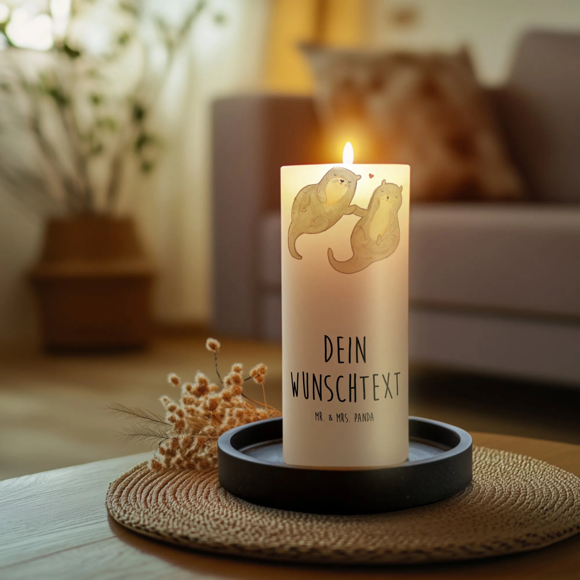 Personalisierte Kerze Otter händchenhaltend - 29 x 8 cm XL