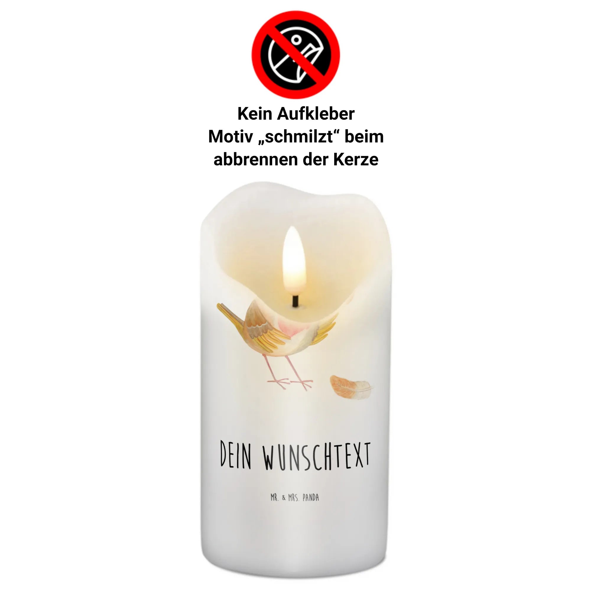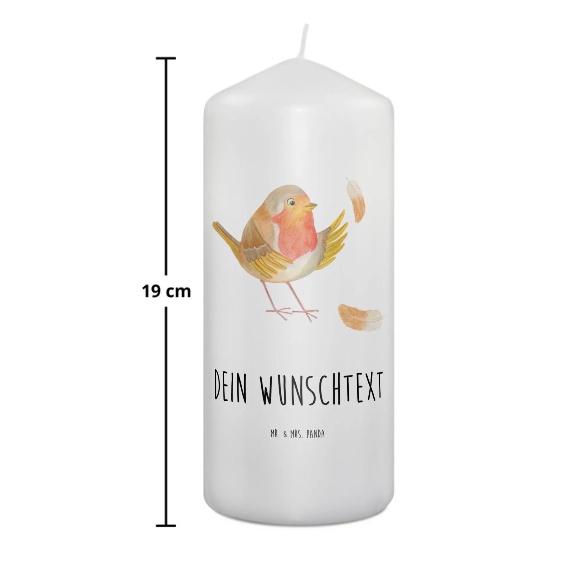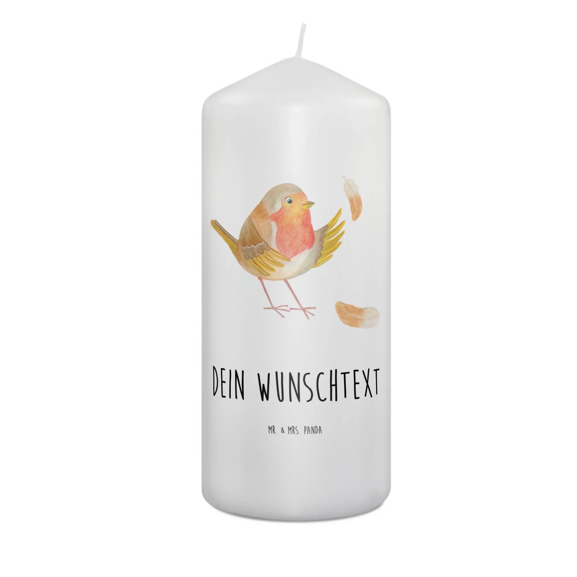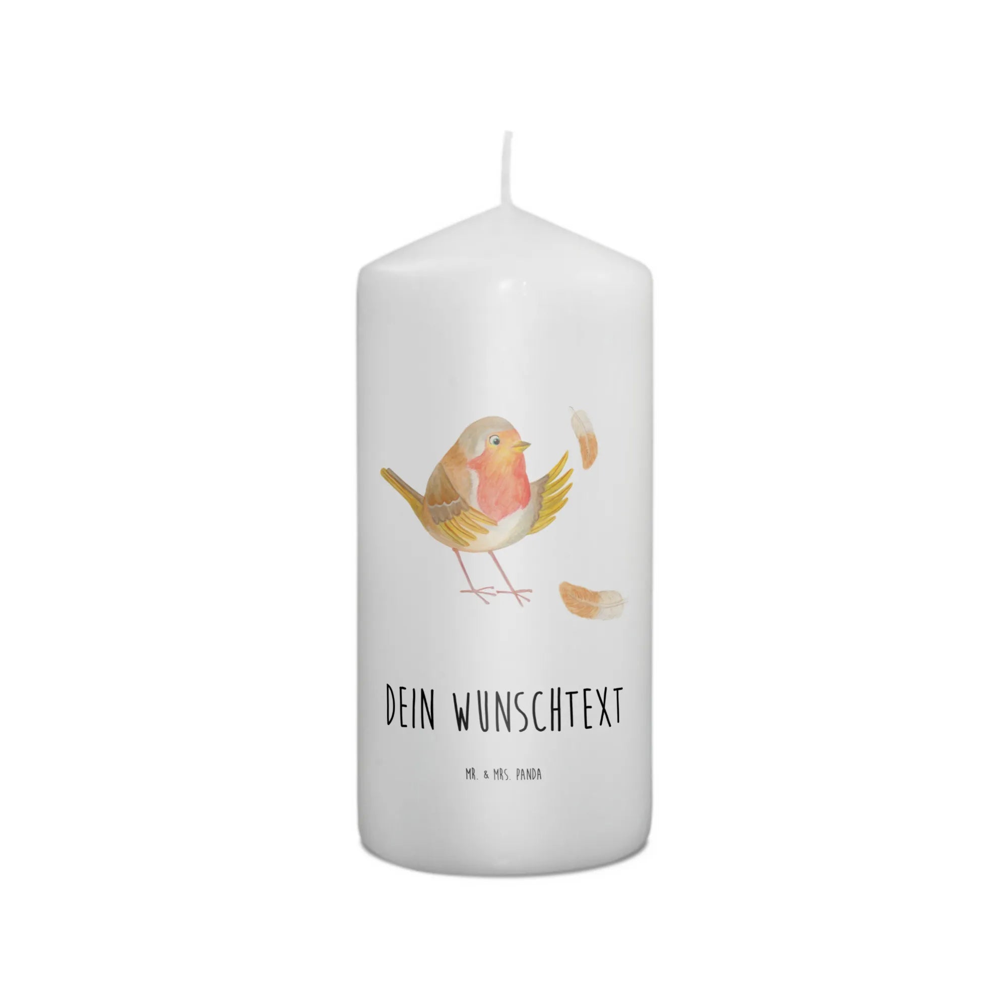 Entdecke die zauberhafte personalisierten Kerze mit dem süßen Rotkehlchen aus der Small World Kollektion von Mr. & Mrs. Panda!
